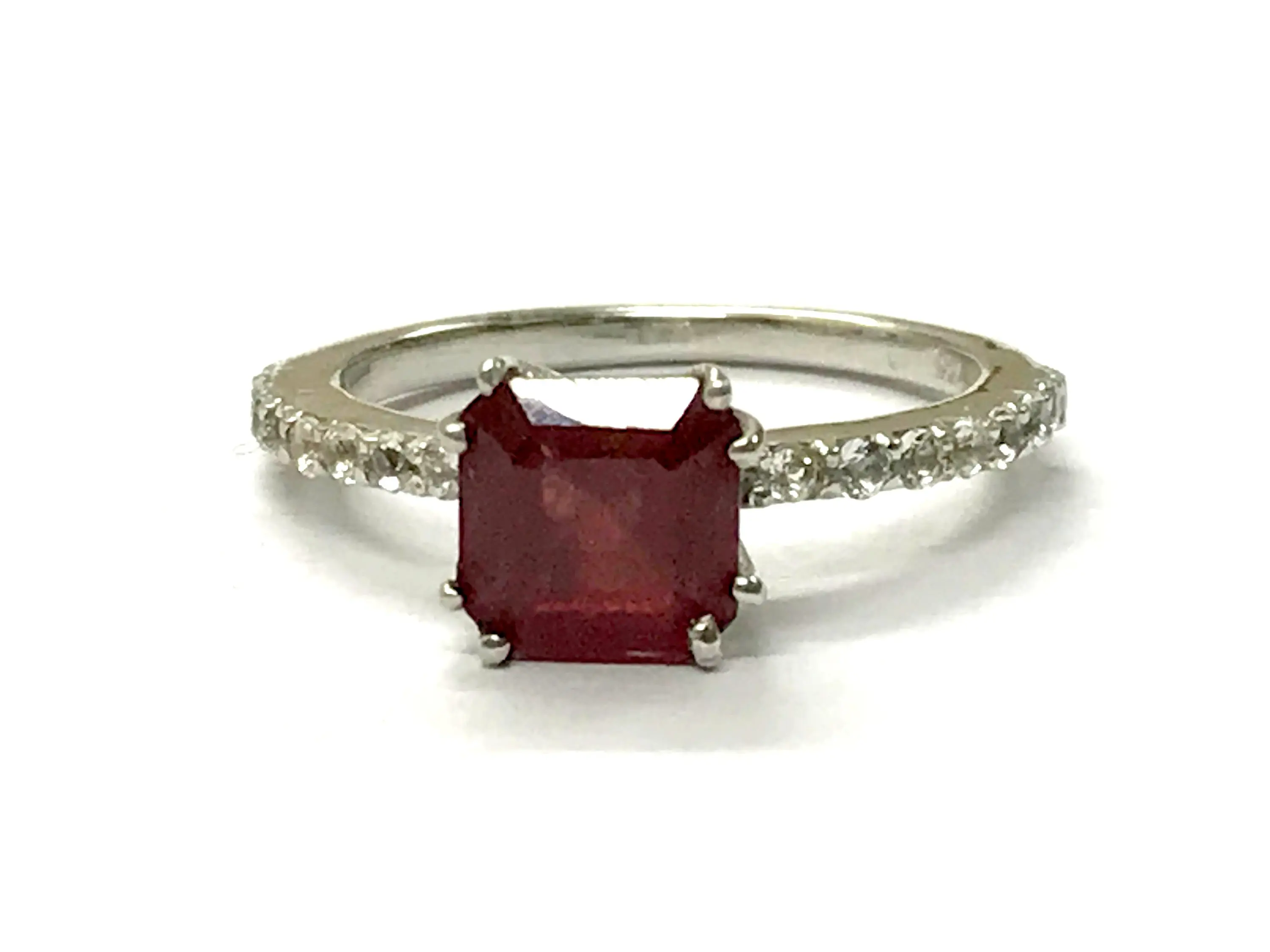 RUBY WHITE TOPAZ Ring ,Sterling Silver ring ,Ruby Anniversary Gift, Blood Red Ruby, Halloween Gift ,July birthstone, Christmas Gift..
