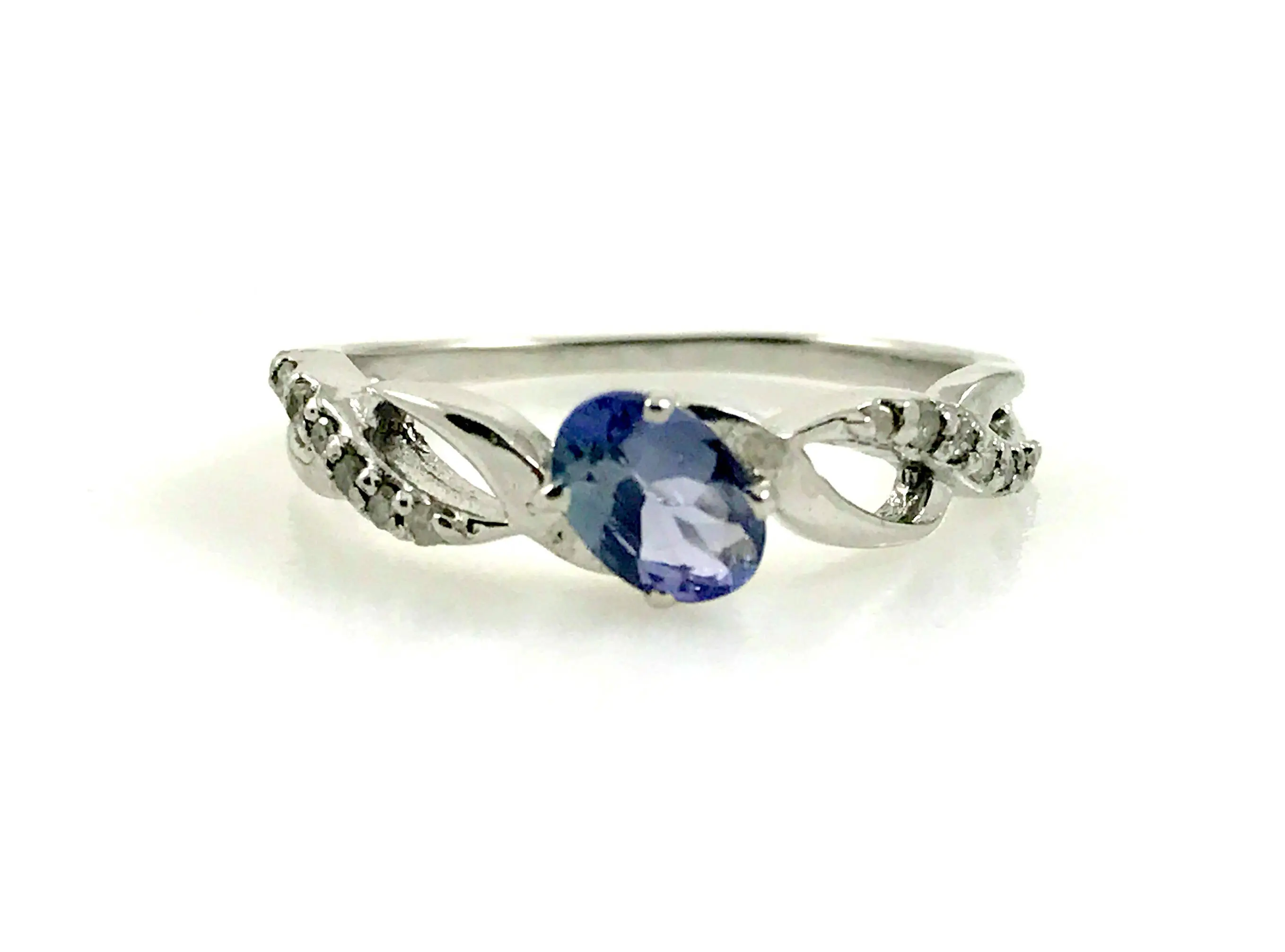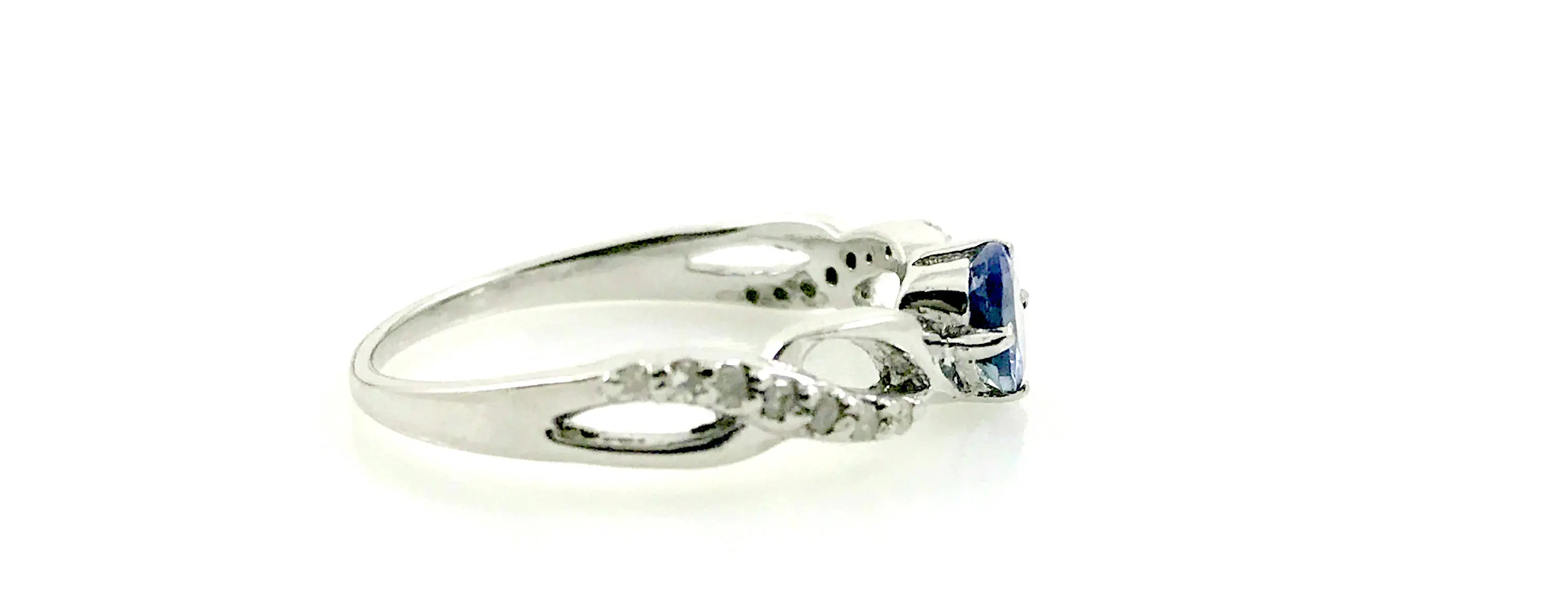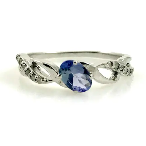 Tanzanite Diamond Engagement Rings, 0.7ct Blue Tanzanite ring,half eternity Band,Oval Cut ,Promise ring for her