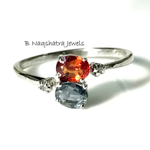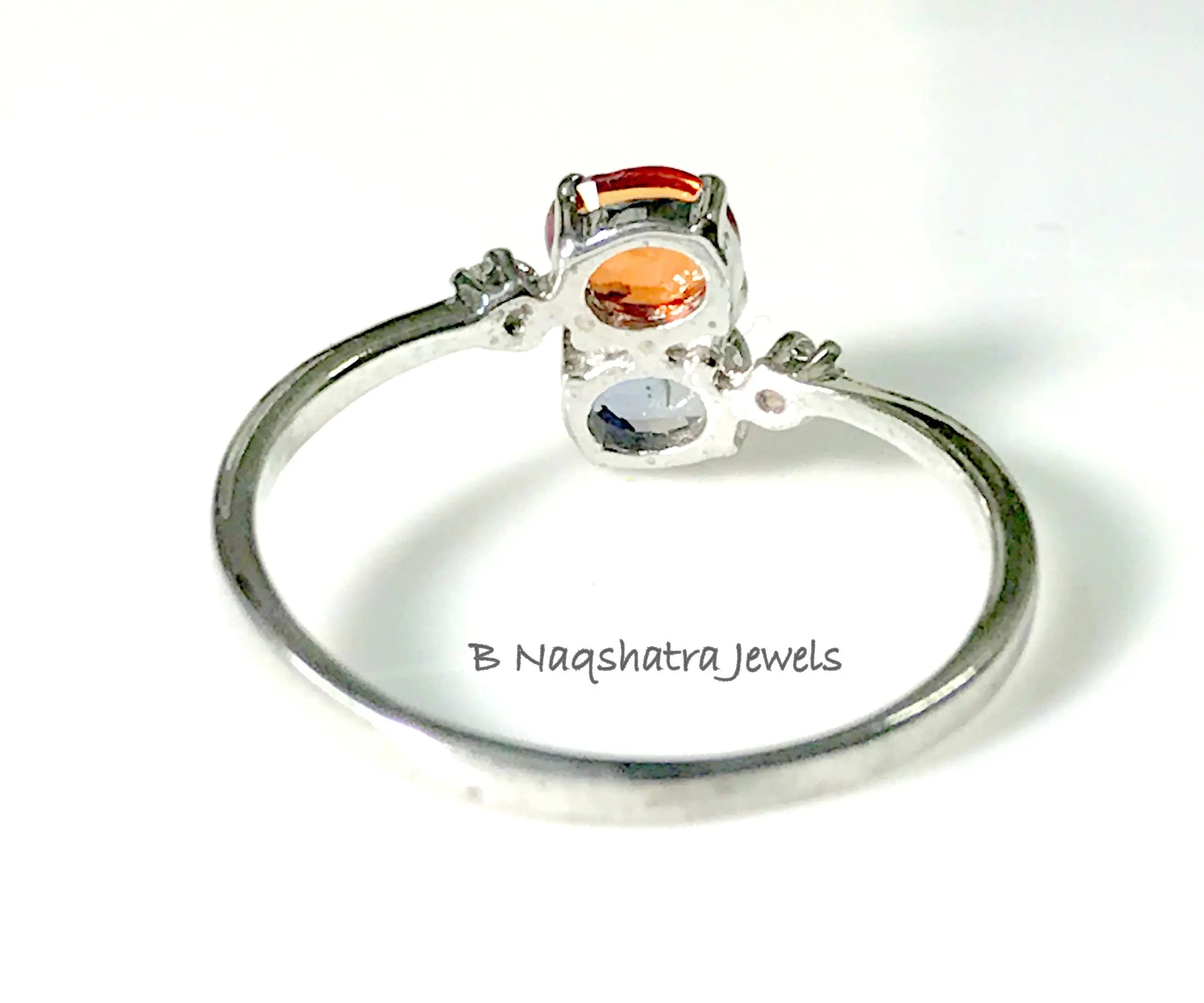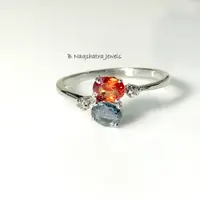 NATURAL MULTI SAPPHIRES,Orange sapphires ring ,by-pass ring of multi sapphires,Rainbow sapphires rings