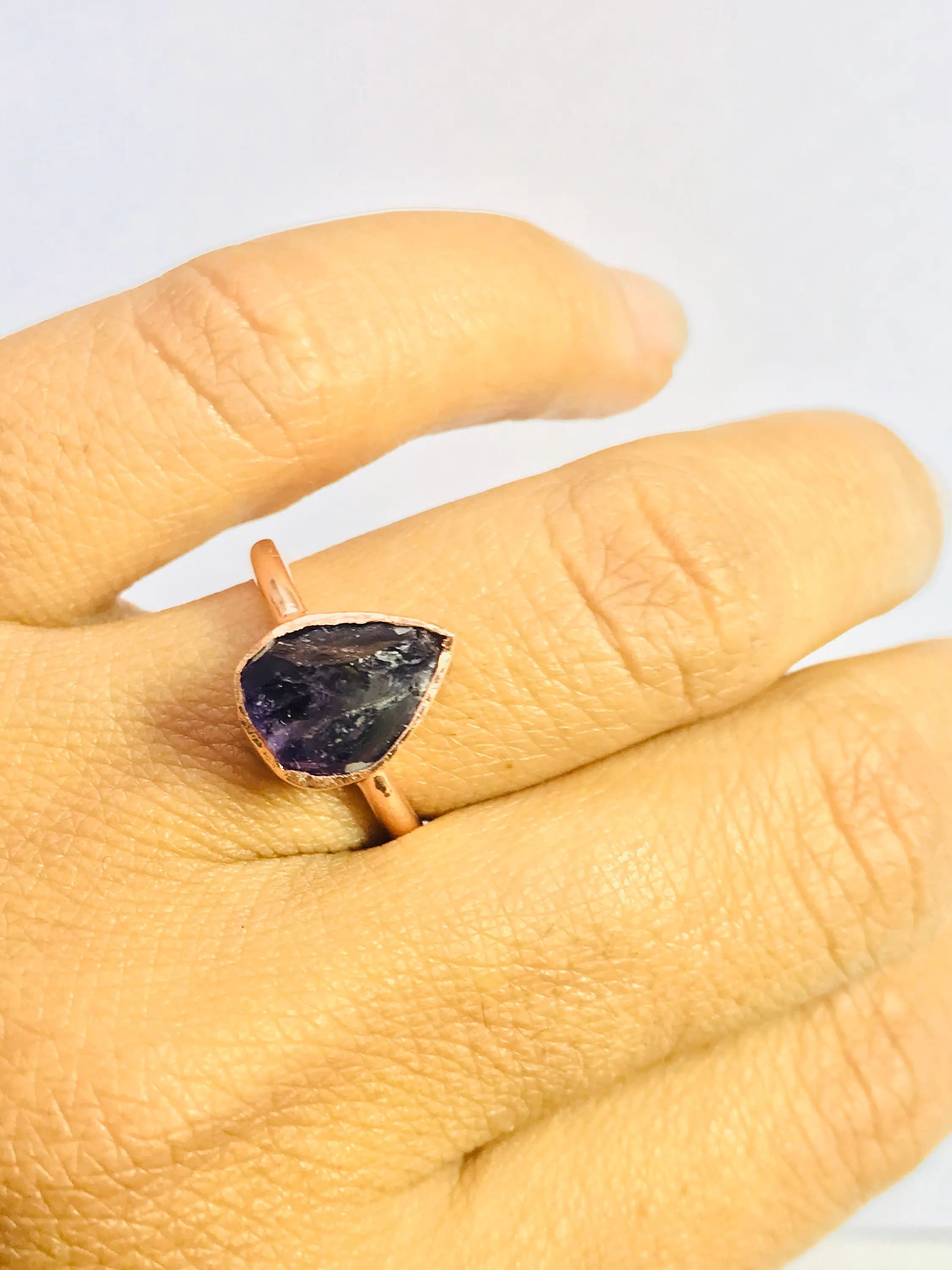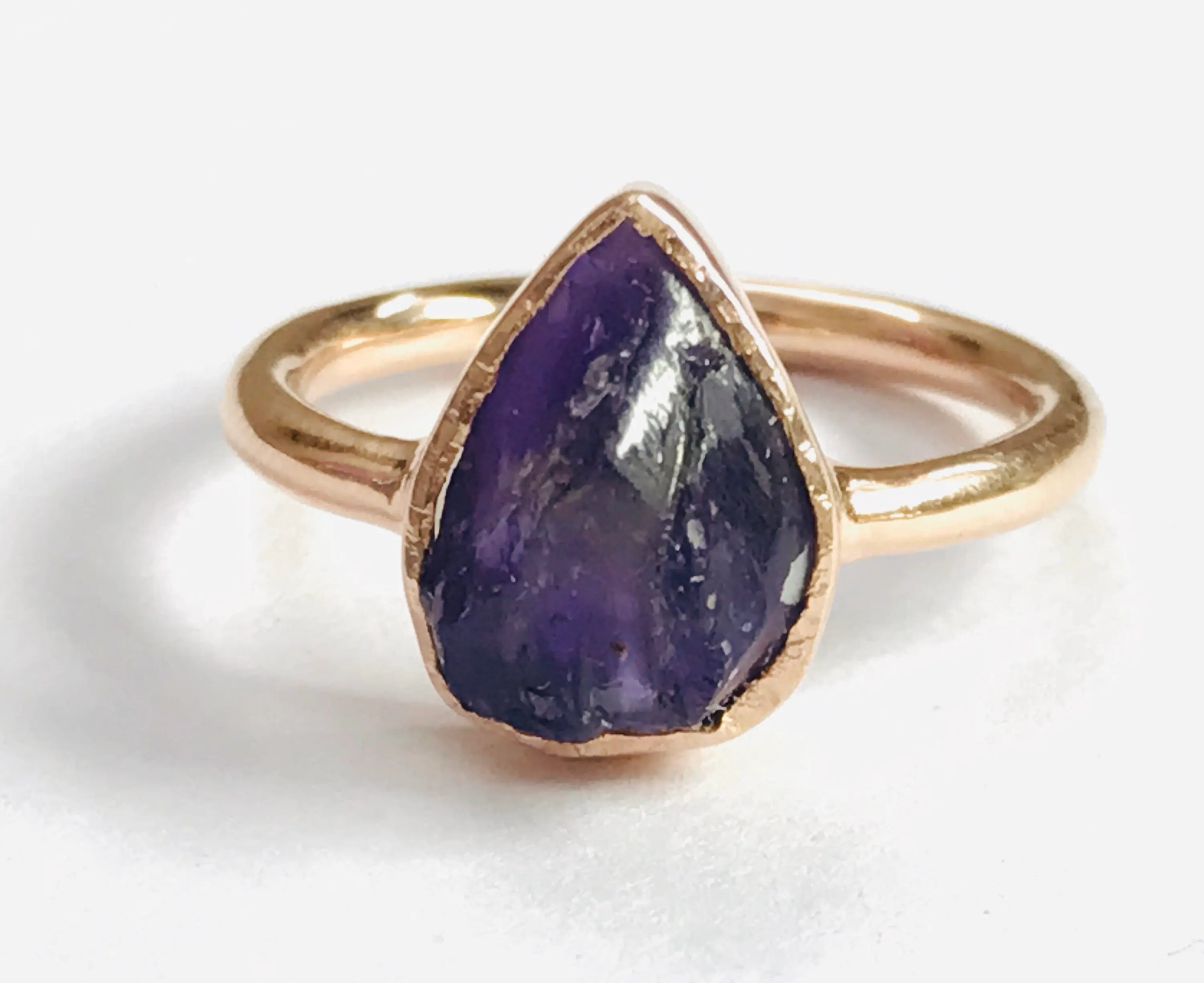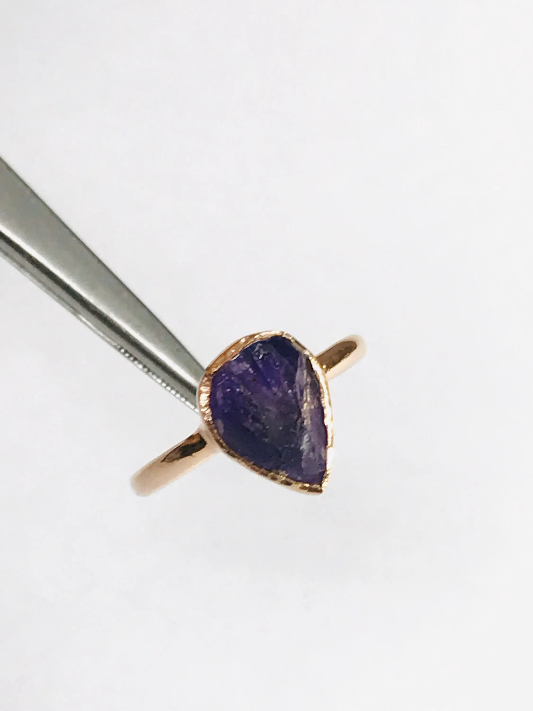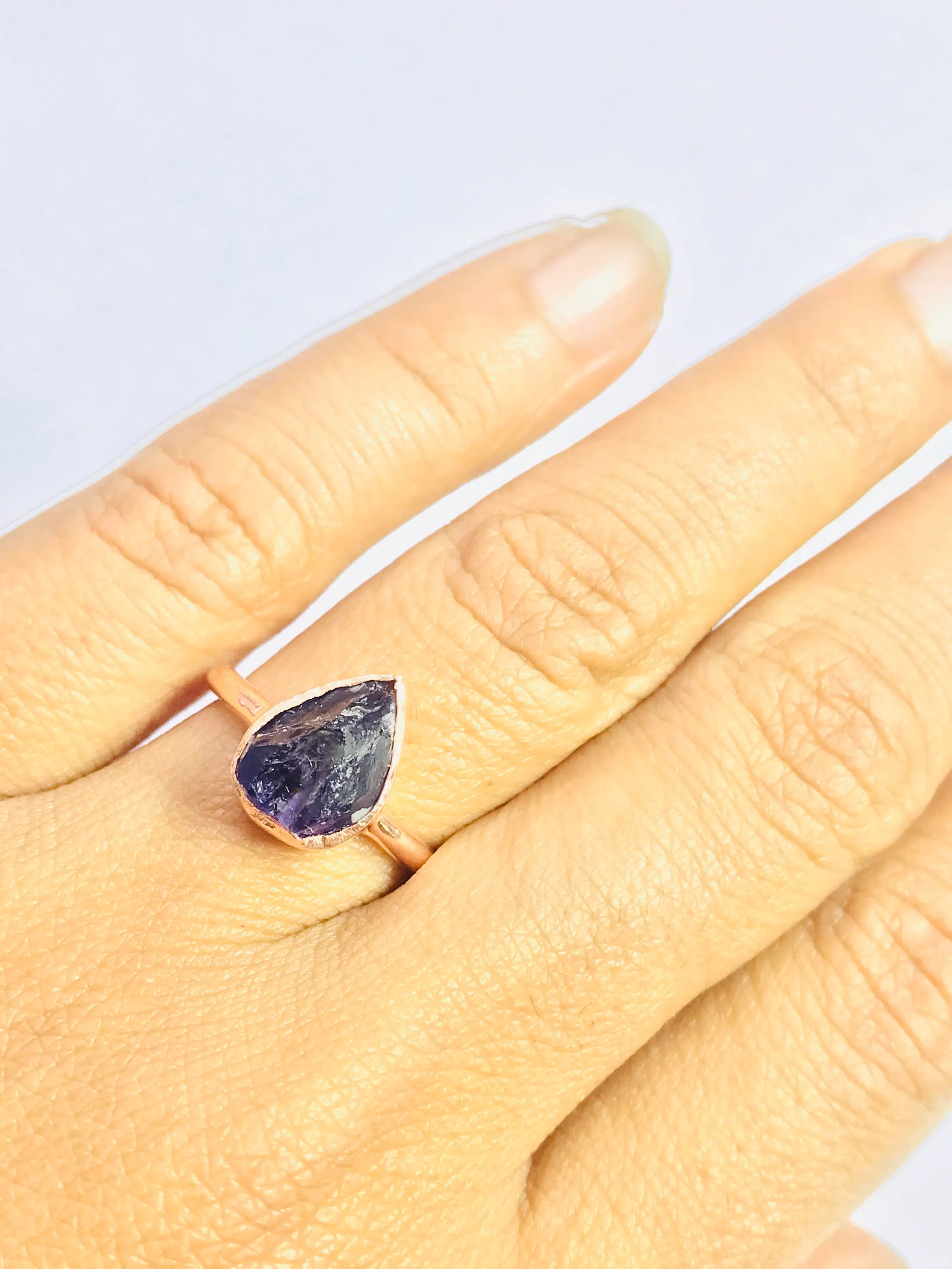 AMETHYST CRYSTAL Pear Rose gold Ring, February Birthstone ,Healing properties ,Purple Gemstone, Aquarius ,Valentine Gift for Her.