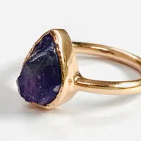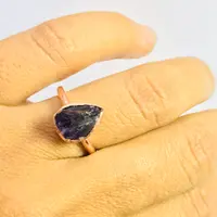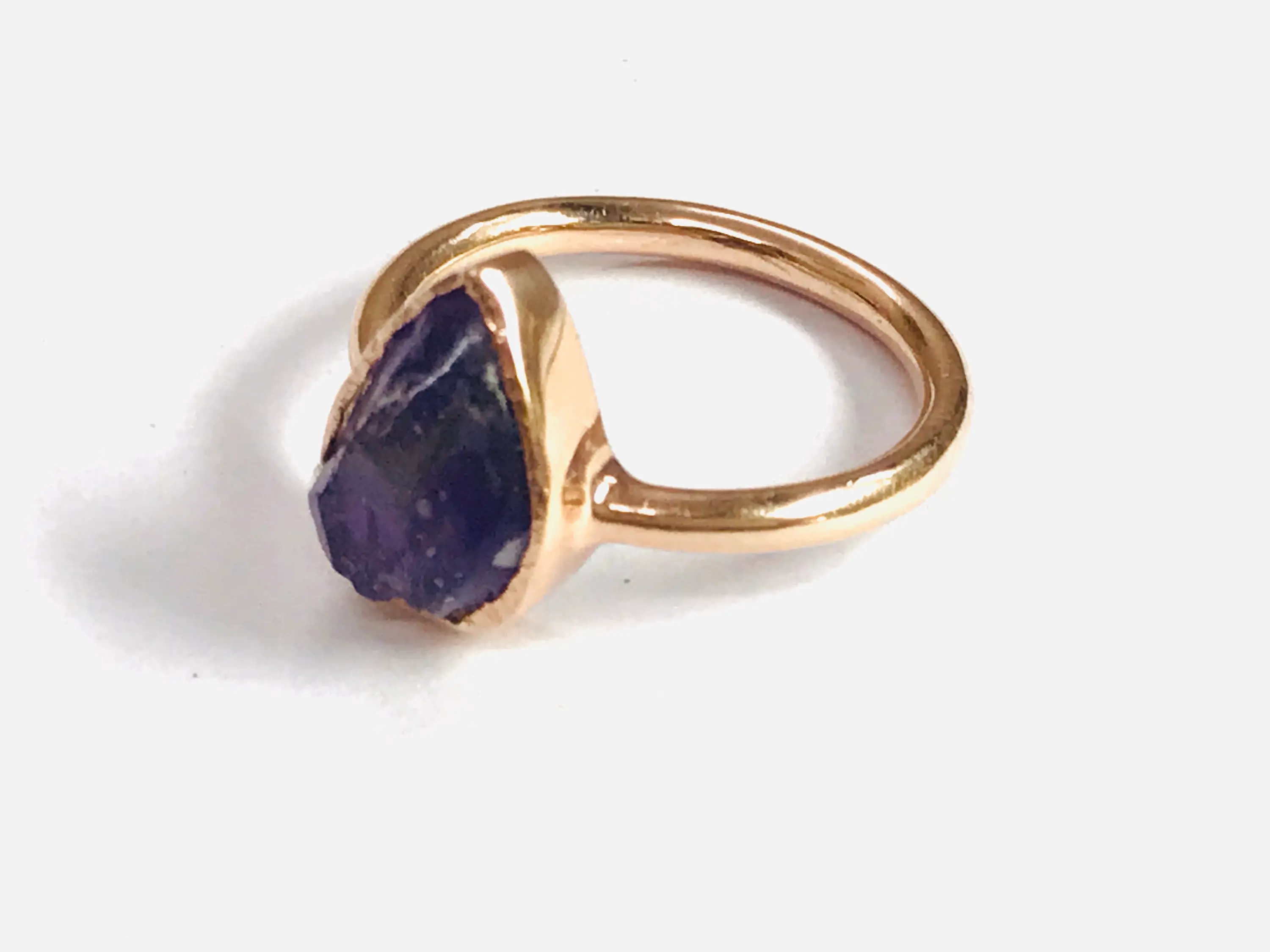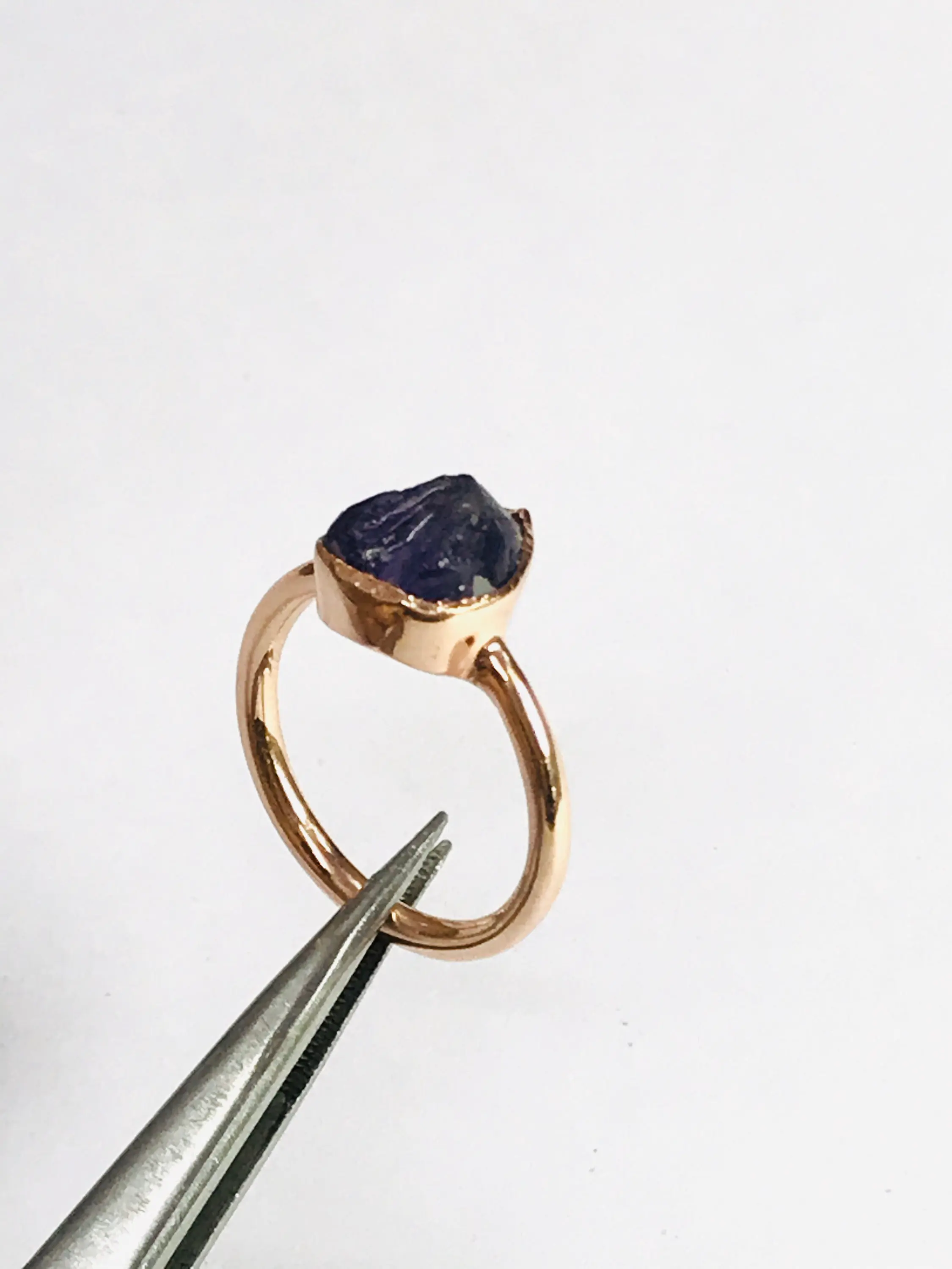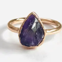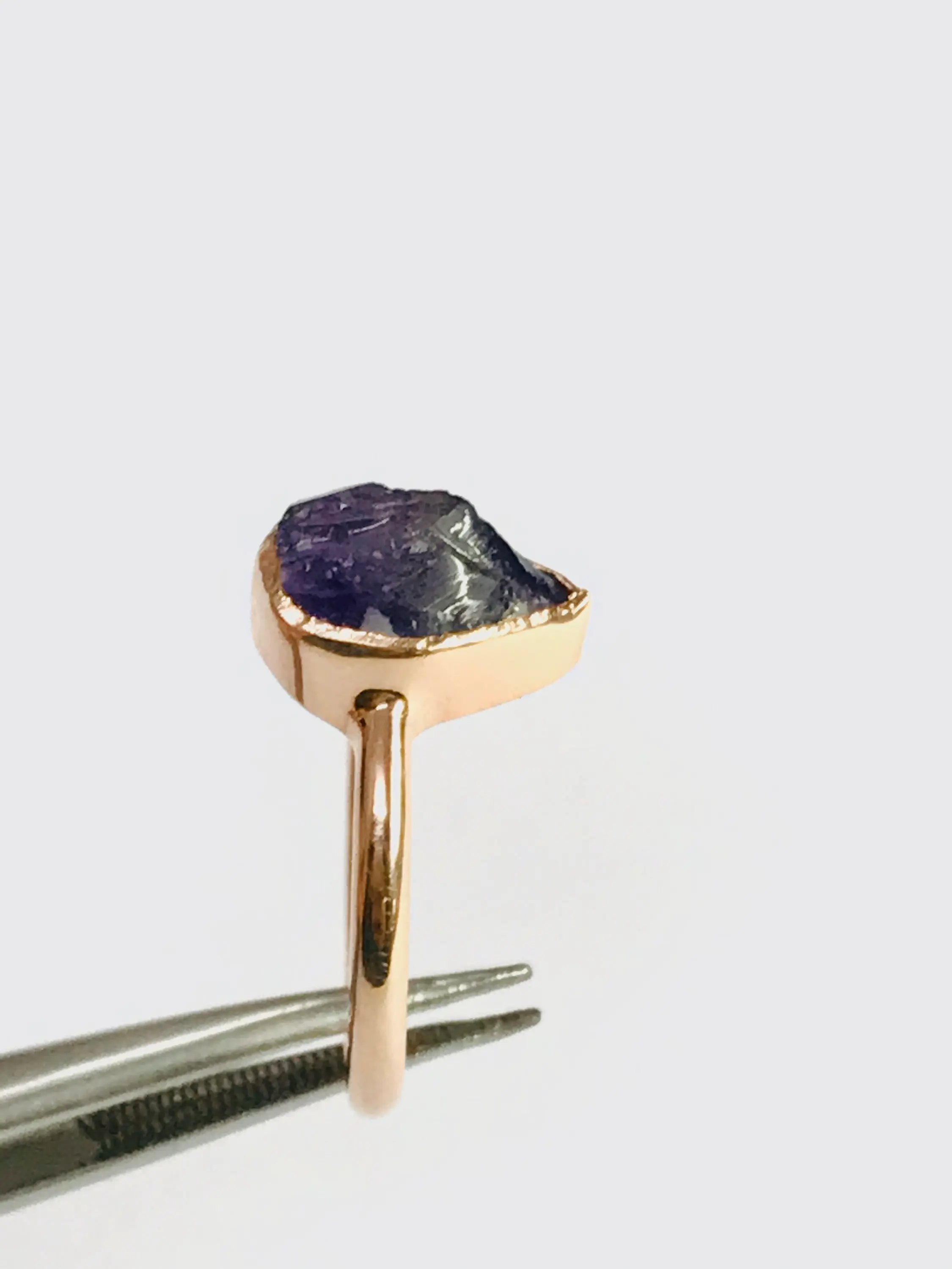 AMETHYST CRYSTAL Pear Rose gold Ring, February Birthstone ,Healing properties ,Purple Gemstone, Aquarius ,Valentine Gift for Her.