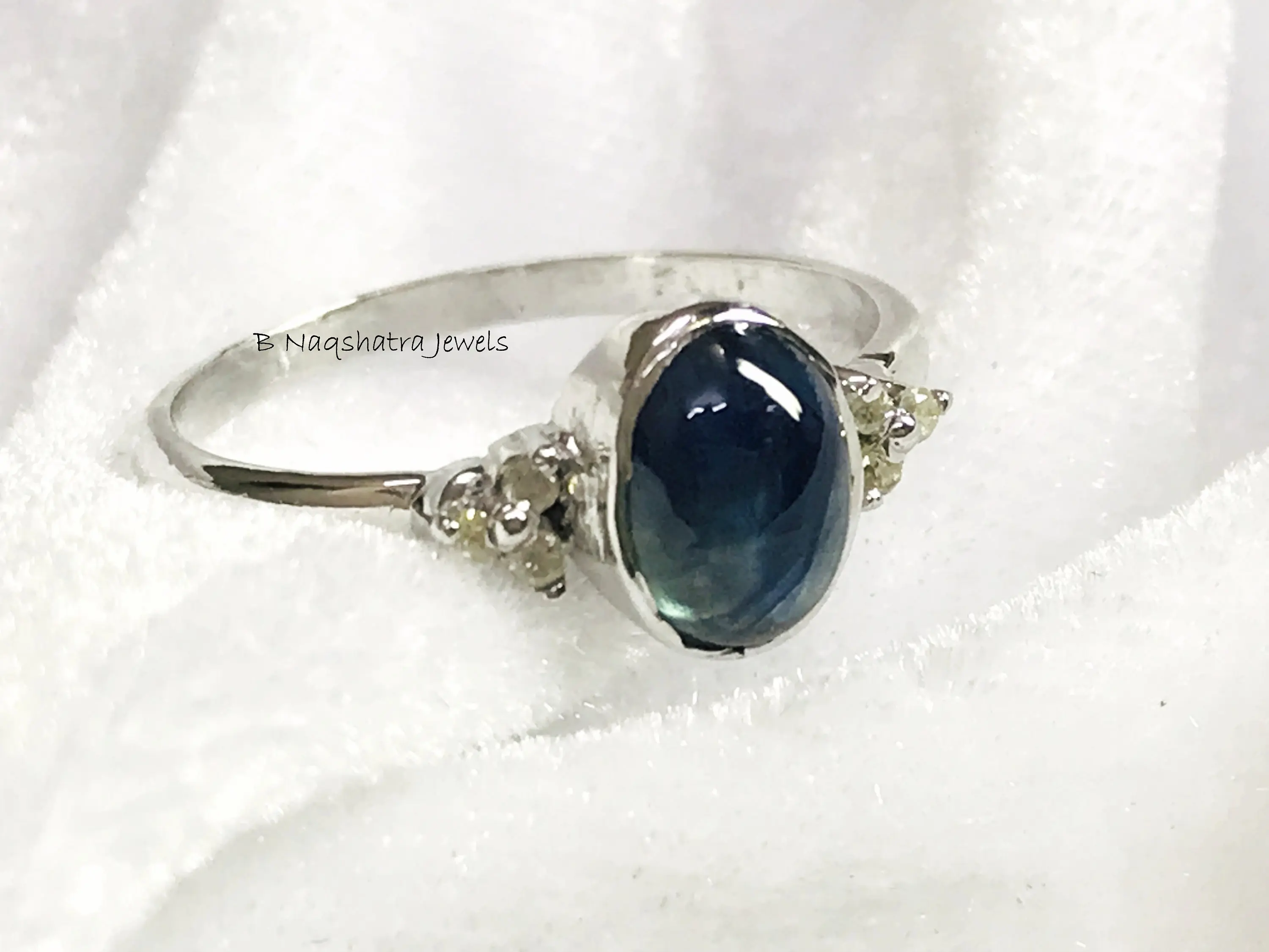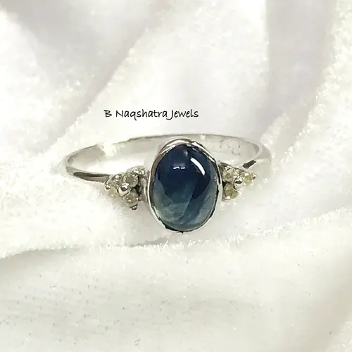 BLUE SAPPHIRE CABOCHON Ring ,Sterling Silver,September Birthstone, Neelam Throat Chakra, Promise Ring.