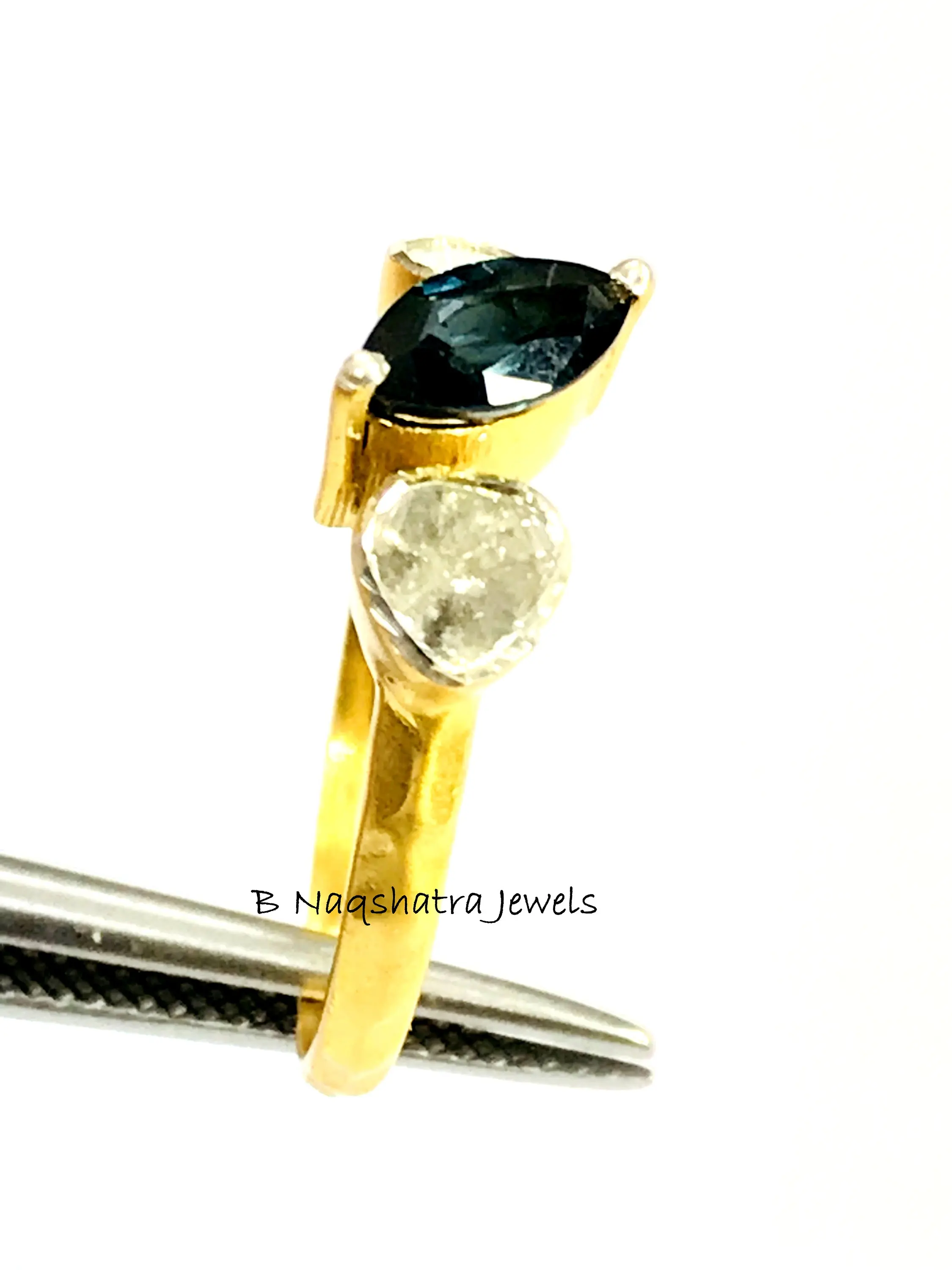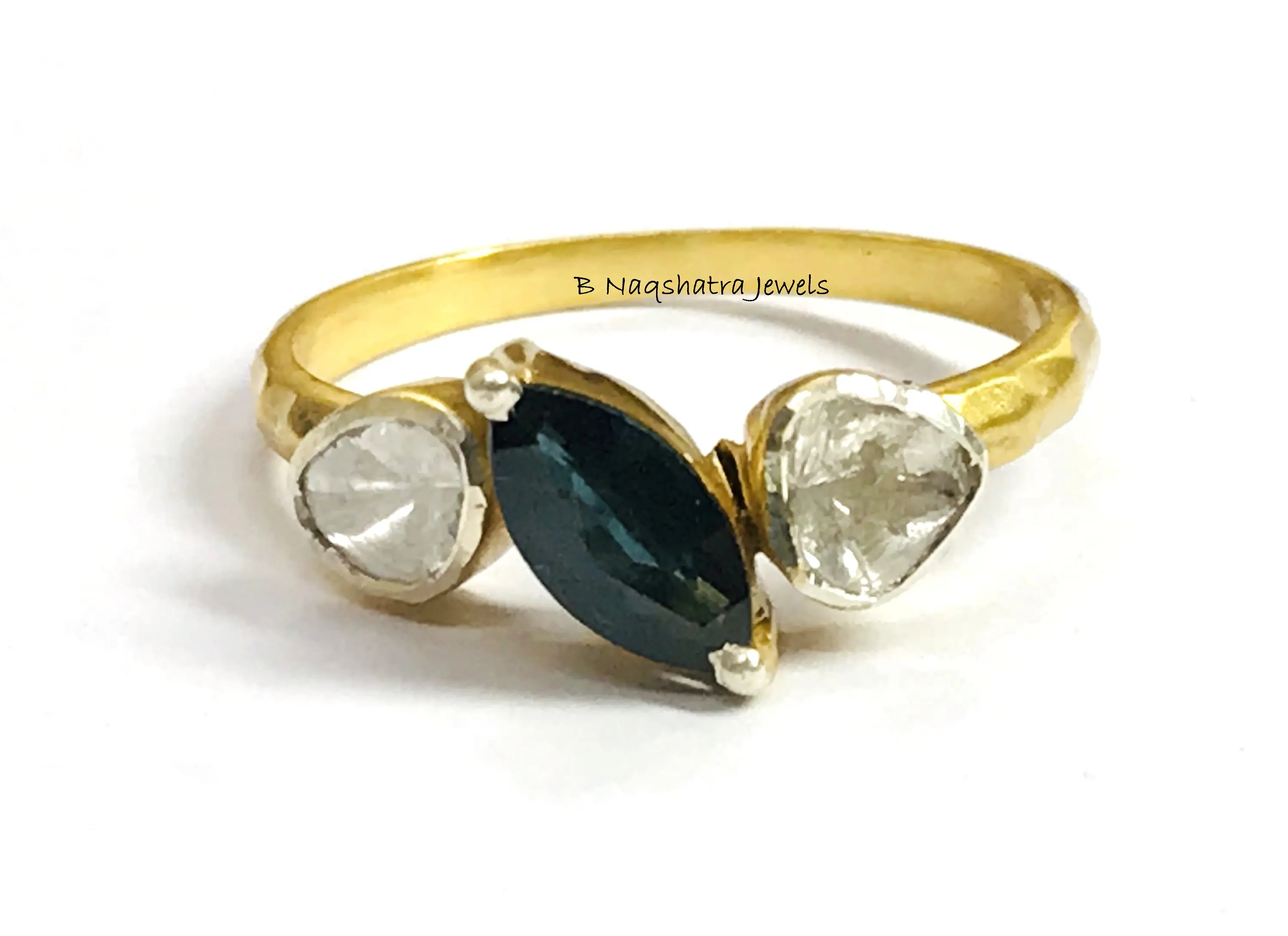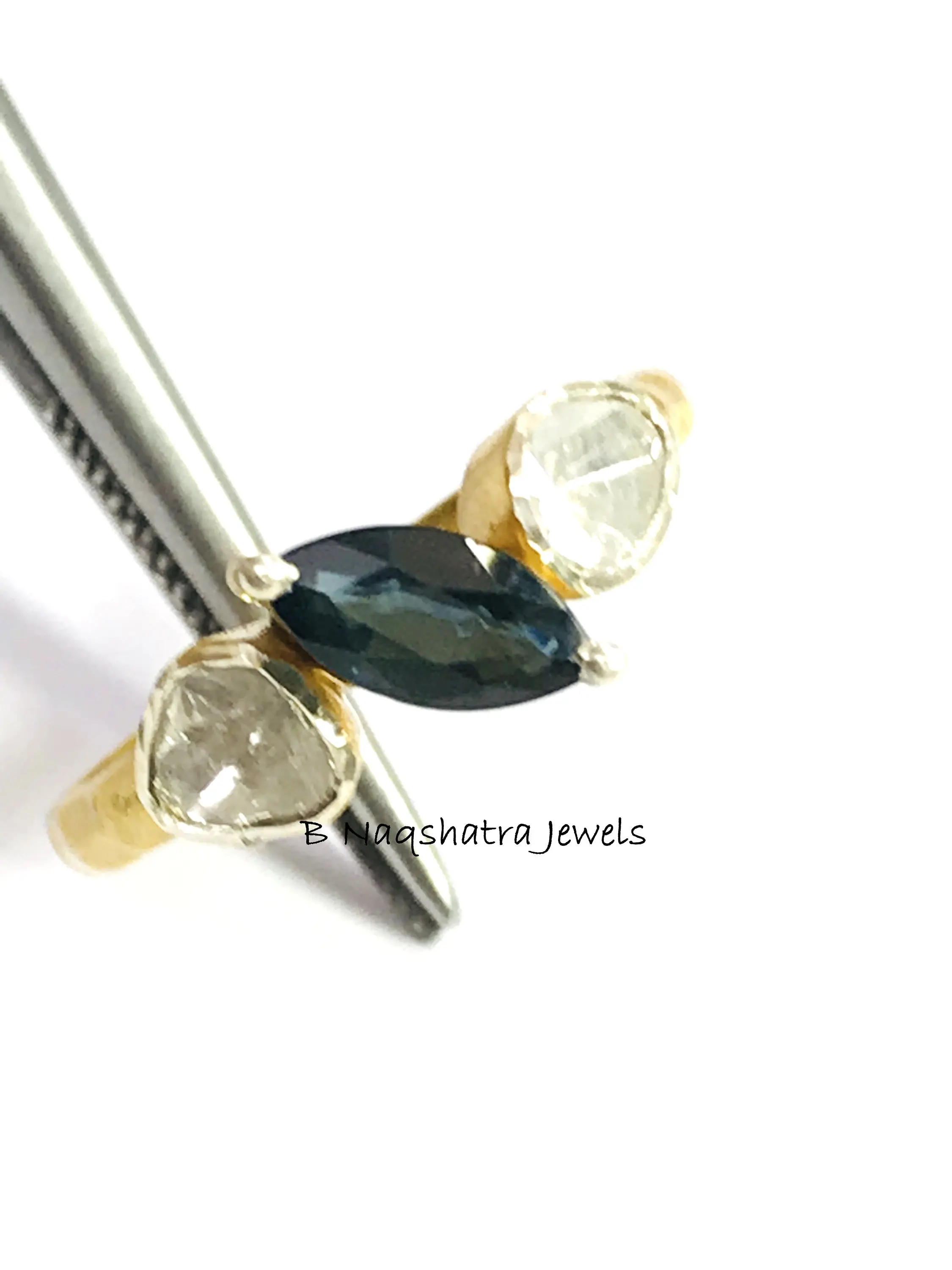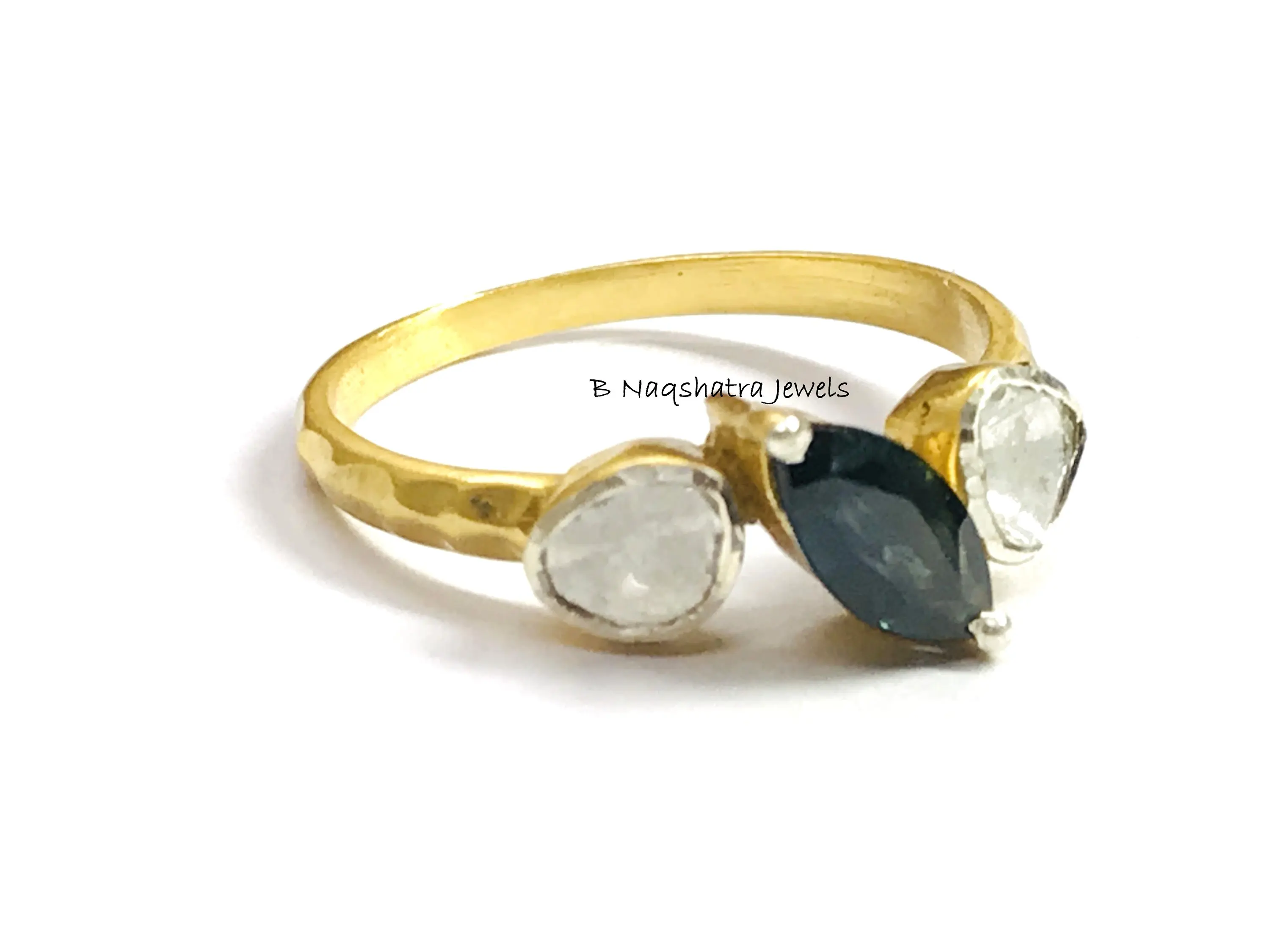 SAPPHIRE ROSECUT DIAMONDS , 925 Sterling silver Ring ,Engagement Ring , Blue Sapphire Marquise ,Vintage Wedding Band ,Women Jewelry..