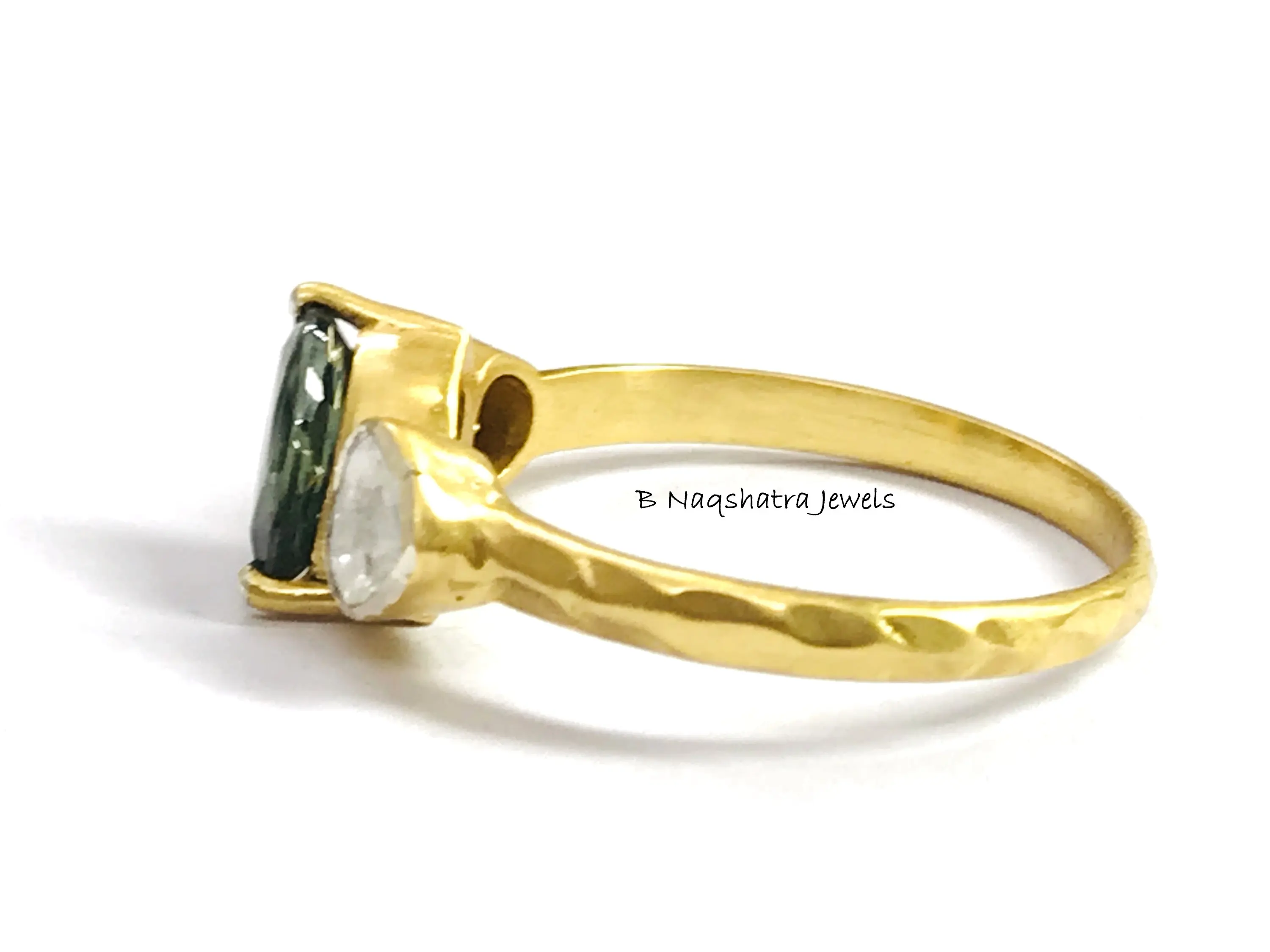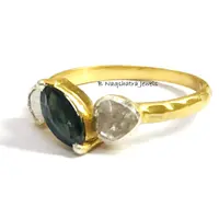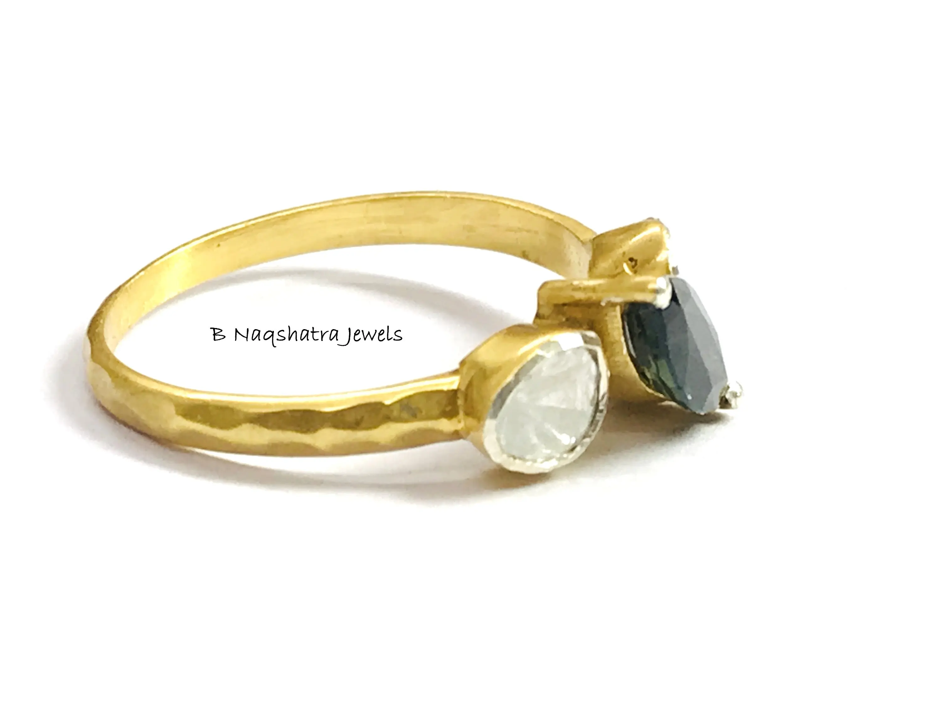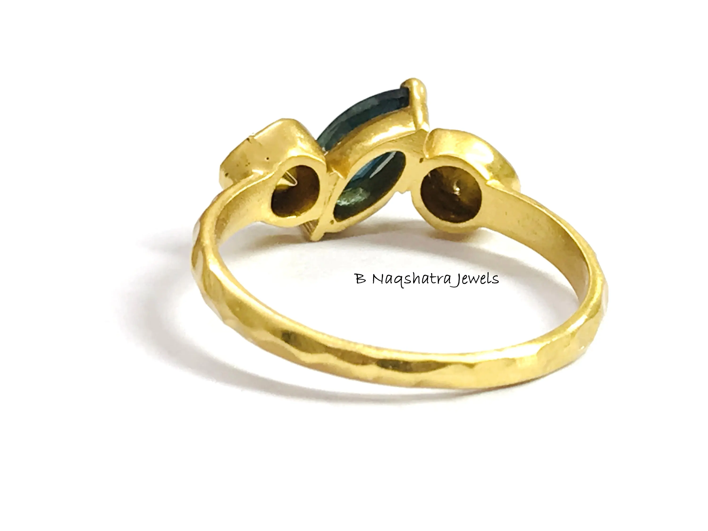SAPPHIRE ROSECUT DIAMONDS , 925 Sterling silver Ring ,Engagement Ring , Blue Sapphire Marquise ,Vintage Wedding Band ,Women Jewelry..