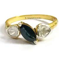 SAPPHIRE ROSECUT DIAMONDS , 925 Sterling silver Engagement Ring , Blue Sapphire Marquise ,Wedding Jewelry