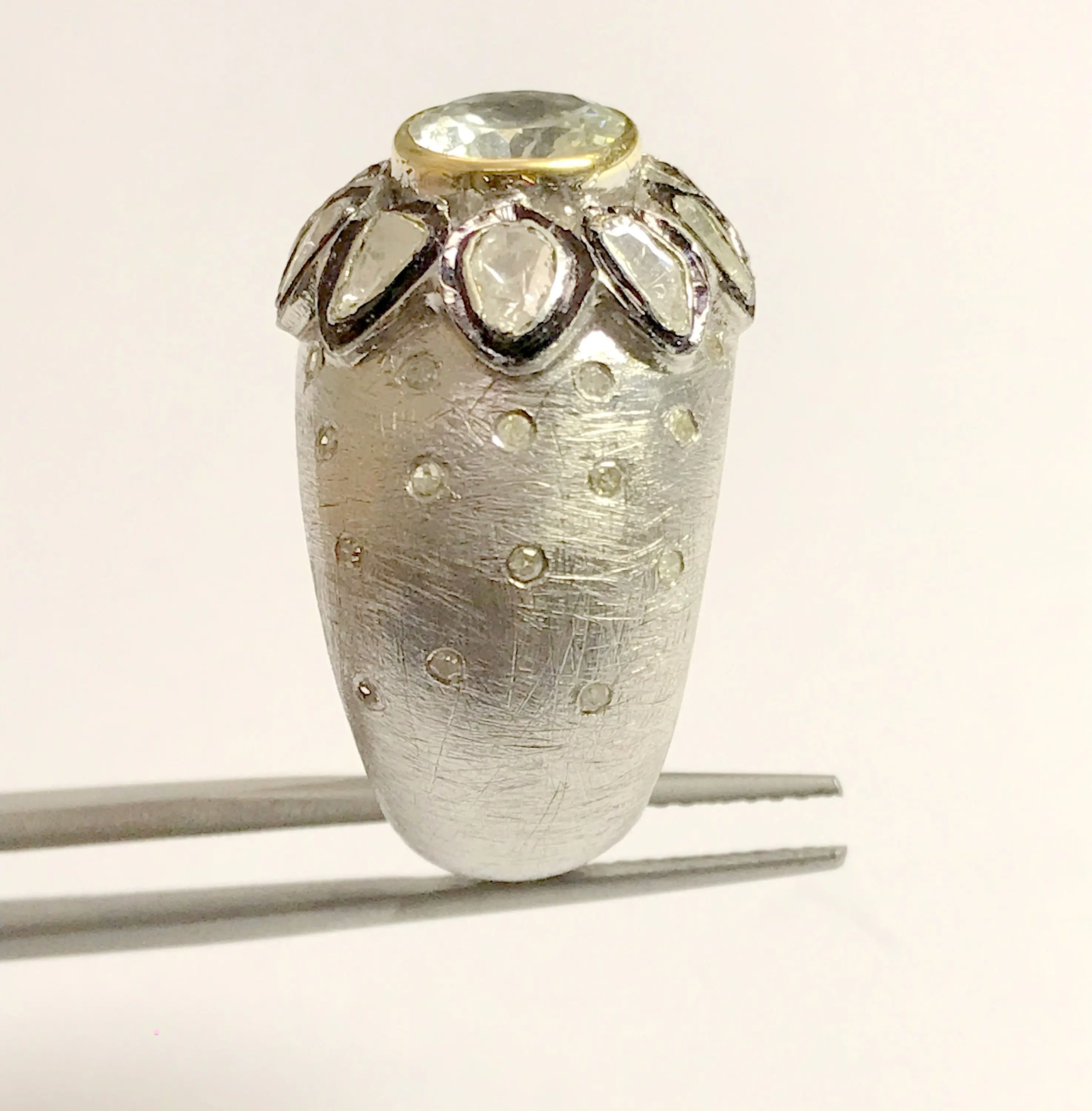 BEAUTIFUL HANDCRAFTED AS U CAN SEE IN PICTURE .....Textured and Matte finish , flush set diamonds and bezel set rose cut diamonds ......