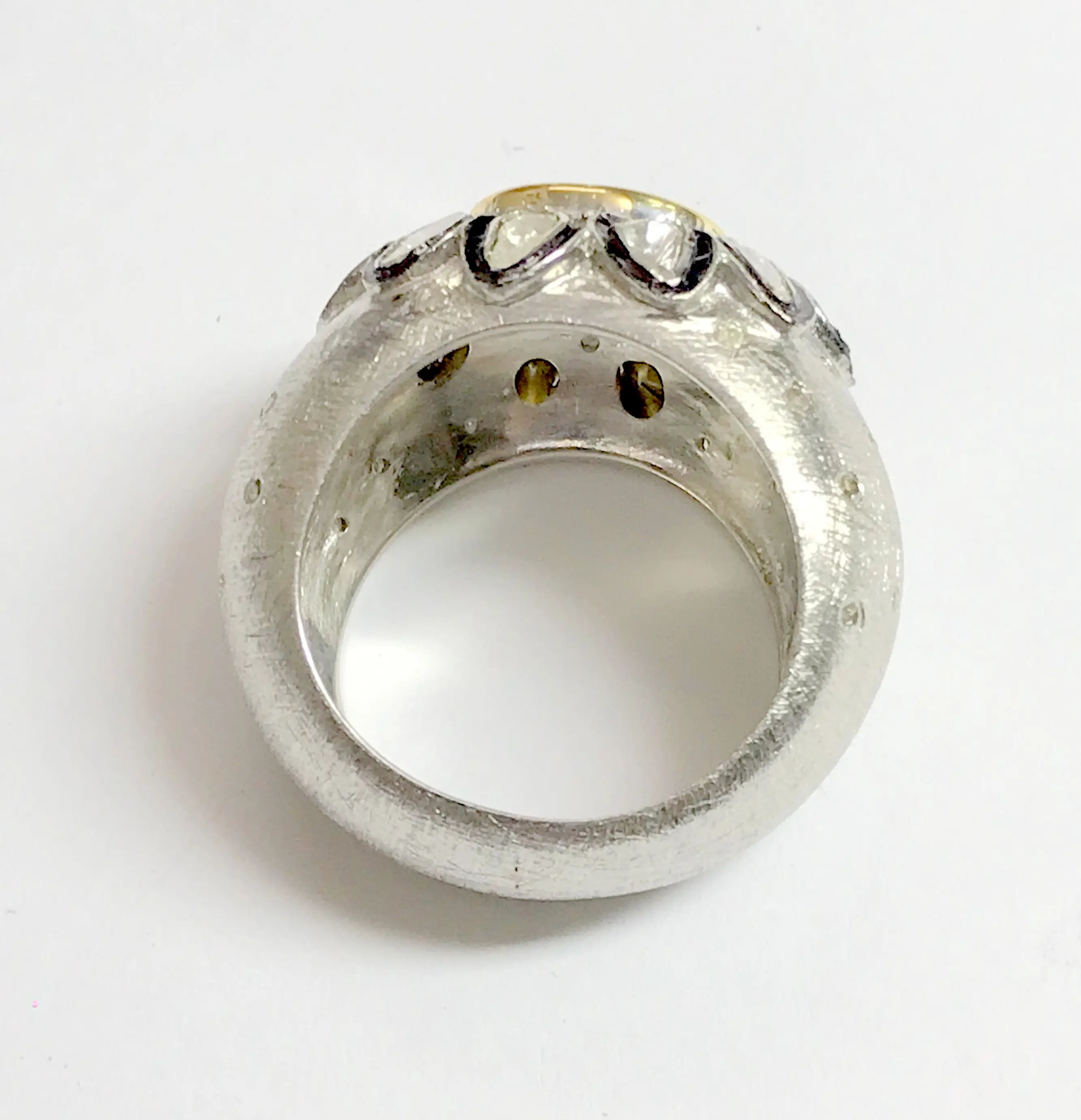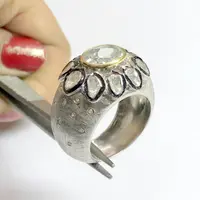 Hand cut diamond ring studded with 100% natural Rose cut diamonds in Bezel set......