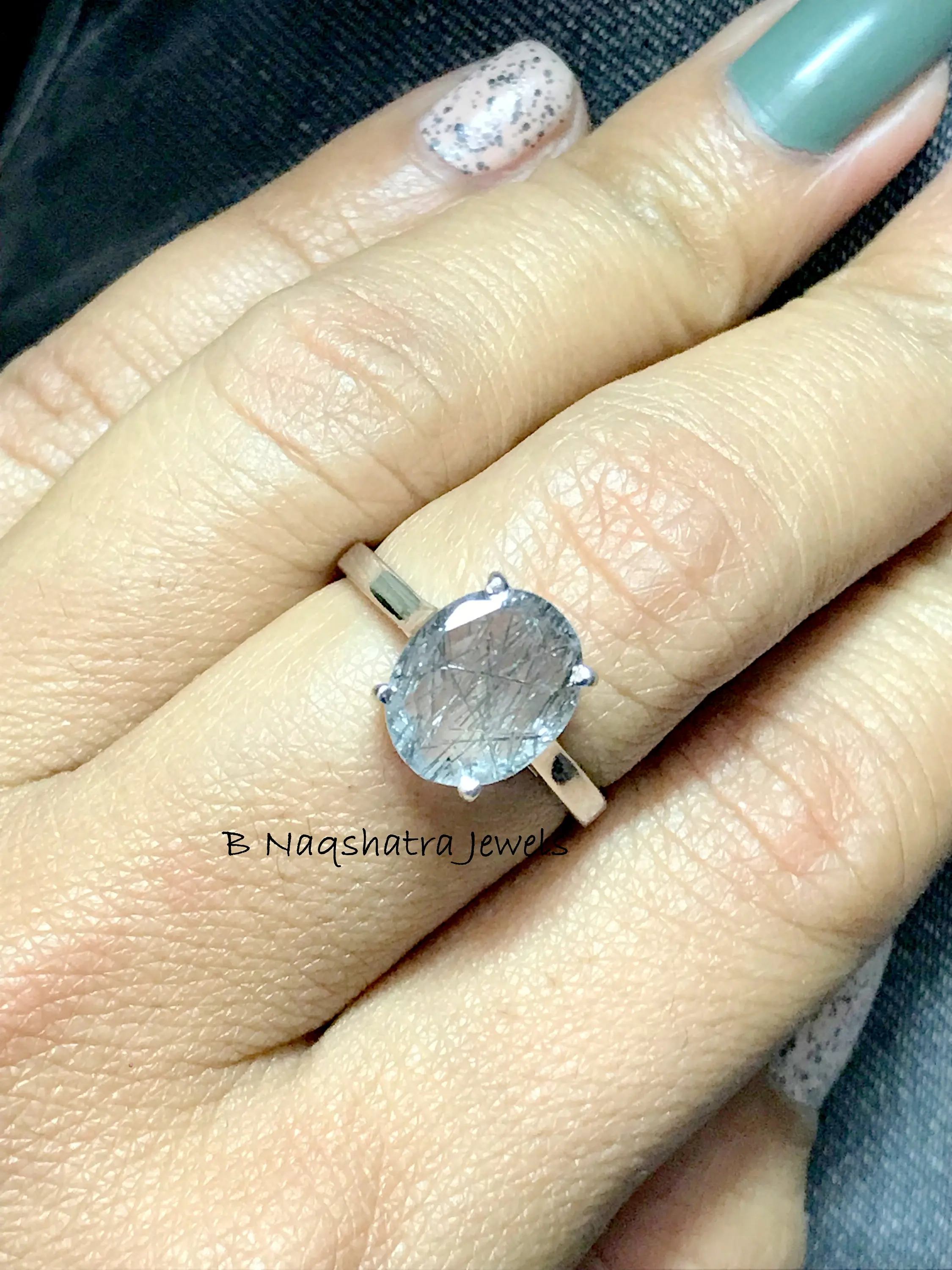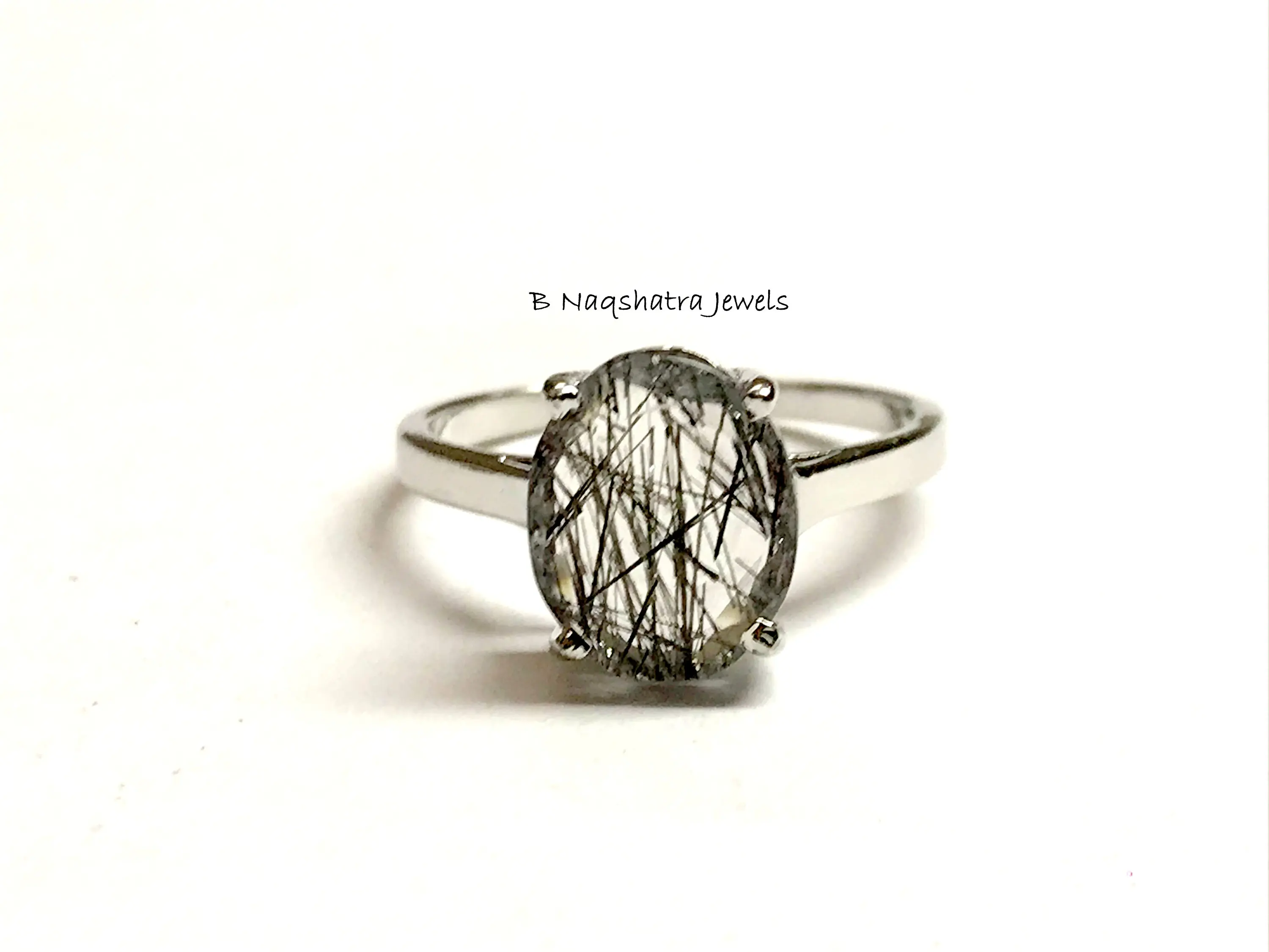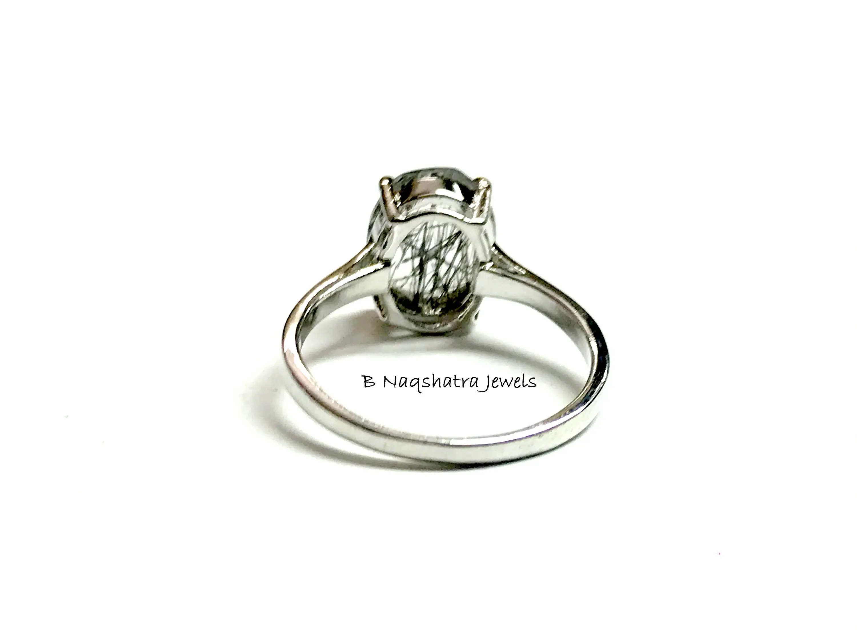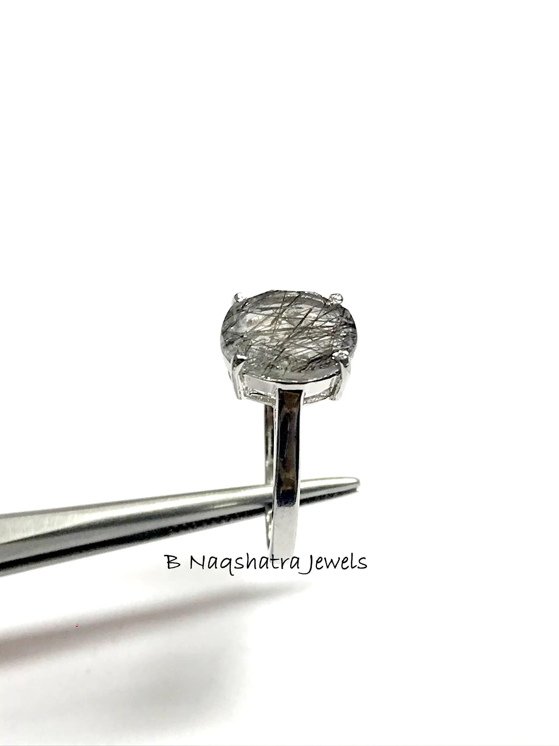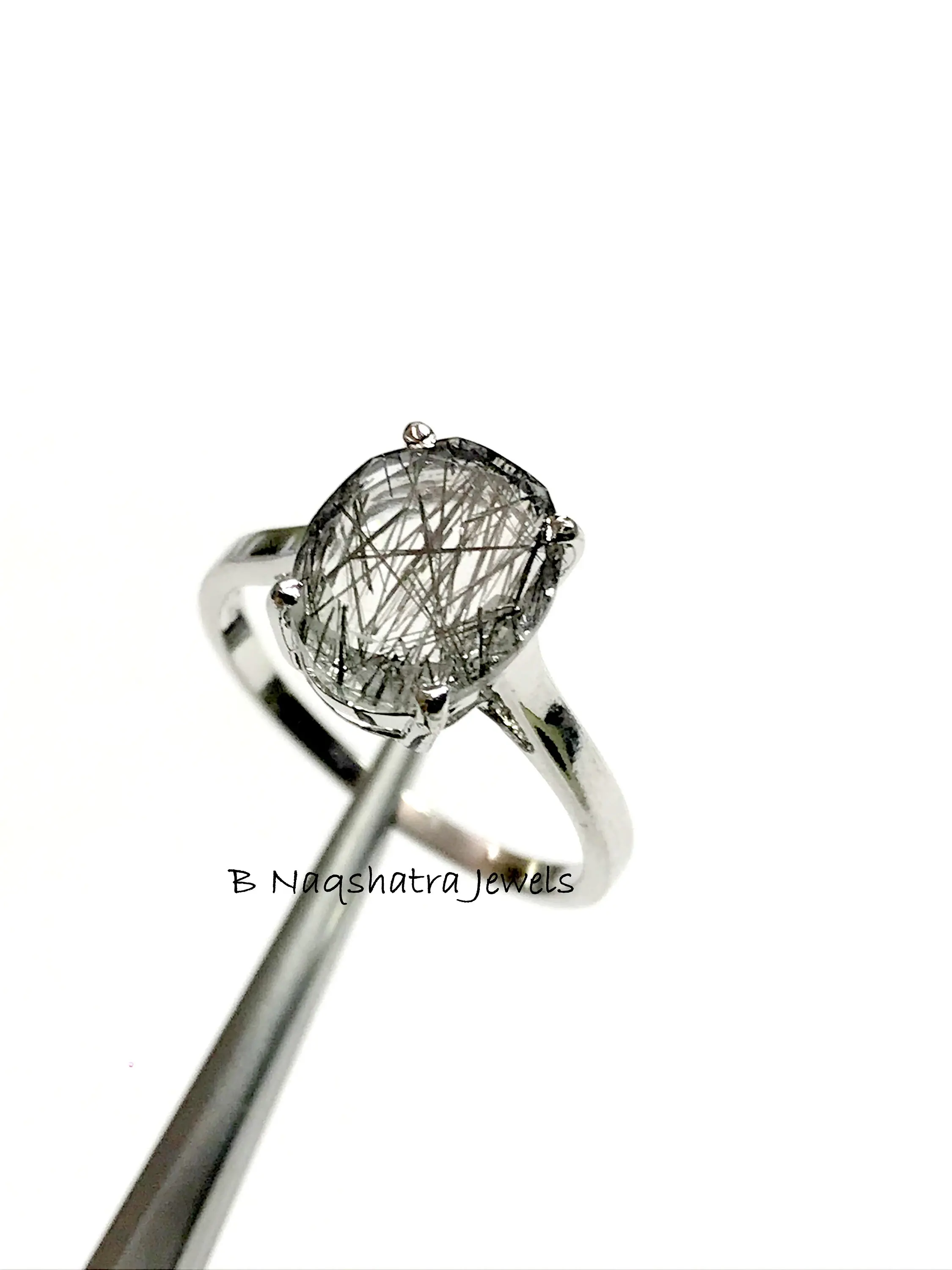 BLACK RUTILE QUARTZ 925 Sterling Silver Ring , Rutile Ring , Quartz Jewellery , Unisex Ring , Best valentine Gift , Gemini & Taurus Gemstone......