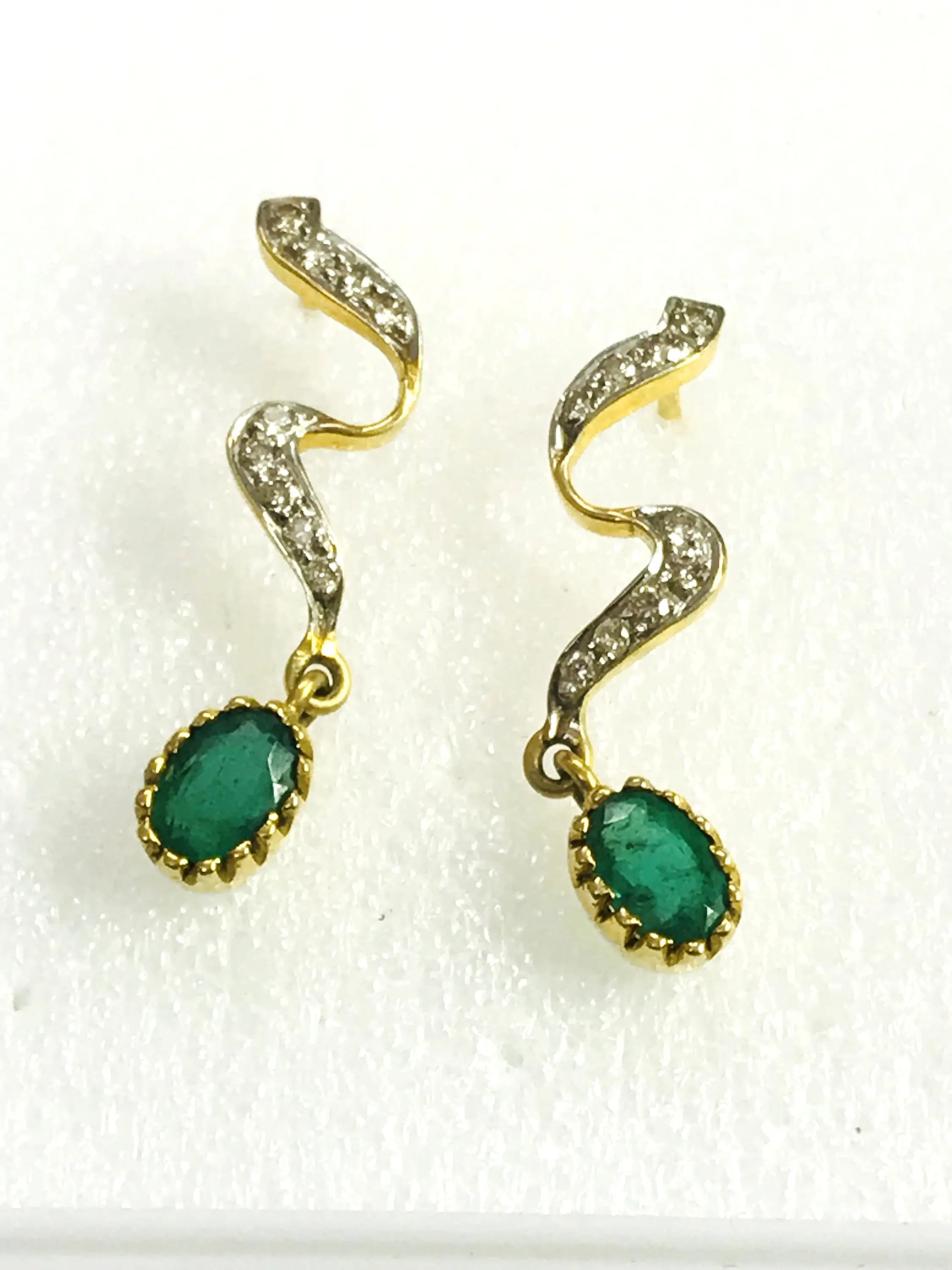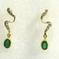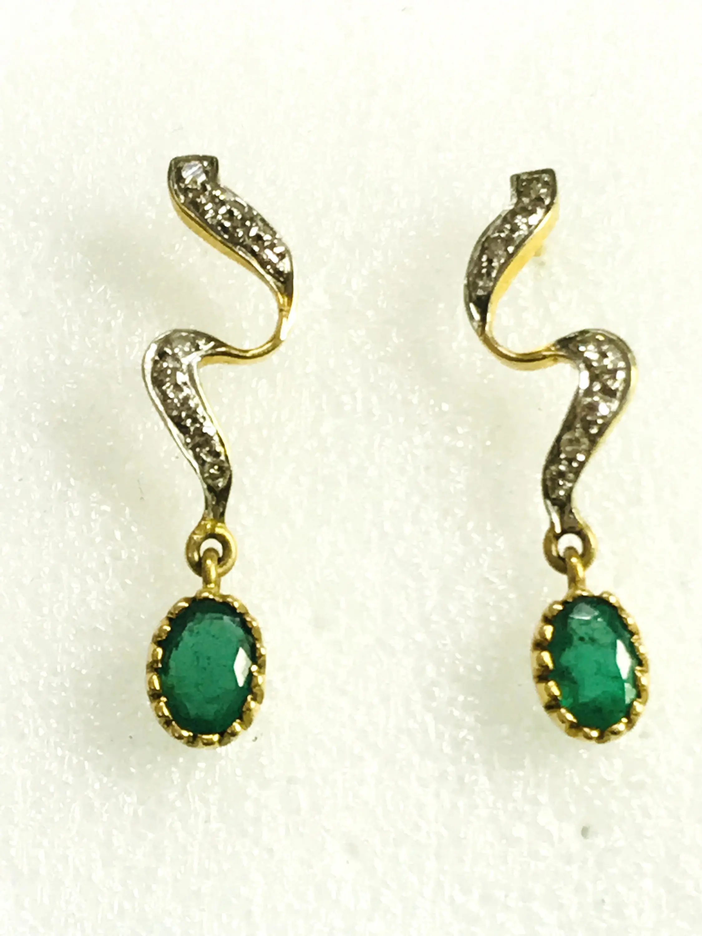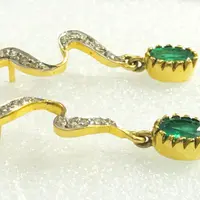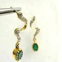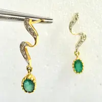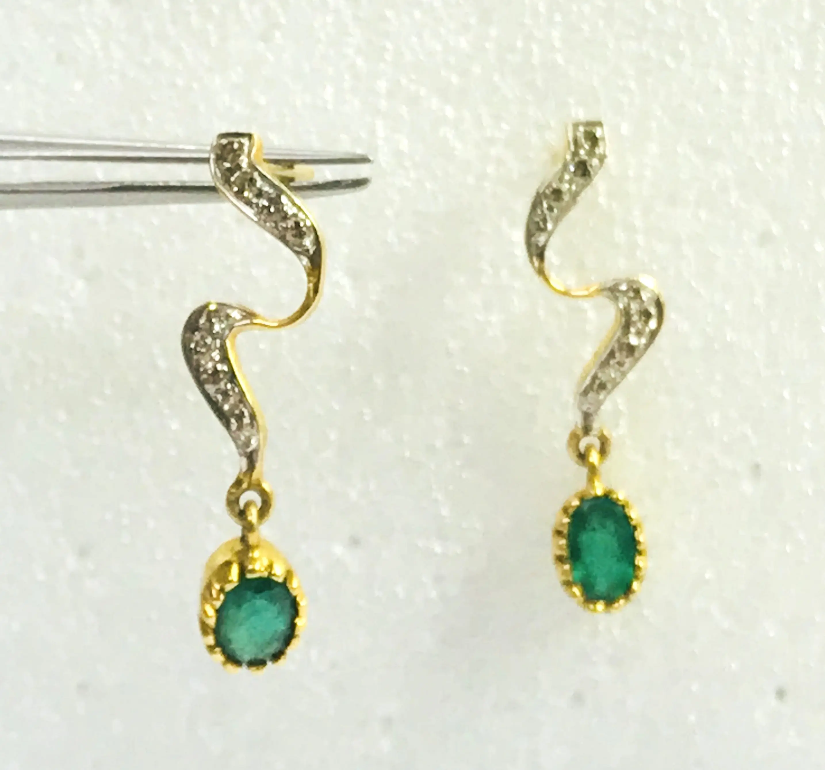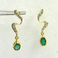 EMERALD DIAMOND Earring , 18k gold ,Dangle Earrings, Emerald oval , Valentine's Love , Gift for Her ,Wedding Bridal Gift..............