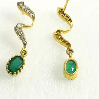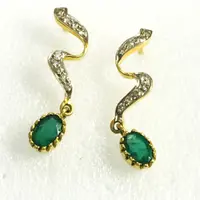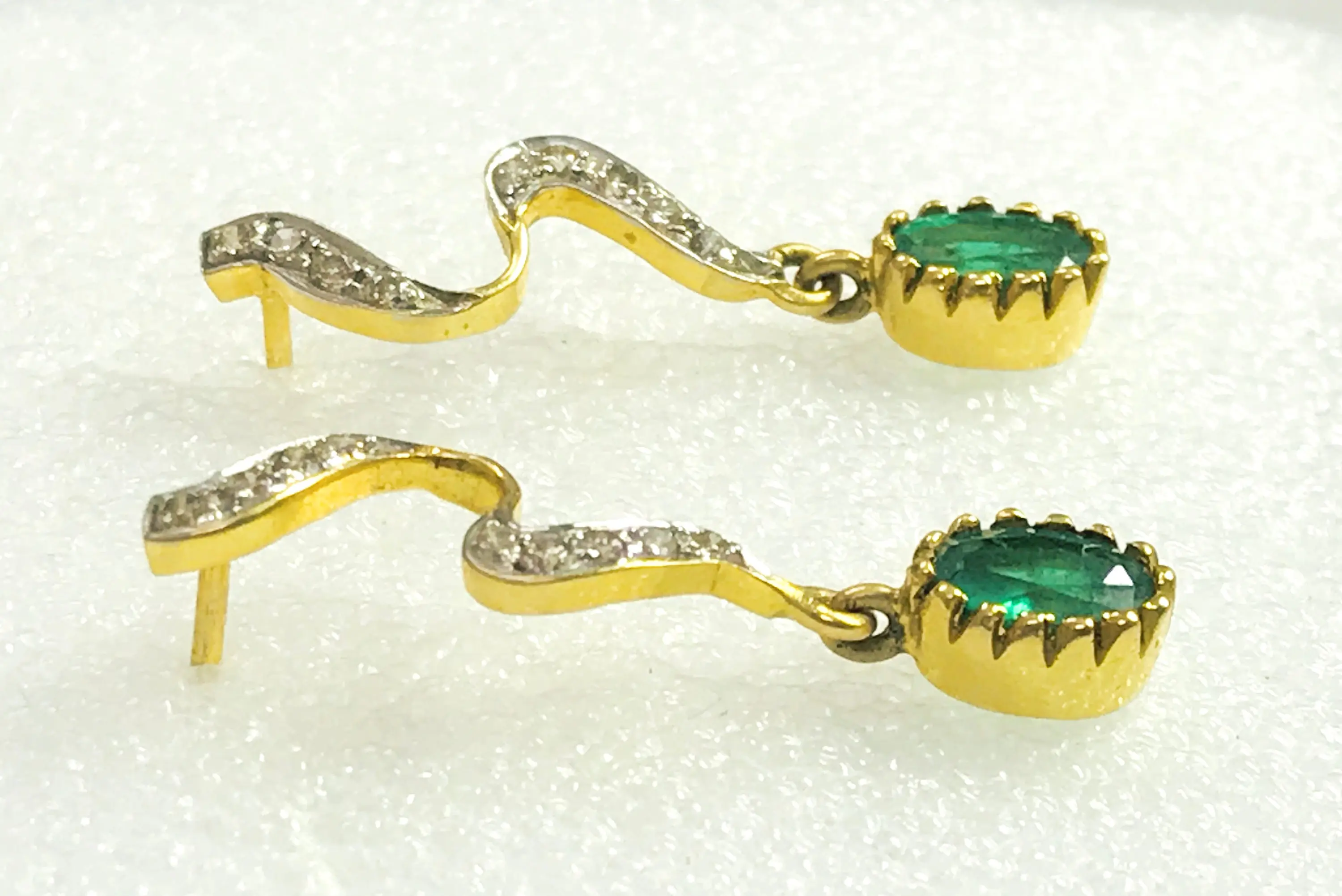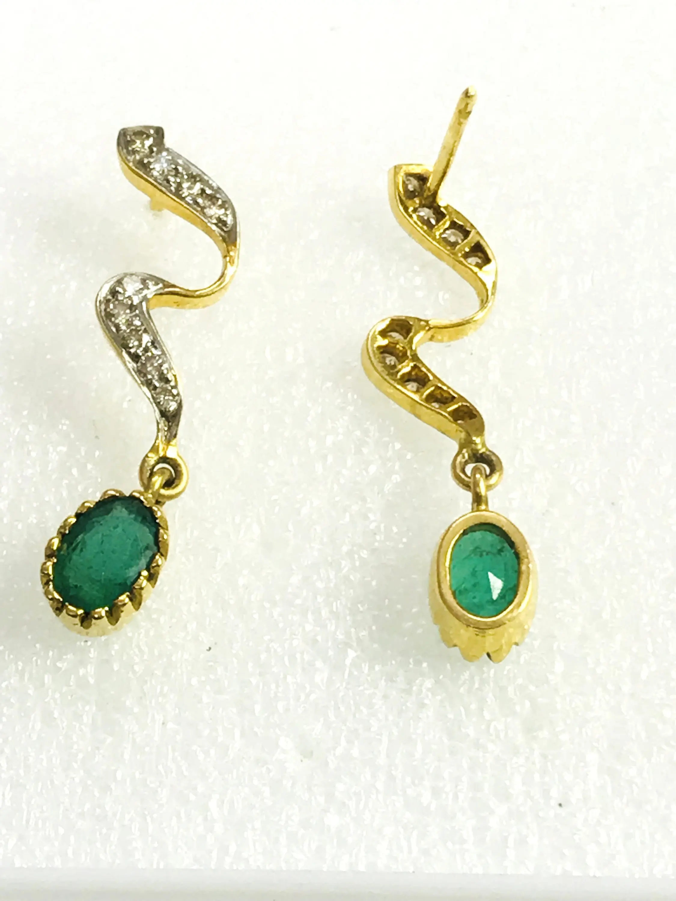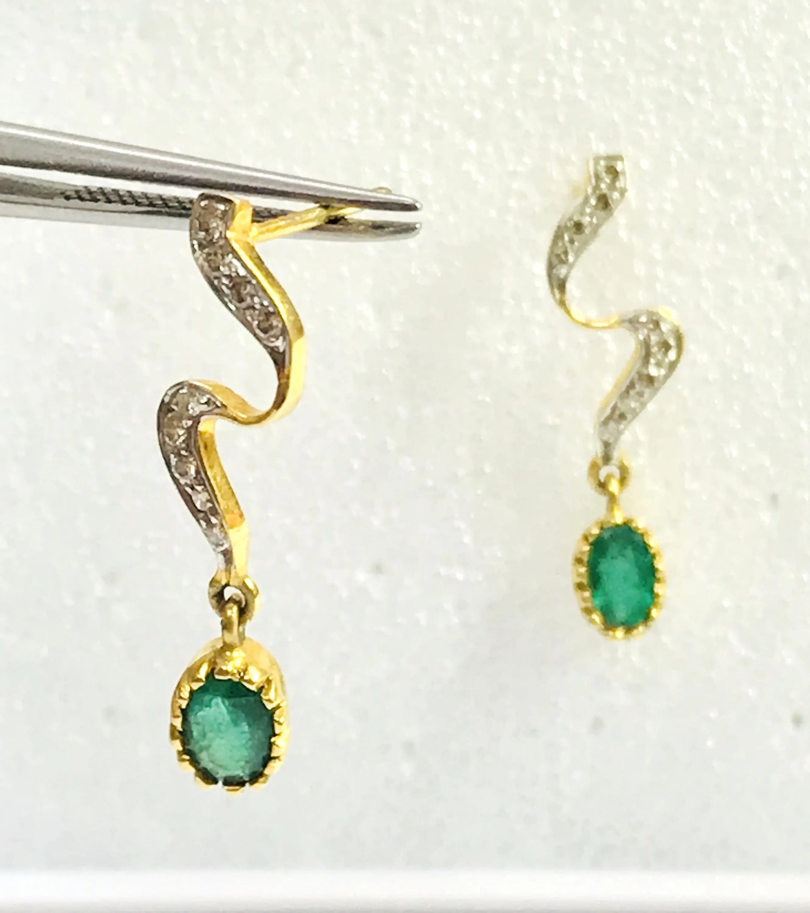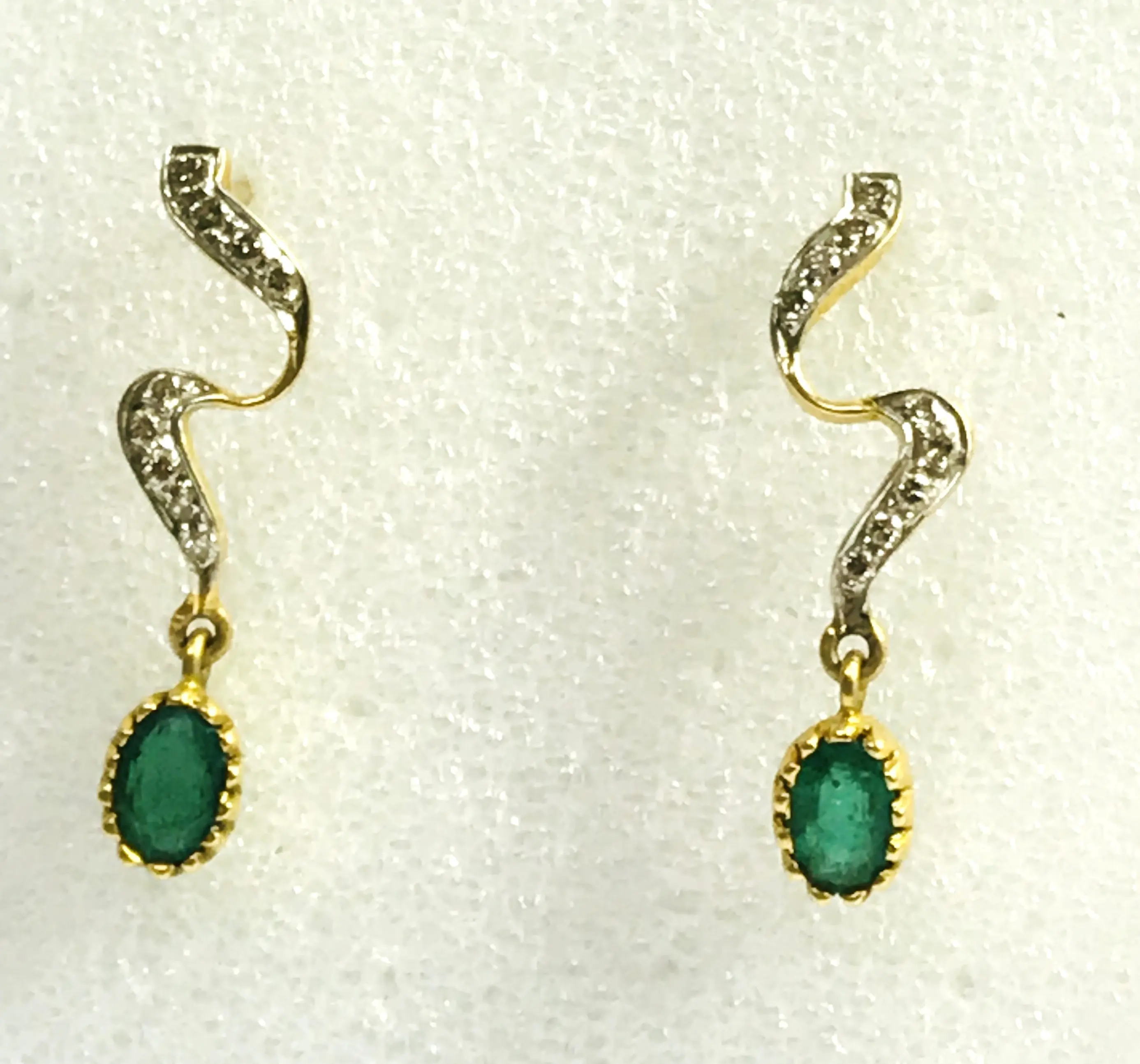 EMERALD DIAMOND Earring , 18k gold ,Dangle Earrings, Emerald oval , Valentine's Love , Gift for Her ,Wedding Bridal Gift..............