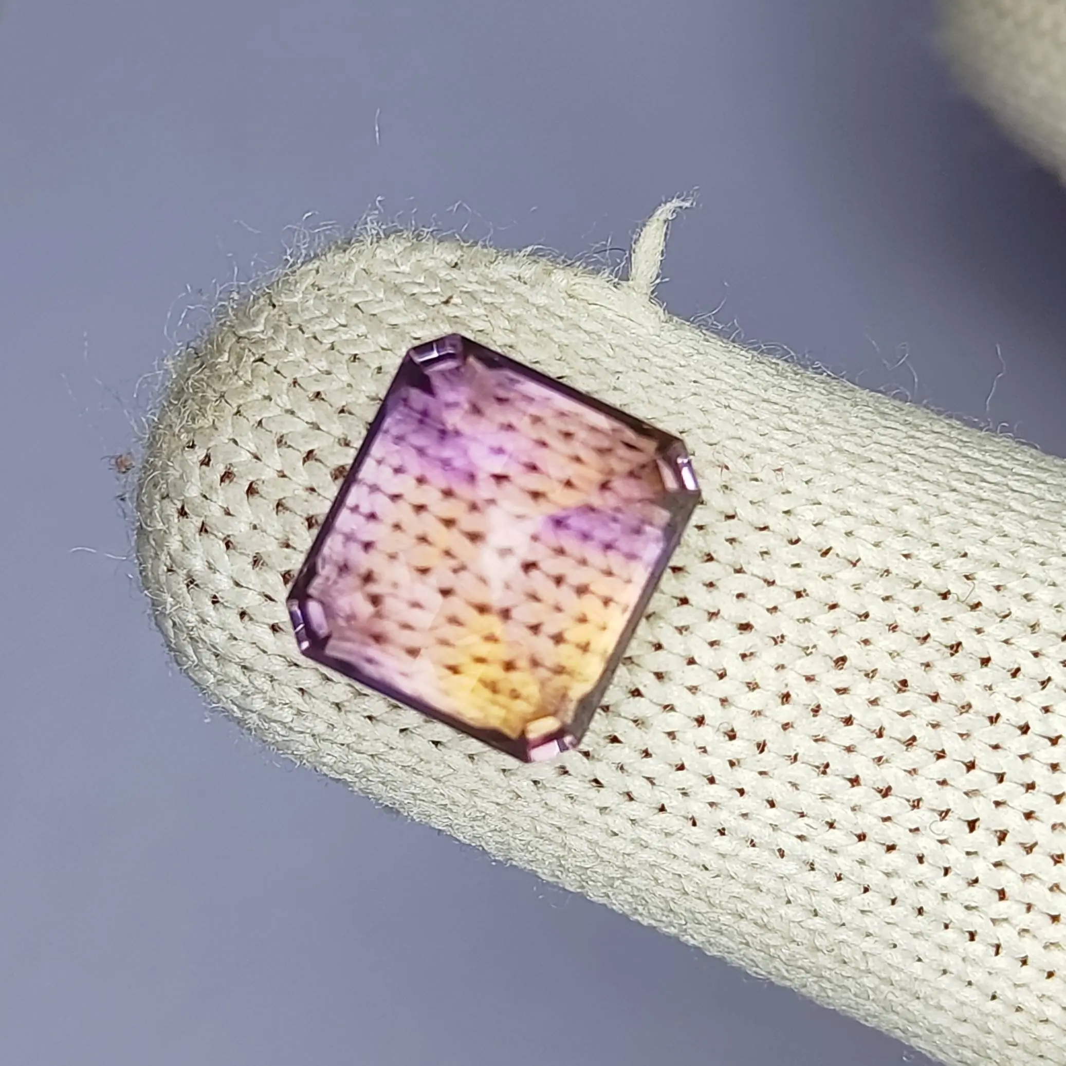 7.30 Carat 100% Natural Untreated 11x11x8 MM Ametrine Cushion Shape Loose Gemstone Double Ametrine Bi Color Ametrine Ring Pendant Brooch