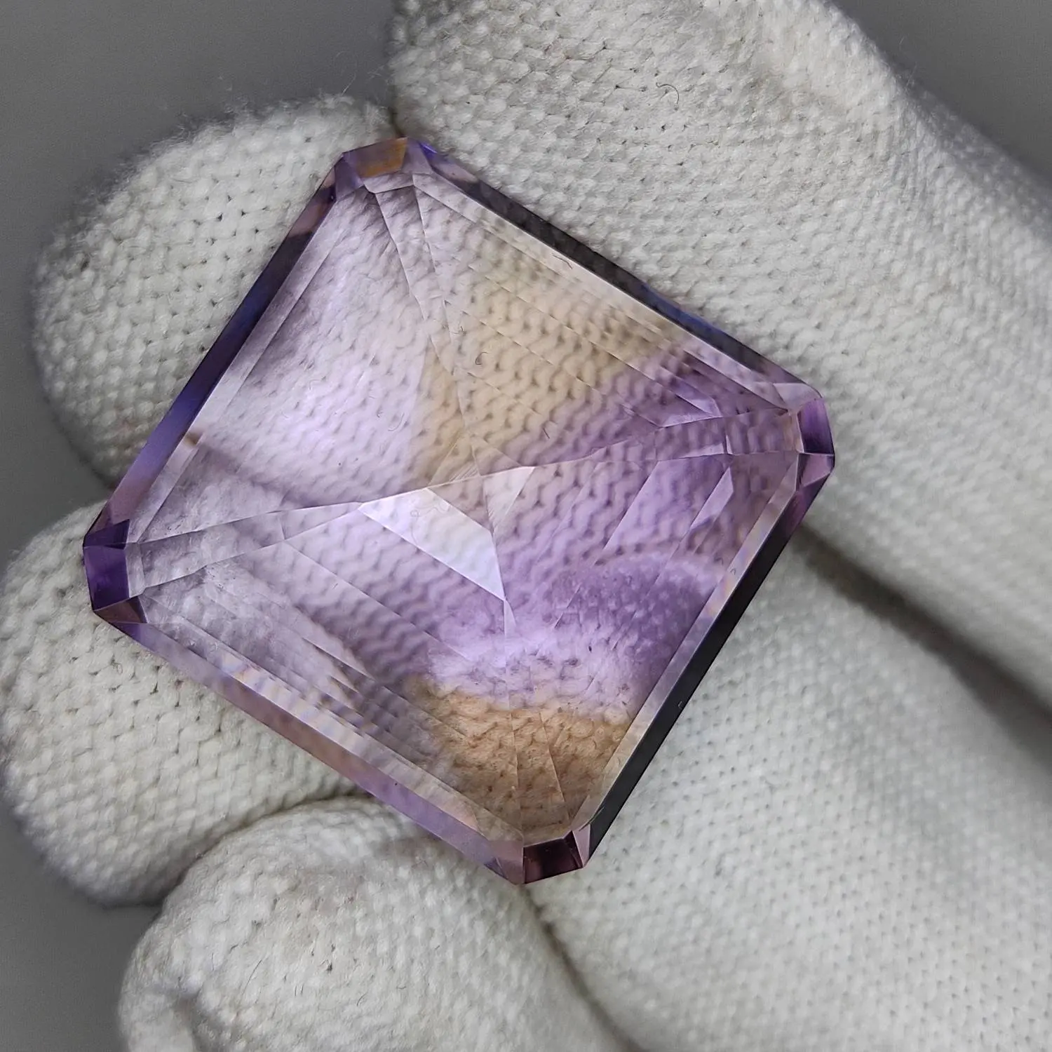 Certified 44 Carat 100% Natural Bolivian Ametrine Untreated Cushion Cut Loose Gemstone 24x24x10 MM for making of jewelry / ring.