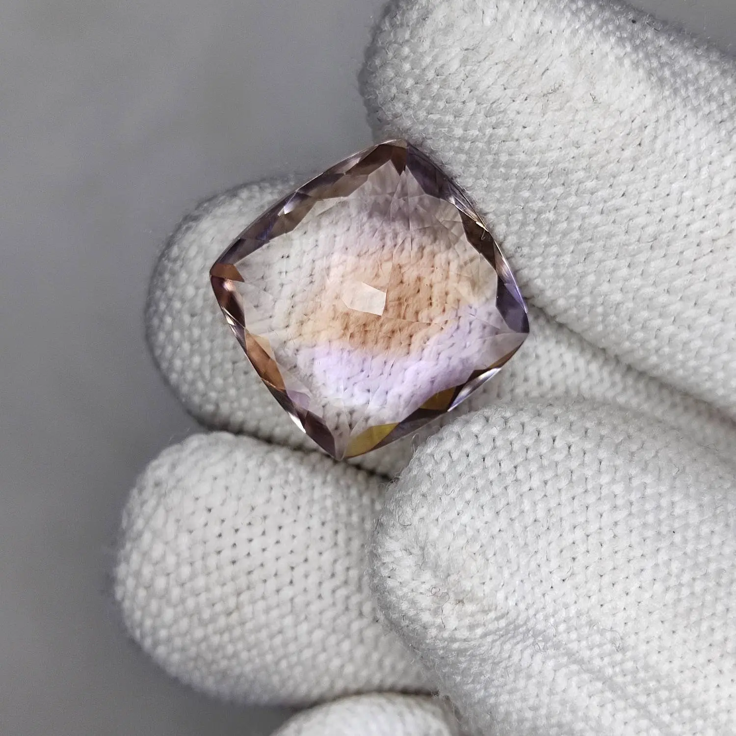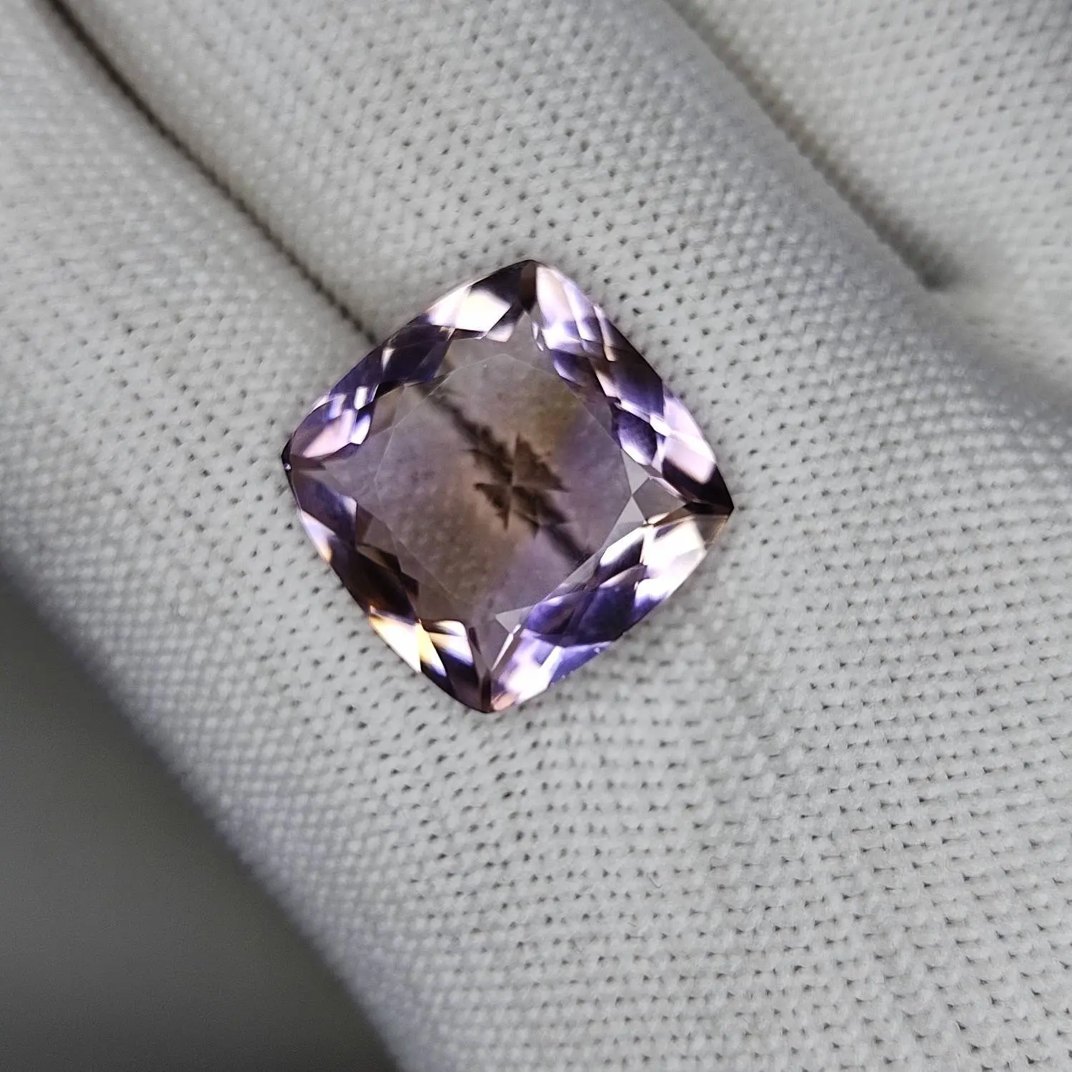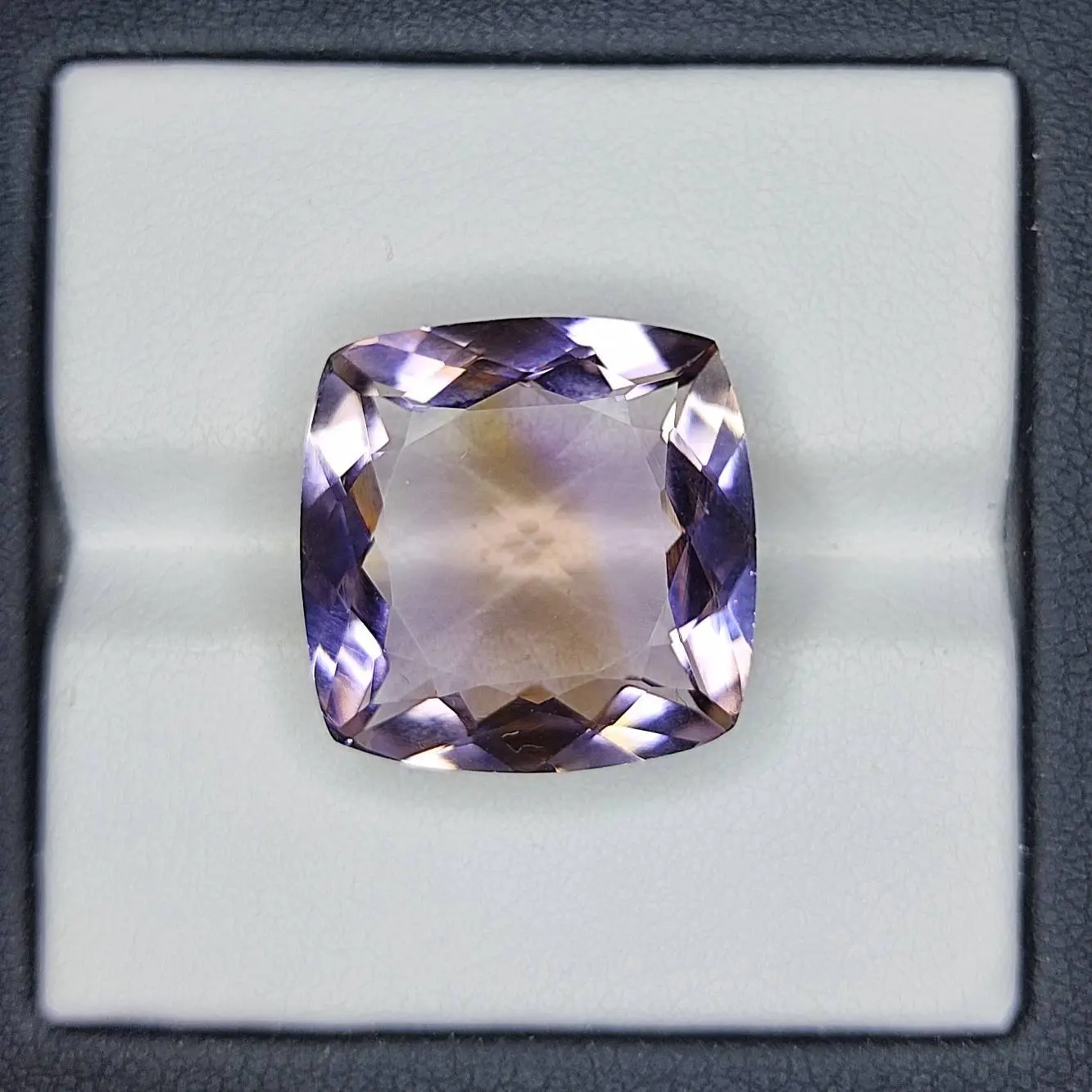 Certified 12.15 Carat 100% Natural Bolivian Ametrine Untreated Cushion Shape Cut Loose Gemstone 16x16x8 MM for making of jewelry / ring.
