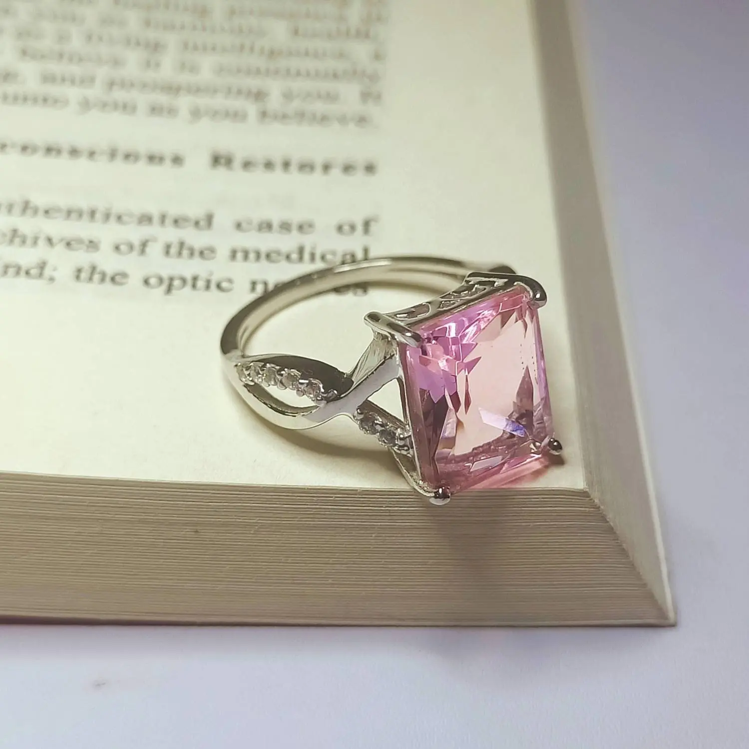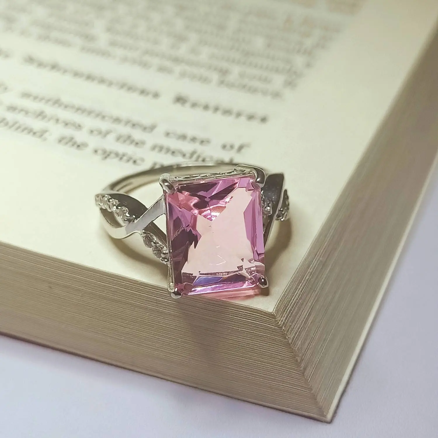 Pink Morganite Ring, Morganite Princess Cut Ring, 925 Sterling Silver Ring, 10x12 MM Princess Cut, Christmas Gift For Her Engagement Ring
