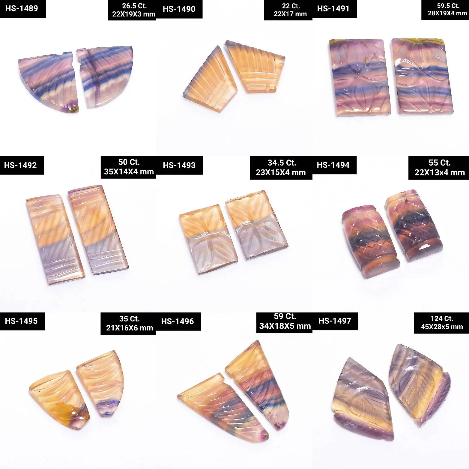 Gemstone: Natural Fluorite Carvings Pair