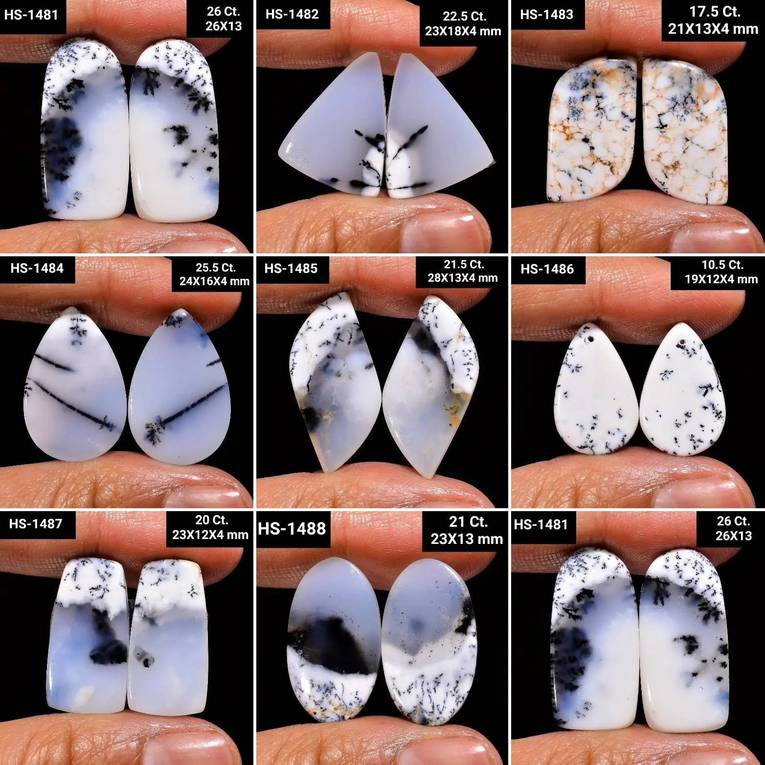 Natural Dendrite Opal Cabochon Mix Shape Stones Amazing Dendrite Opal Pair Loose Gemstone For Making Earrings