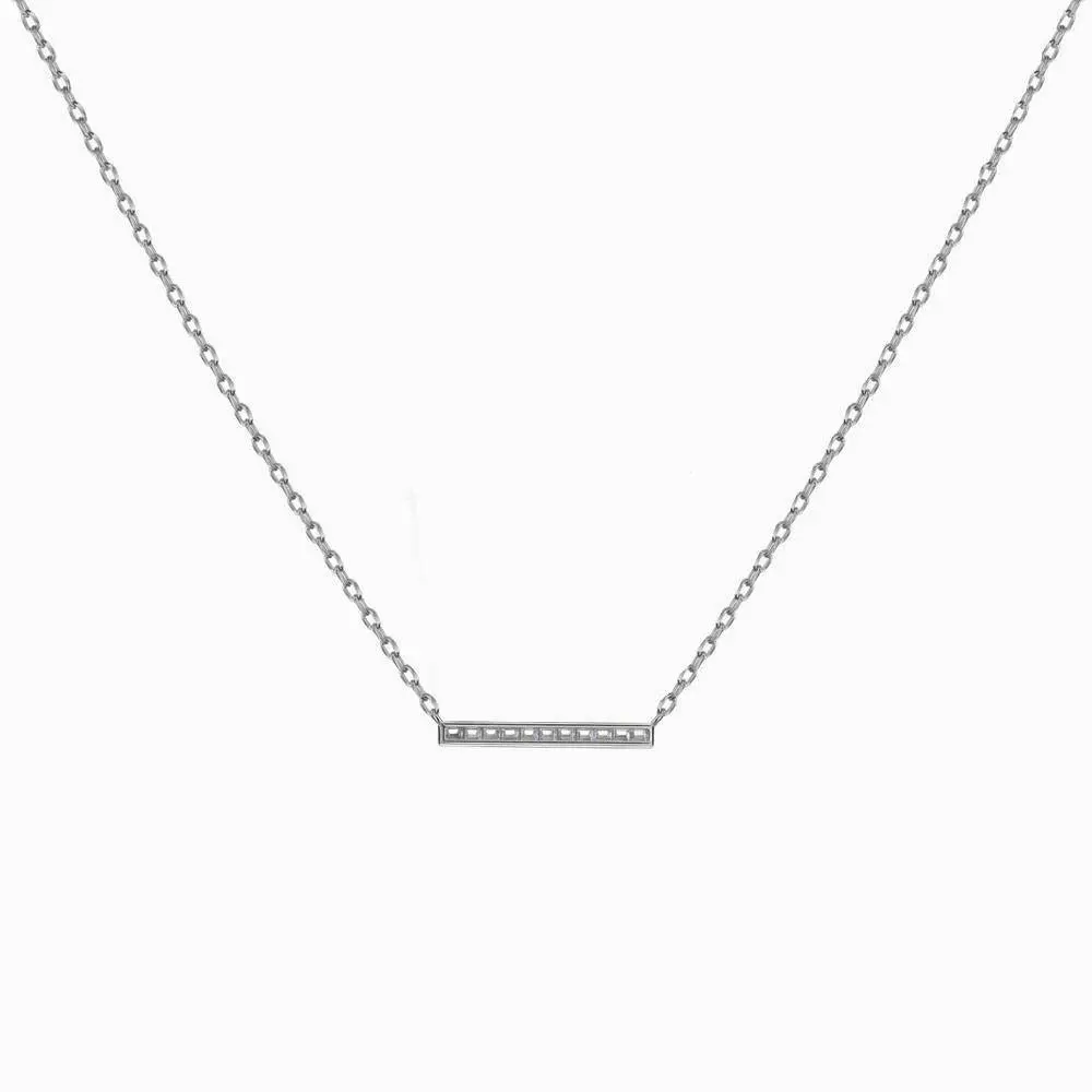 Bar Necklace, Bar Pendants, Cubic Zirconia Bar 925 Sterling Silver Necklace, Necklace with Chain