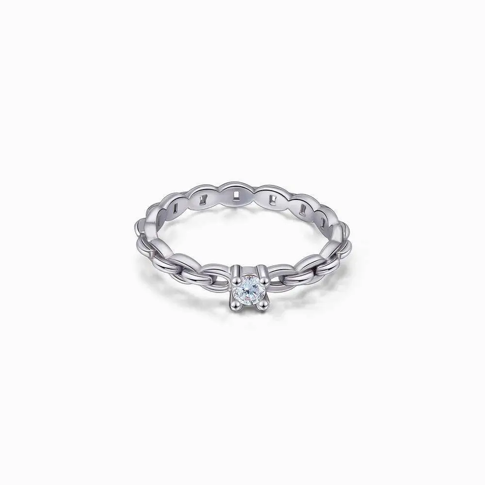 Moissanite Round Cut Chain Ring, Minimalist moissanite Ring, 925 Silver Ring, 3mm Round Cut Moissanite Ring, Christmas gift for her.