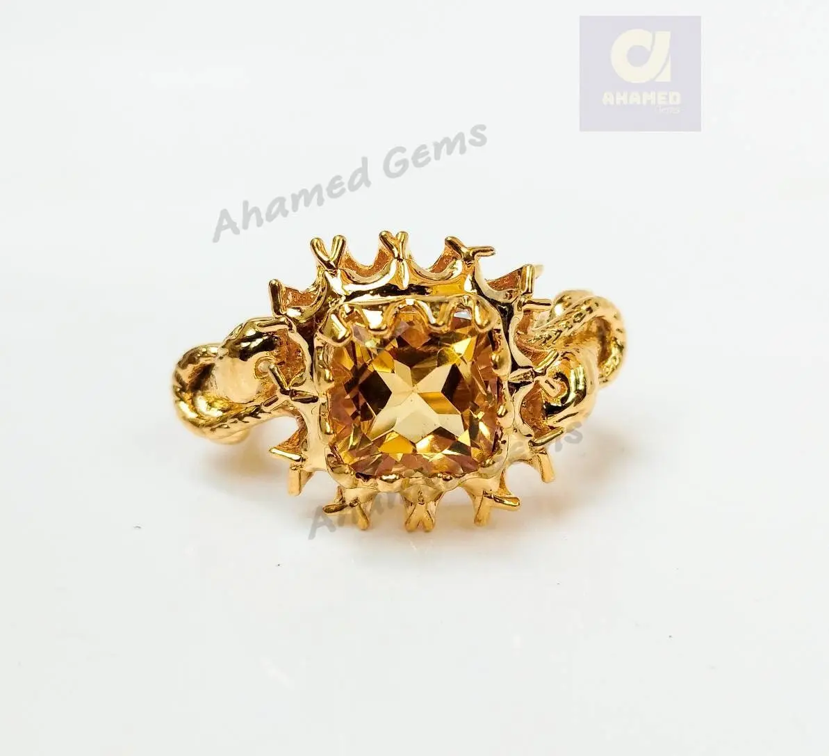Natural Citrine Ring 925 Sterling Silver Ring, 6x6 mm Cusion Citrine Ring Citrine Engagement Ring, Citrine Promise Ring, November Birthstone