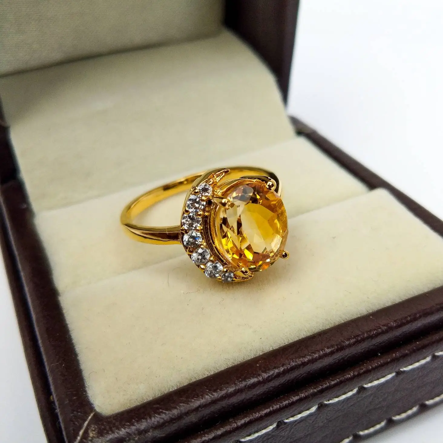 Natural Citrine Ring 925 Sterling Silver Moon Design Ring, 7x5 mm Oval Citrine Ring, Engagement Ring, Promise Ring, November Birthstone