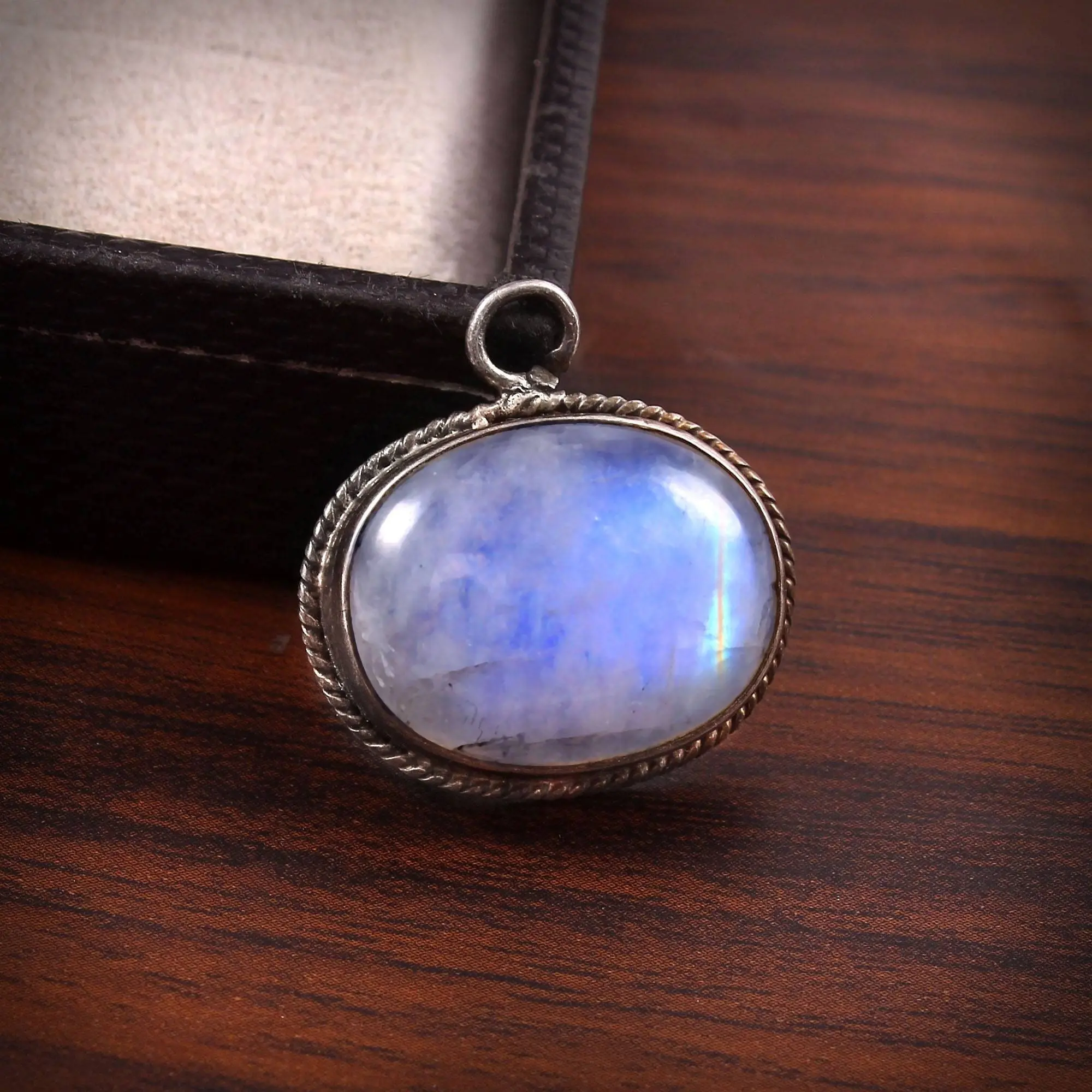 925 sterling silver rainbow moonstone pendant, designer smooth gemstone pendant, handmade silver pendant, bridal wedding jewellery gift.