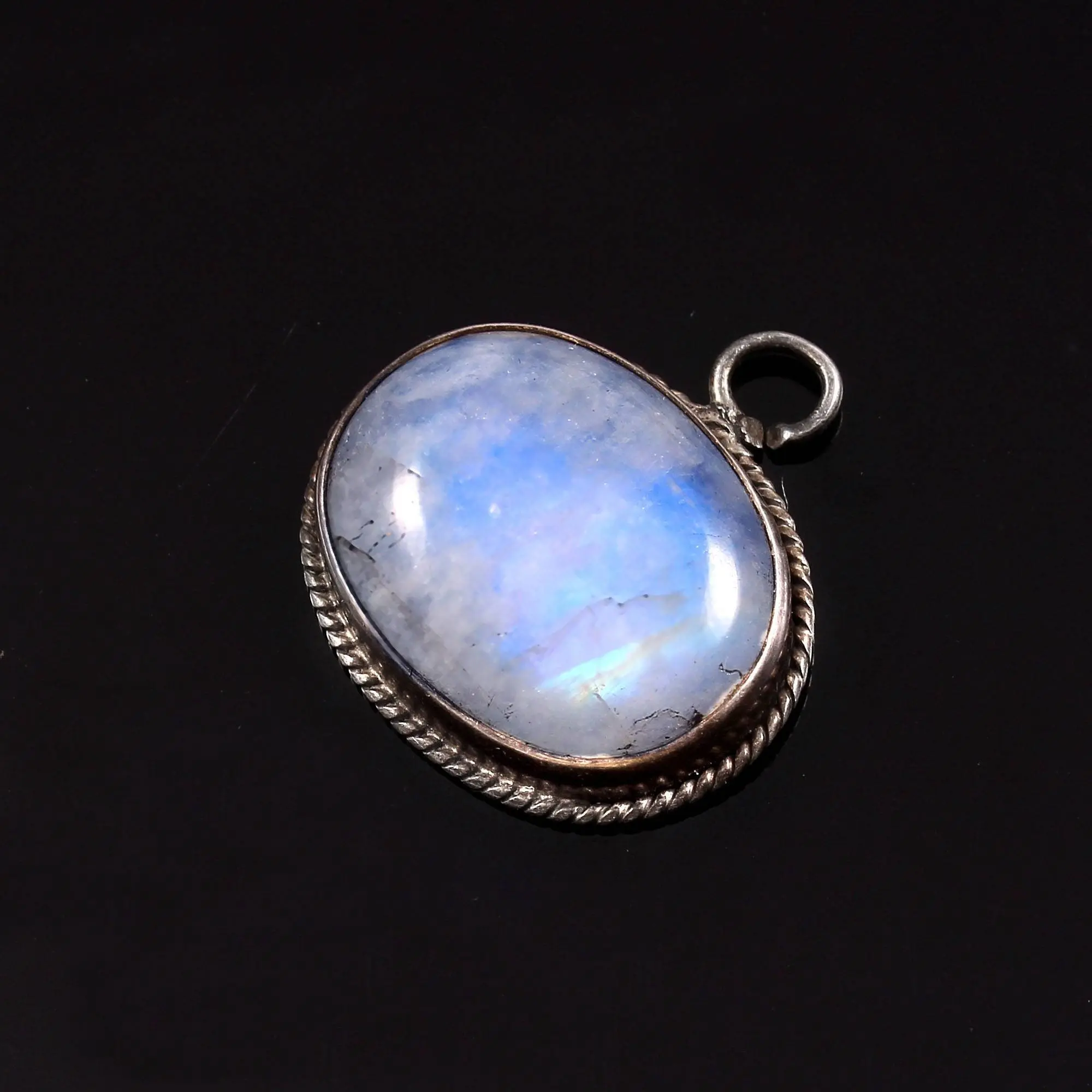 925 sterling silver rainbow moonstone pendant, designer smooth gemstone pendant, handmade silver pendant, bridal wedding jewellery gift