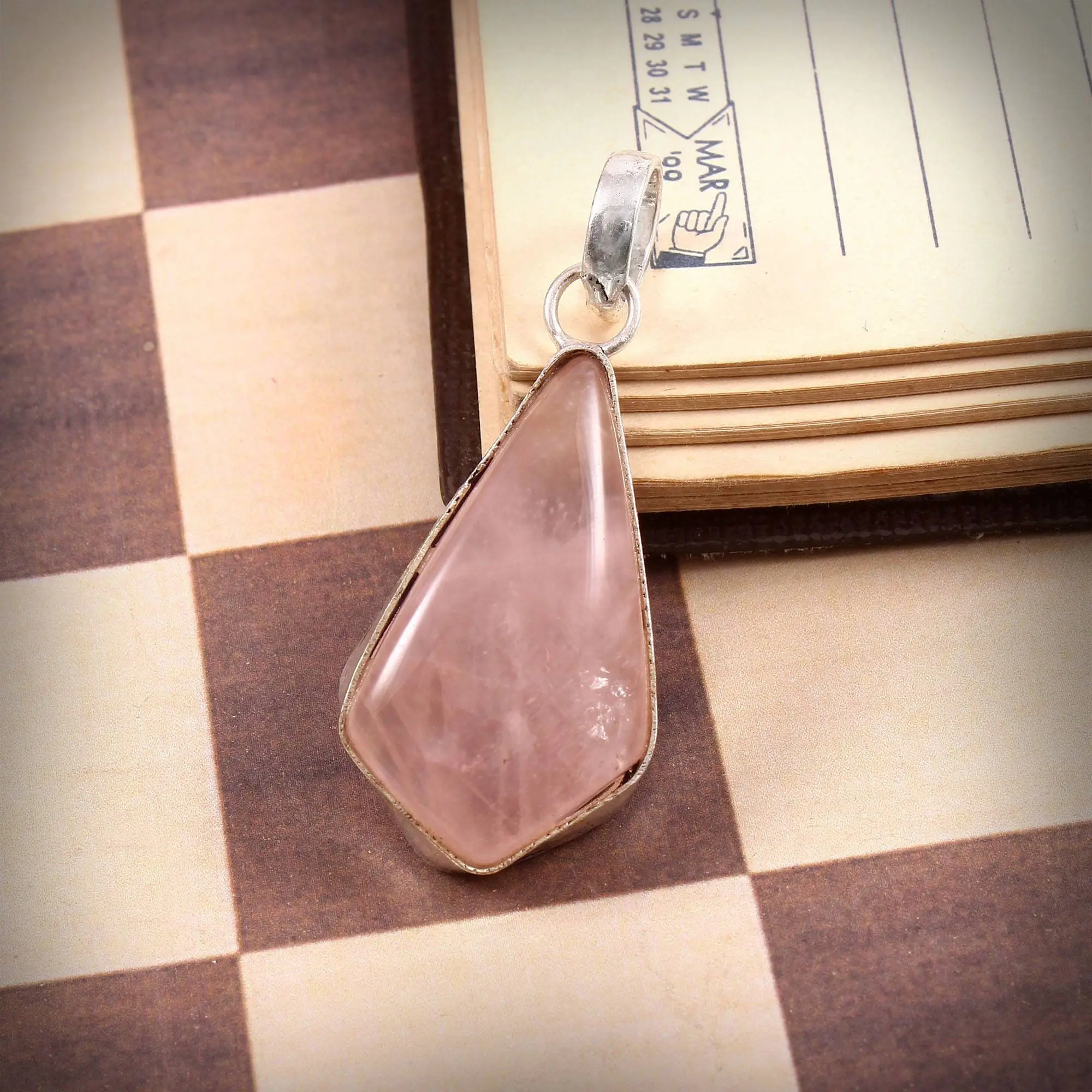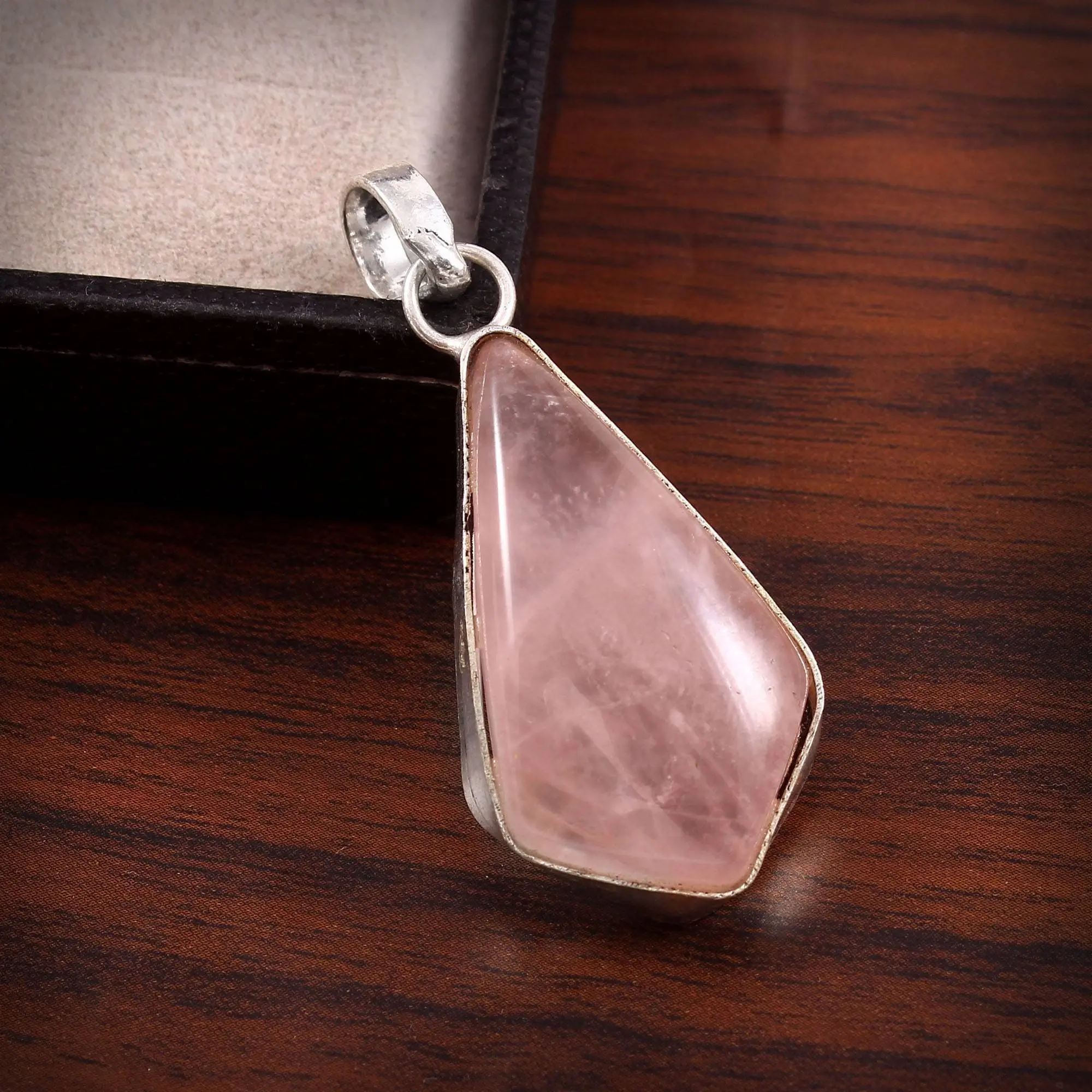 Rose Quartz Necklace - 925 Sterling Silver Necklace - Rose Quartz Silver Pendant- Wedding Jewelry- Christmas Gift - Pink Quartz Pendant