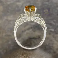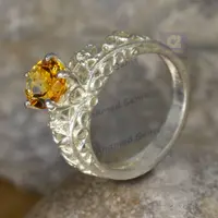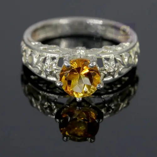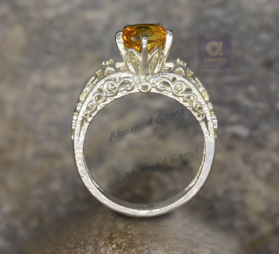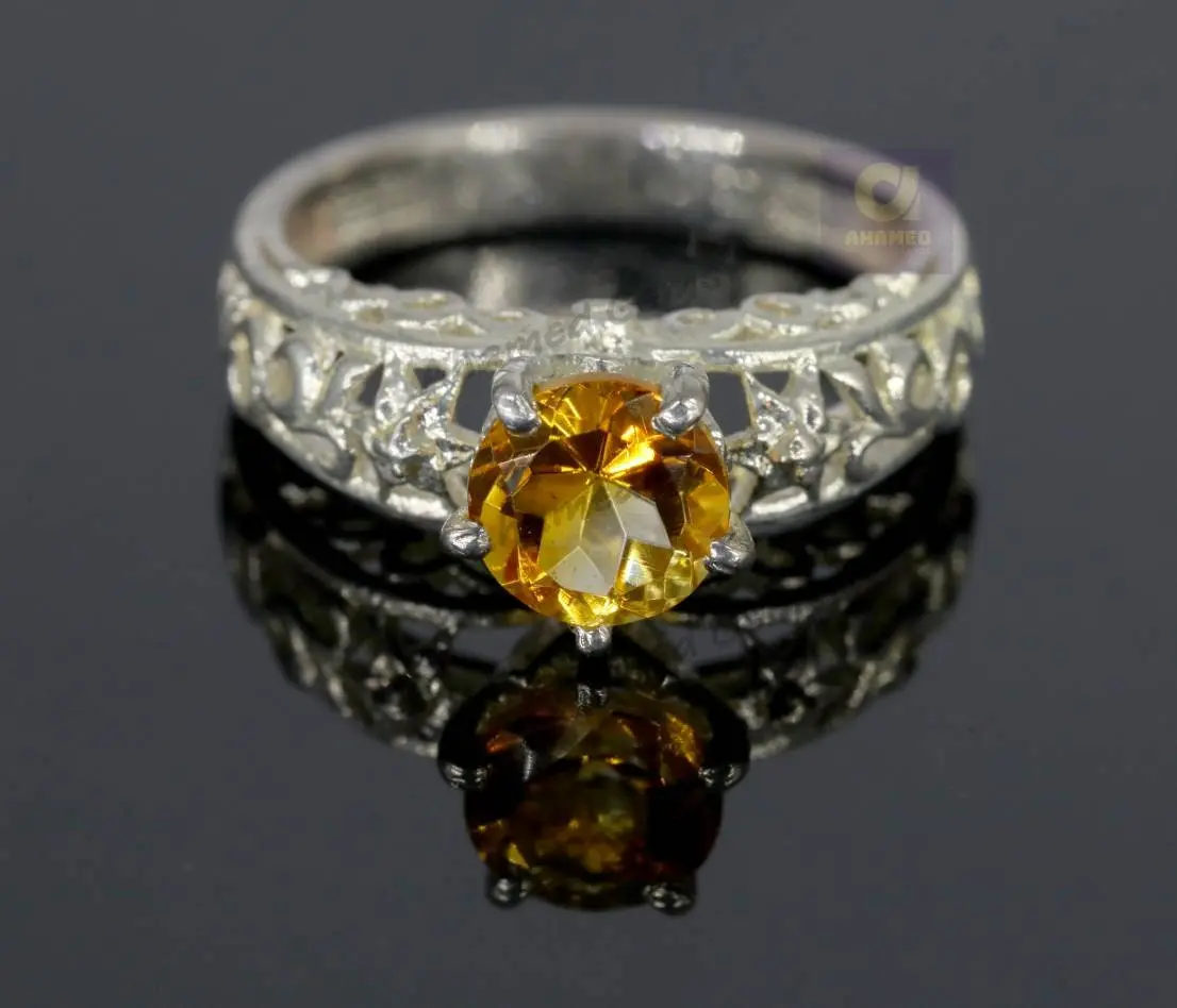7 mm Round Cut Natural Brandy Citrine Gemstone Ring, 925 Sterling Silver Ring, Engagement / Wedding Ring, November Birthstone Citrine Ring