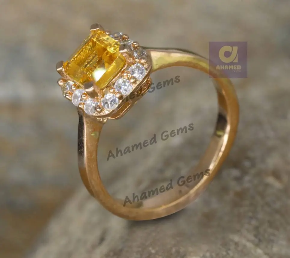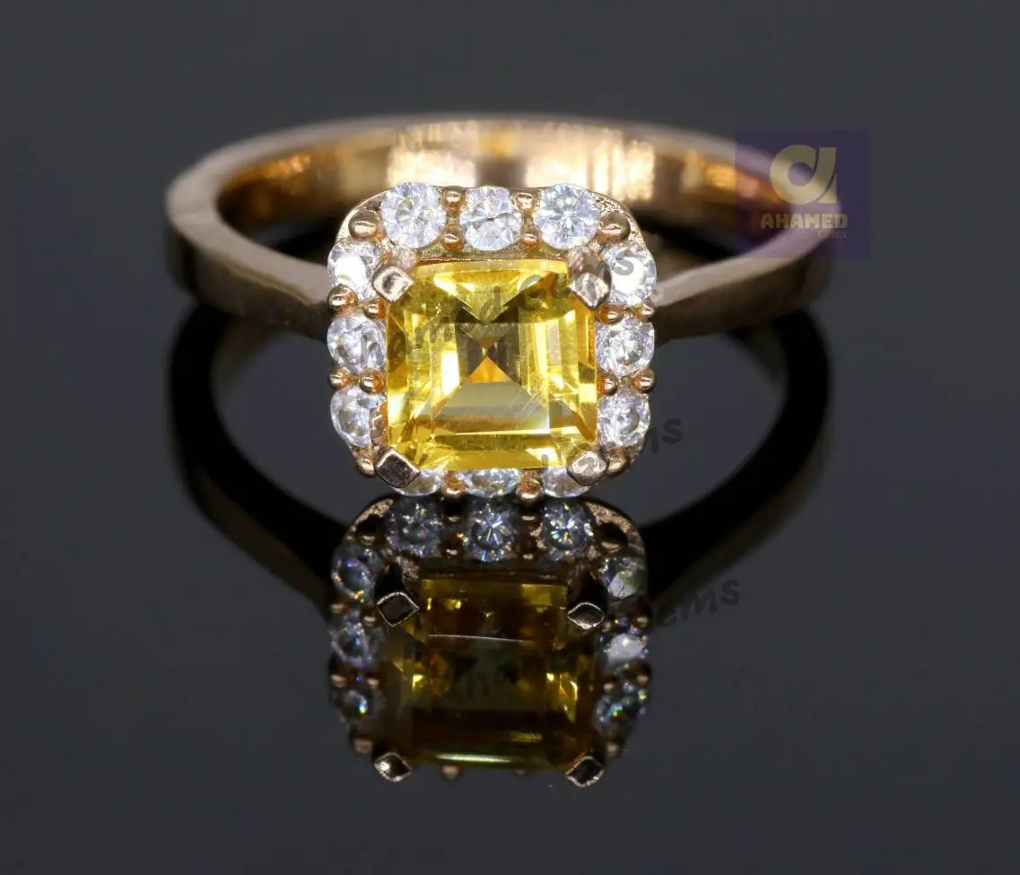 6 mm Cusion Cut Natural Brandy Citrine Gemstone Ring, 925 Sterling Silver Ring, Engagement / Wedding Ring, November Birthstone Citrine Ring.