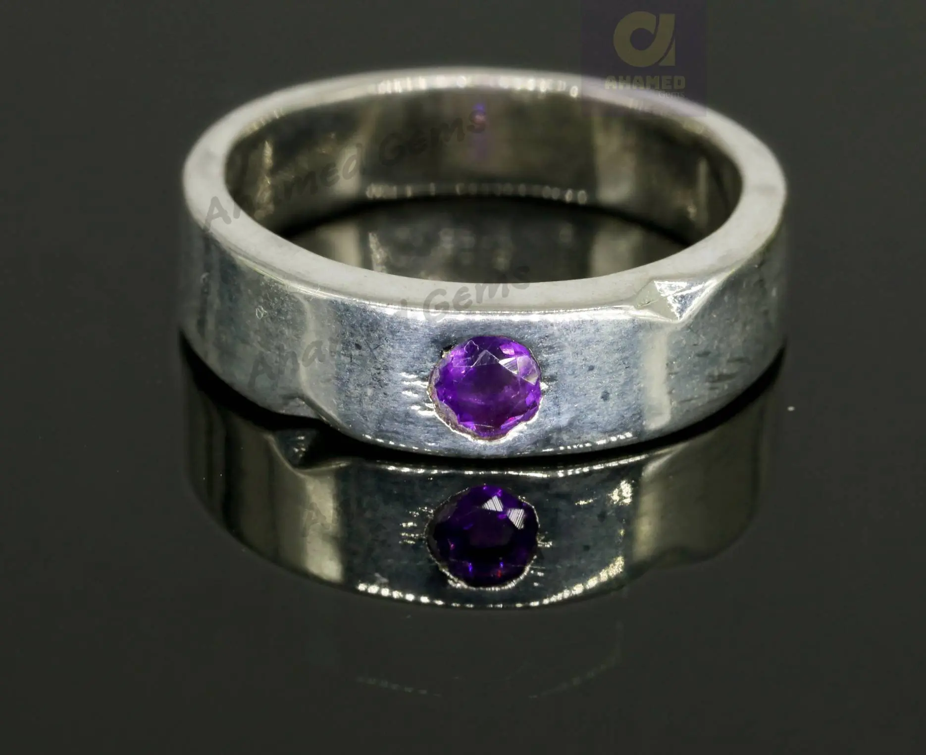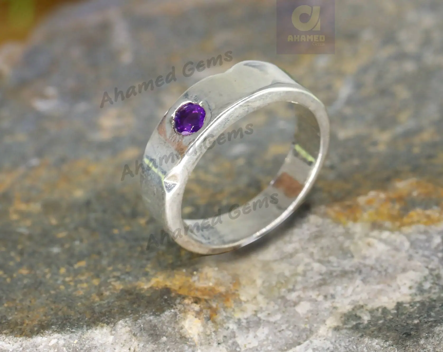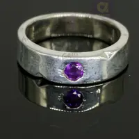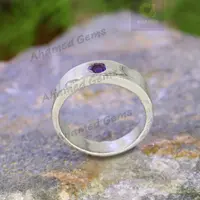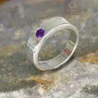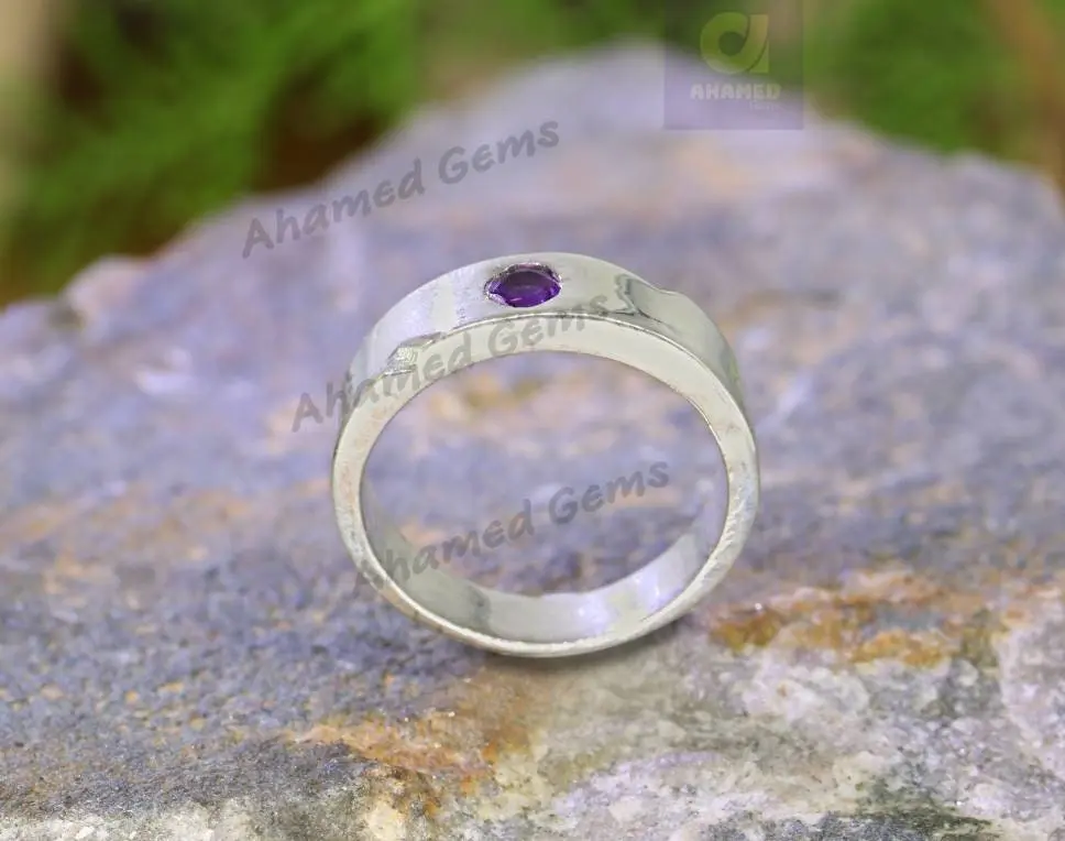 4 MM Round Cut Natural Amethyst Gemstone Band, 925 Sterling Silver Band, Engagement / Wedding Band, Dainty Ring Promise Band, Hammer Band