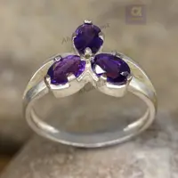 6x4 mm Oval Cut Natural Purple Amethyst Gemstone Ring, 925 Sterling Silver Ring, Engagement / Wedding Ring February Birthstone Amethyst Ring