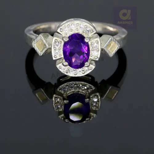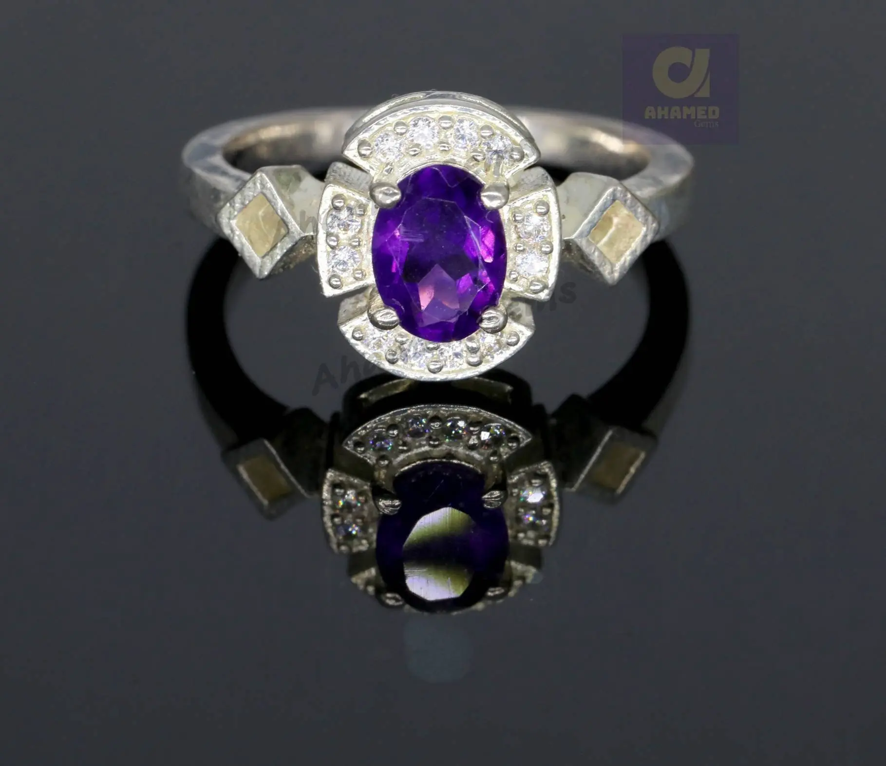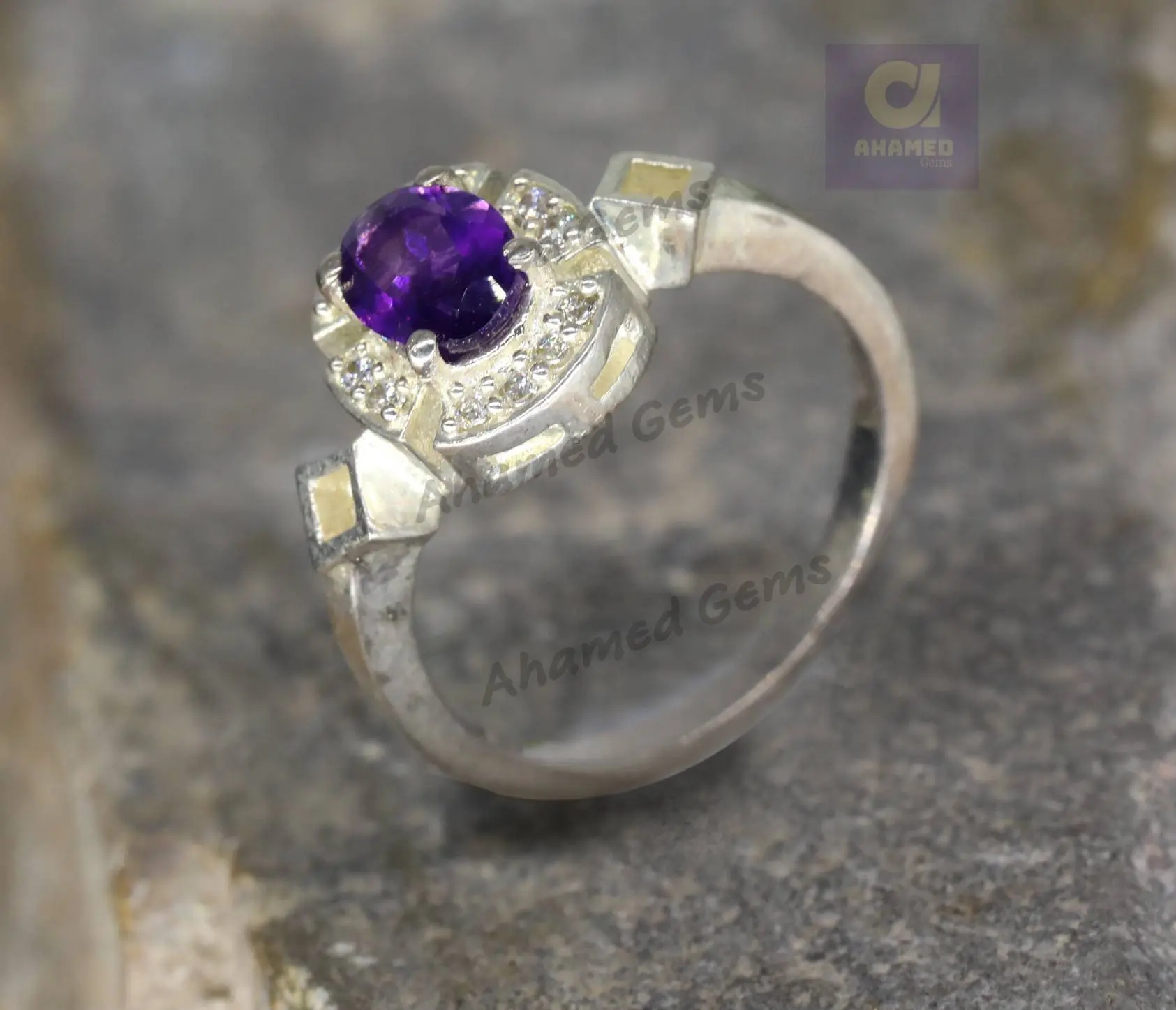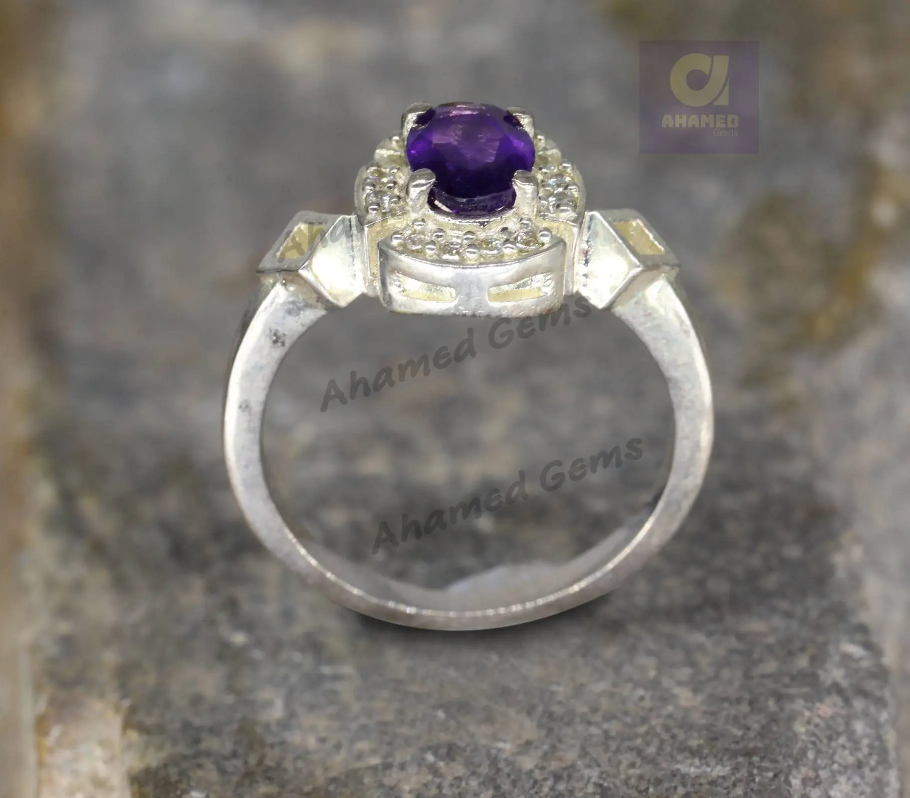 6x8 mm Oval Cut Natural Purple Amethyst Gemstone Ring, 925 Sterling Silver Ring, Engagement / Wedding Ring February Birthstone Amethyst Ring