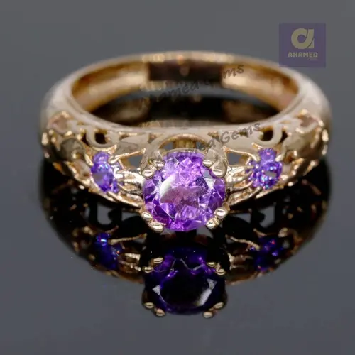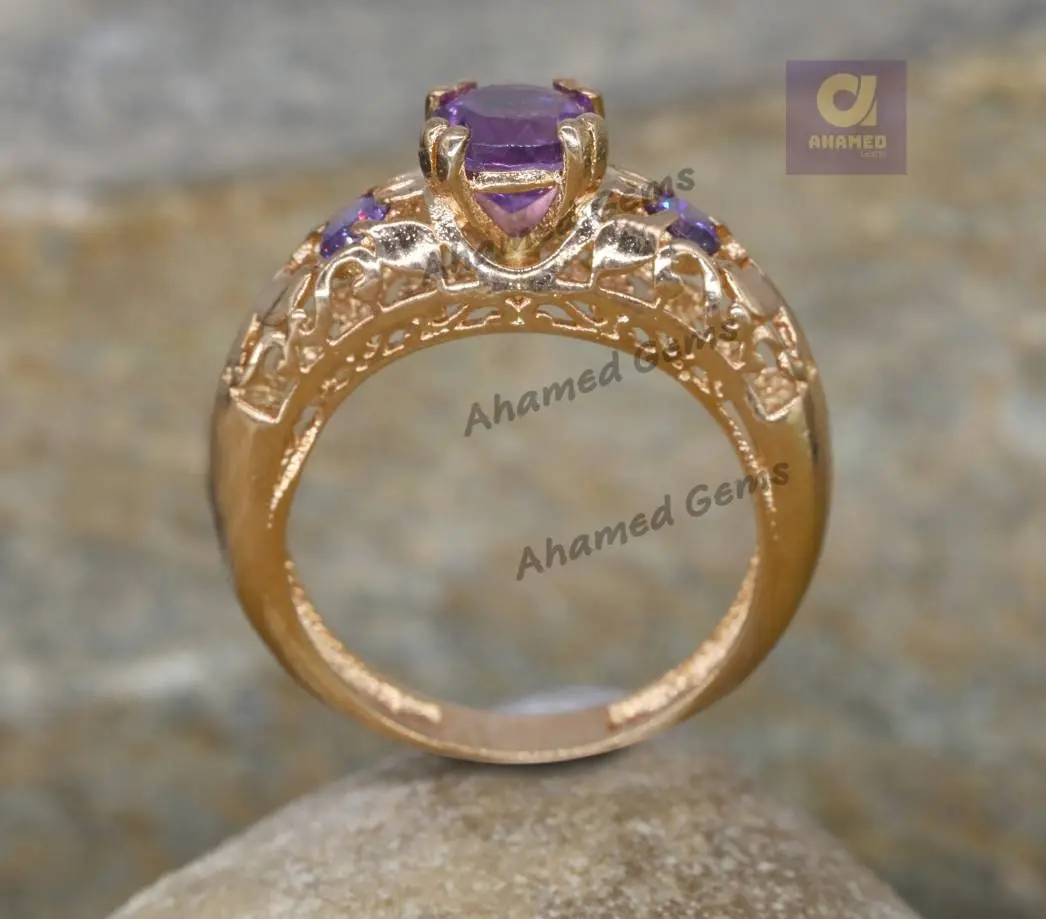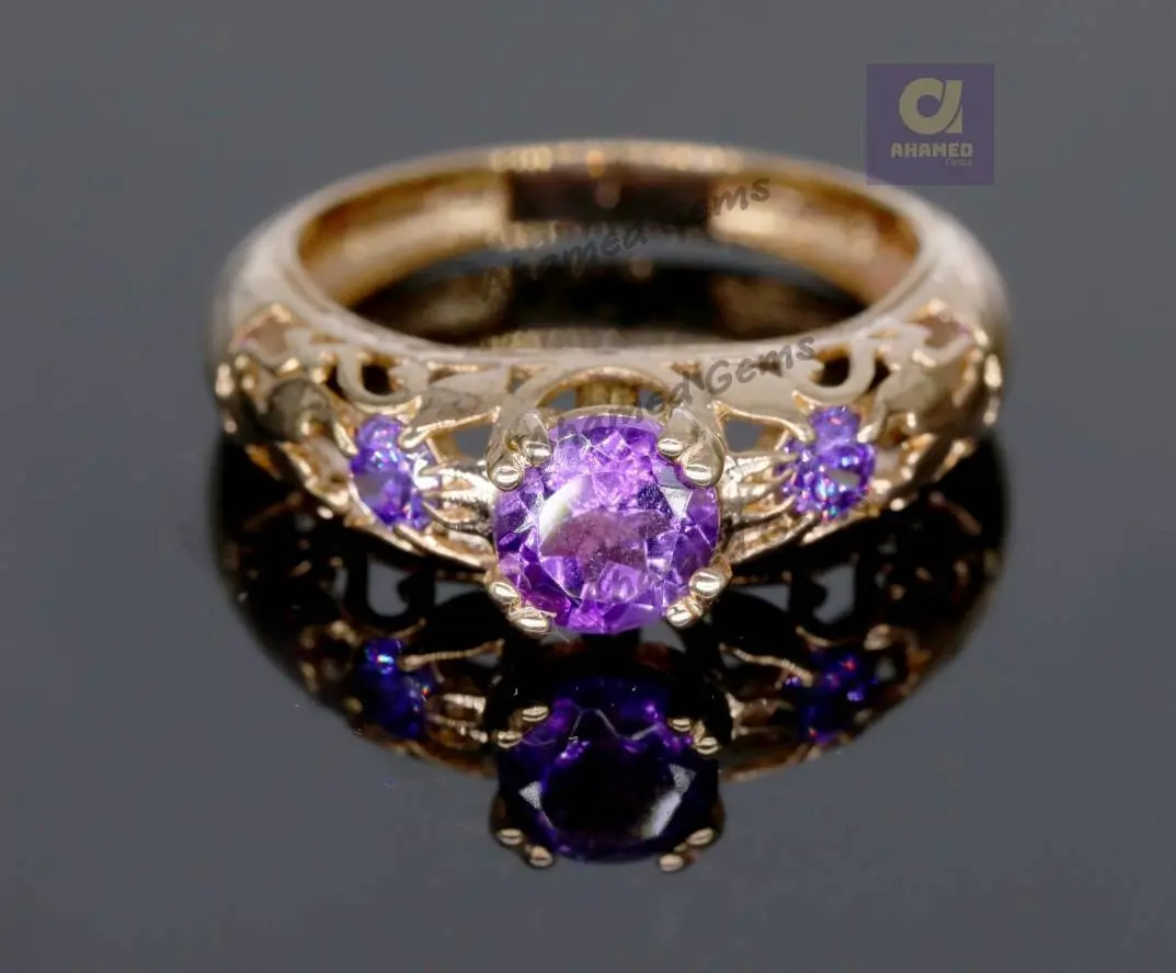 6 mm Natural Purple Amethyst Gemstone Ring, 925 Sterling Silver Ring, Engagement / Wedding Ring, February Birthstone Amethyst Promise Ring