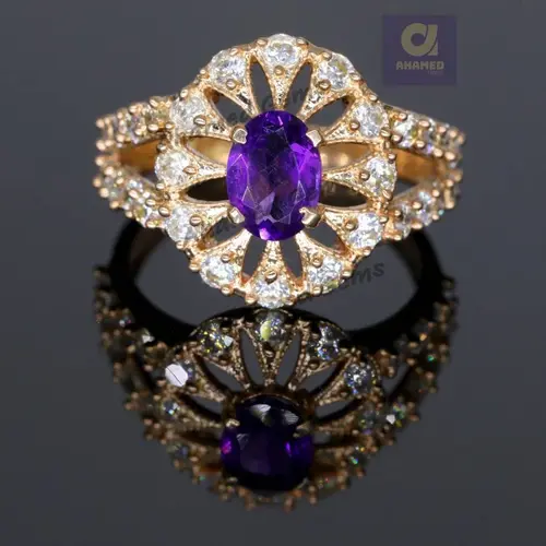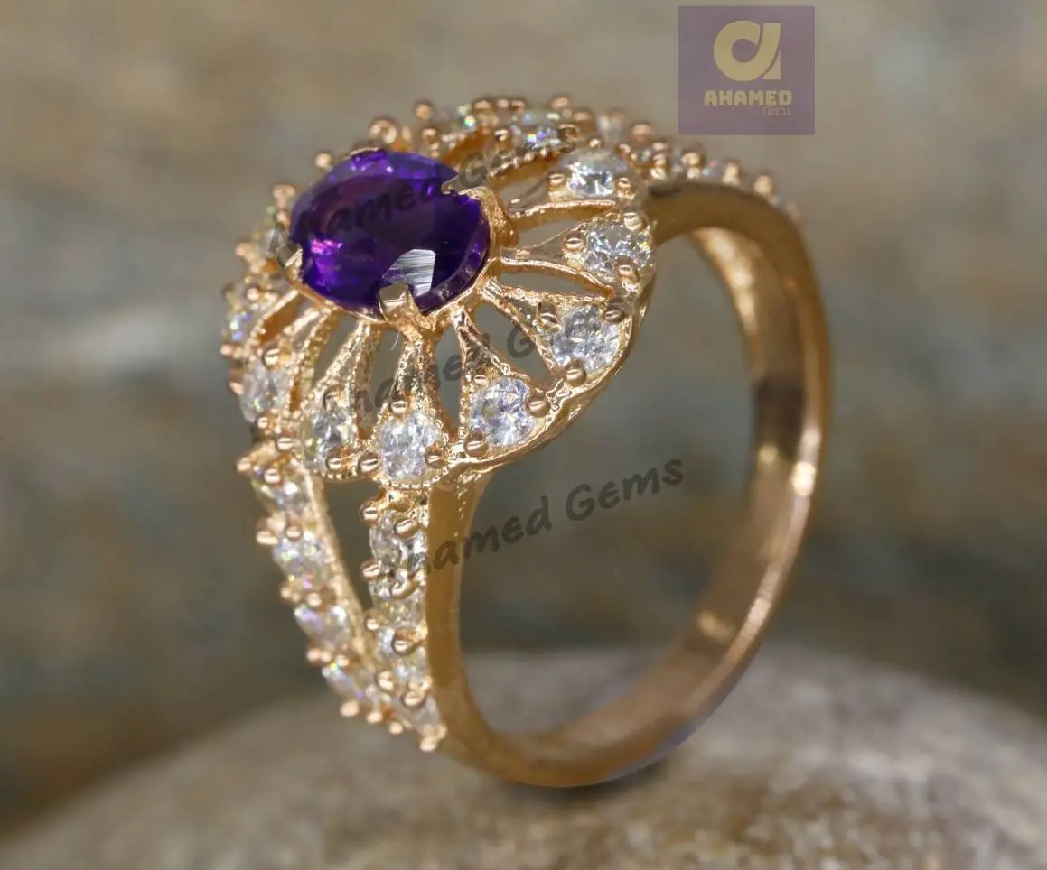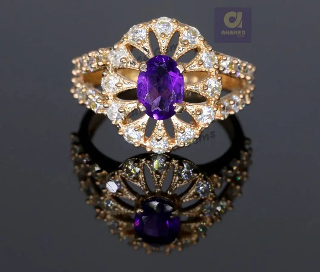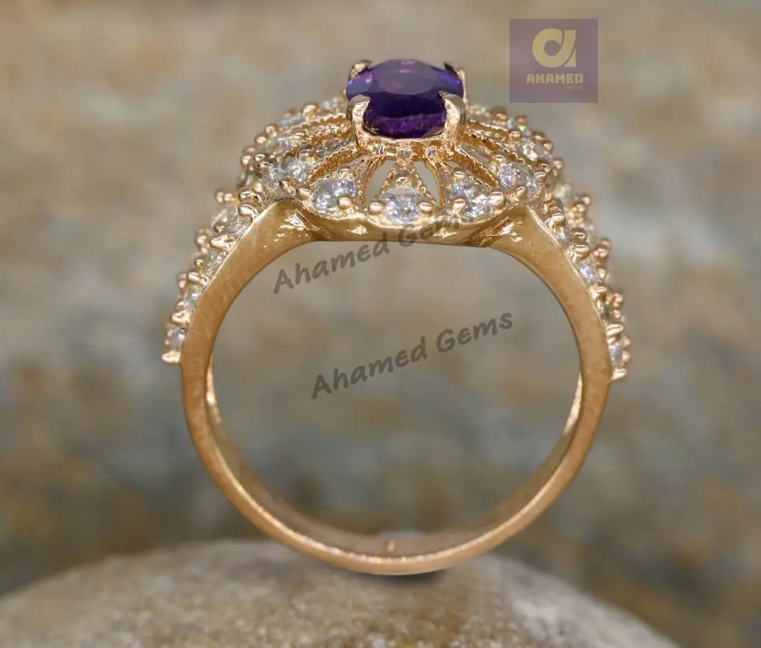 6x8 mm Natural Purple Amethyst Gemstone Ring, 925 Sterling Silver Ring, Engagement / Wedding Ring, February Birthstone Amethyst Promise Ring