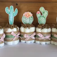 2 Mini Diaper Cakes made of 7 Diapers Each with cactus toppers