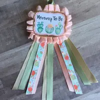1 Mommy to Be corsage made of high end ribbons and Burlap.