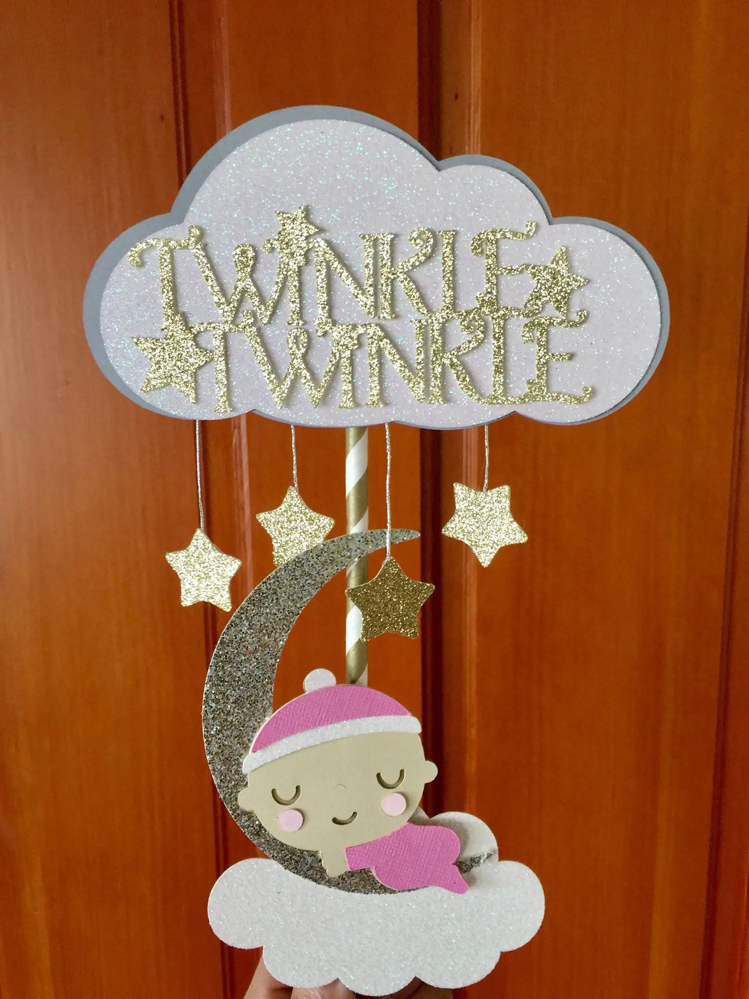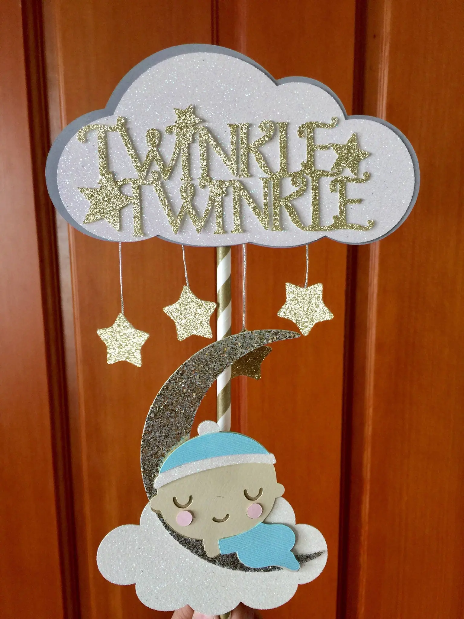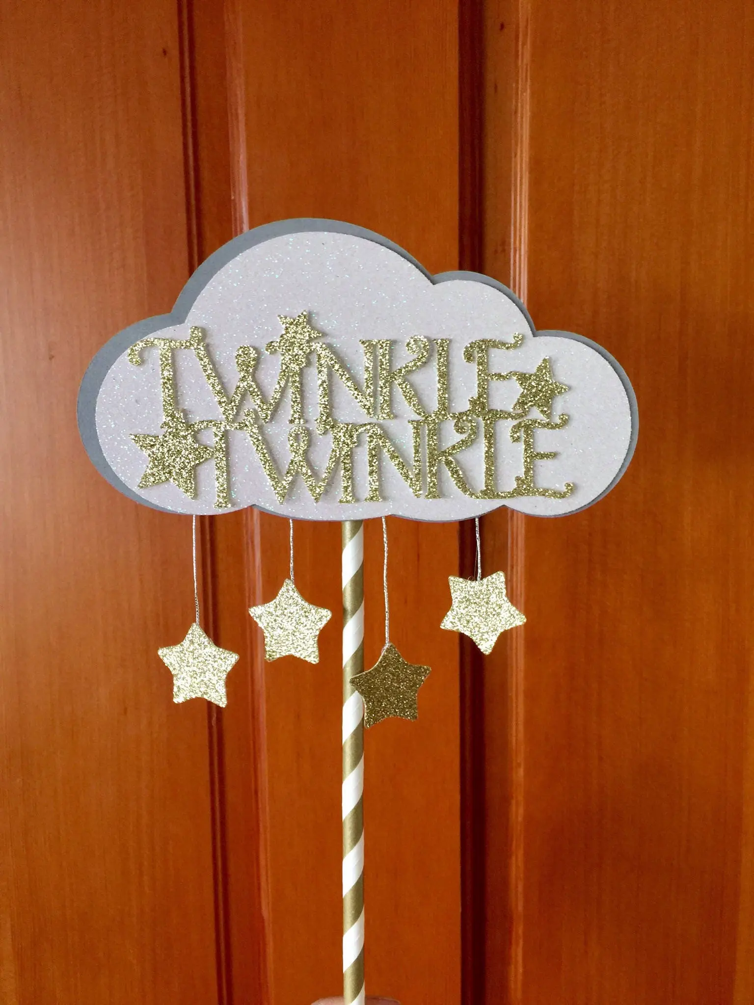 Our adorable Twinkle Twinkle Little Star Cake topper will make your cake look like it has twinkling stars above!