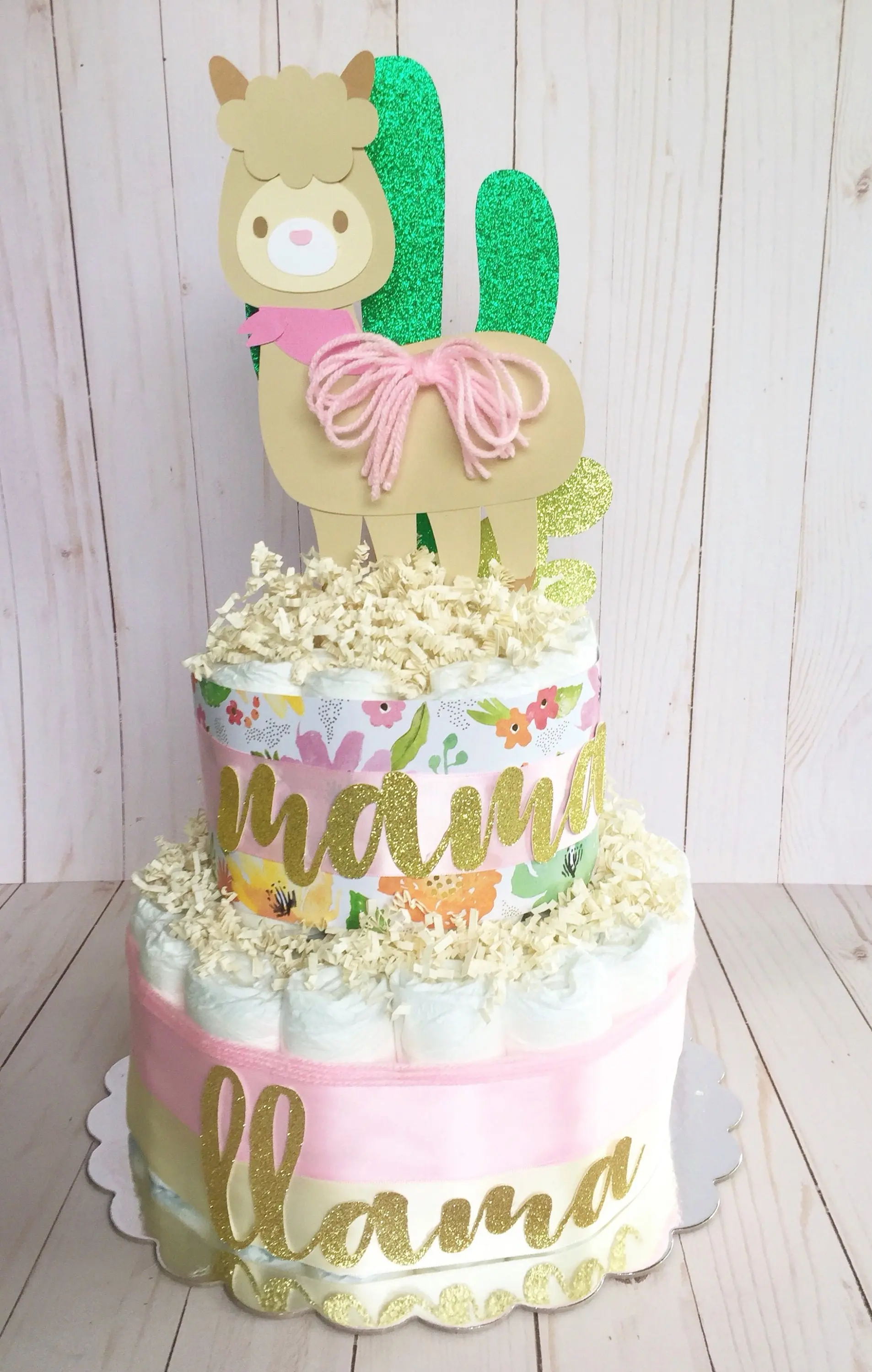 Girl llama Baby Shower Decorations diaper cake, llama baby shower decorations, Girl cactus decor, cactus theme baby shower, llama party