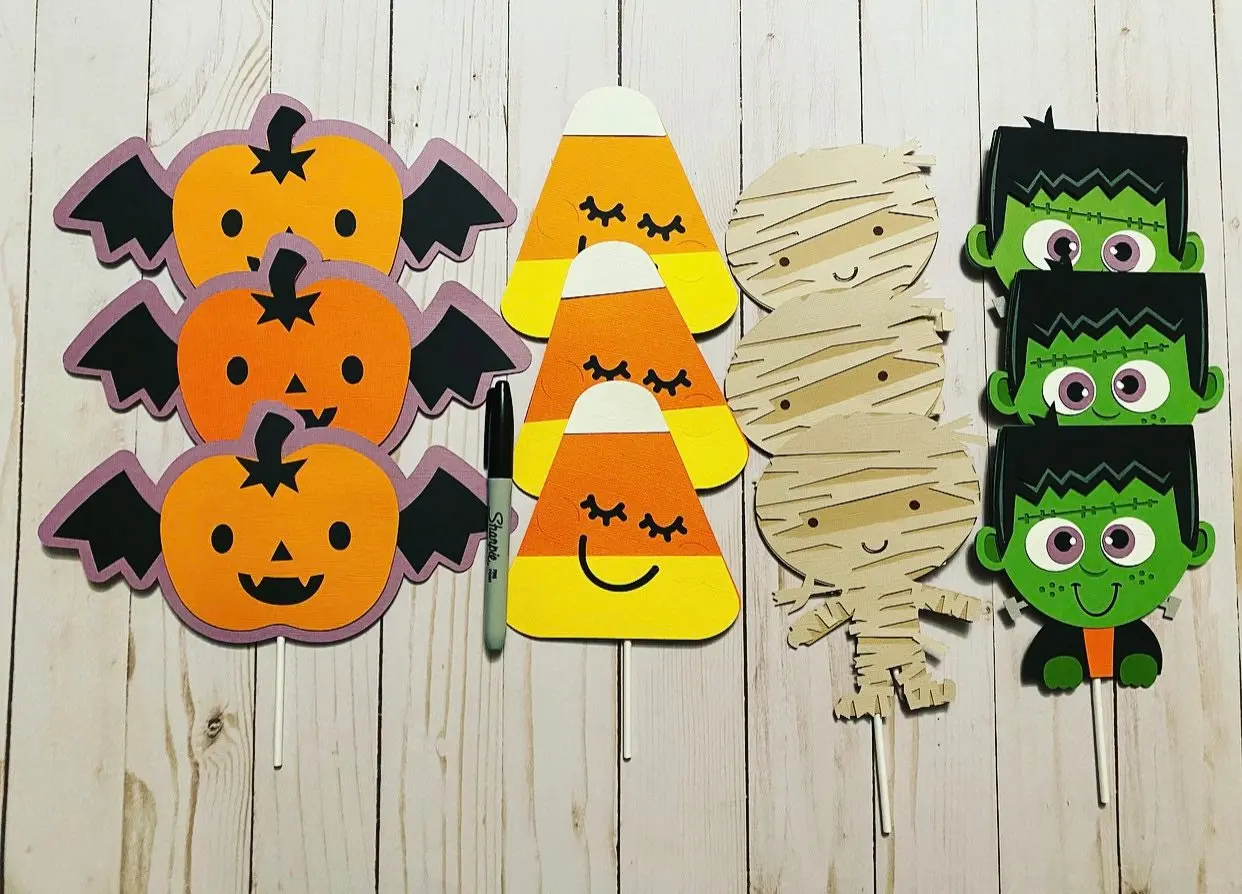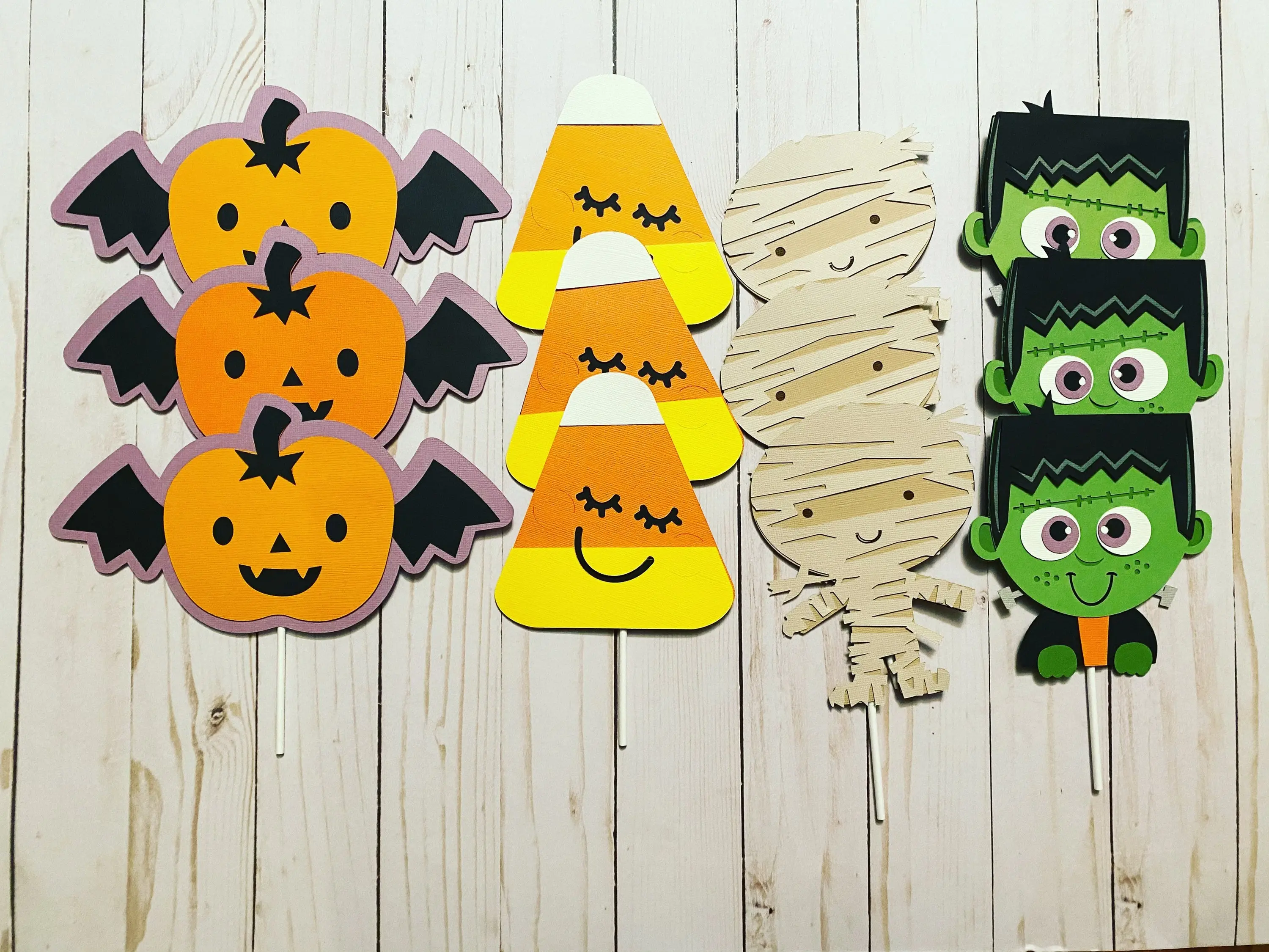 Each topper measures 5”-6” tall. And have a food safe lollipop stick on the back for easy insertion.