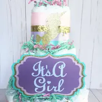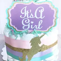 Bring a bit of enchantment to your baby shower with our Unicorn Diaper Cake!