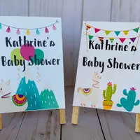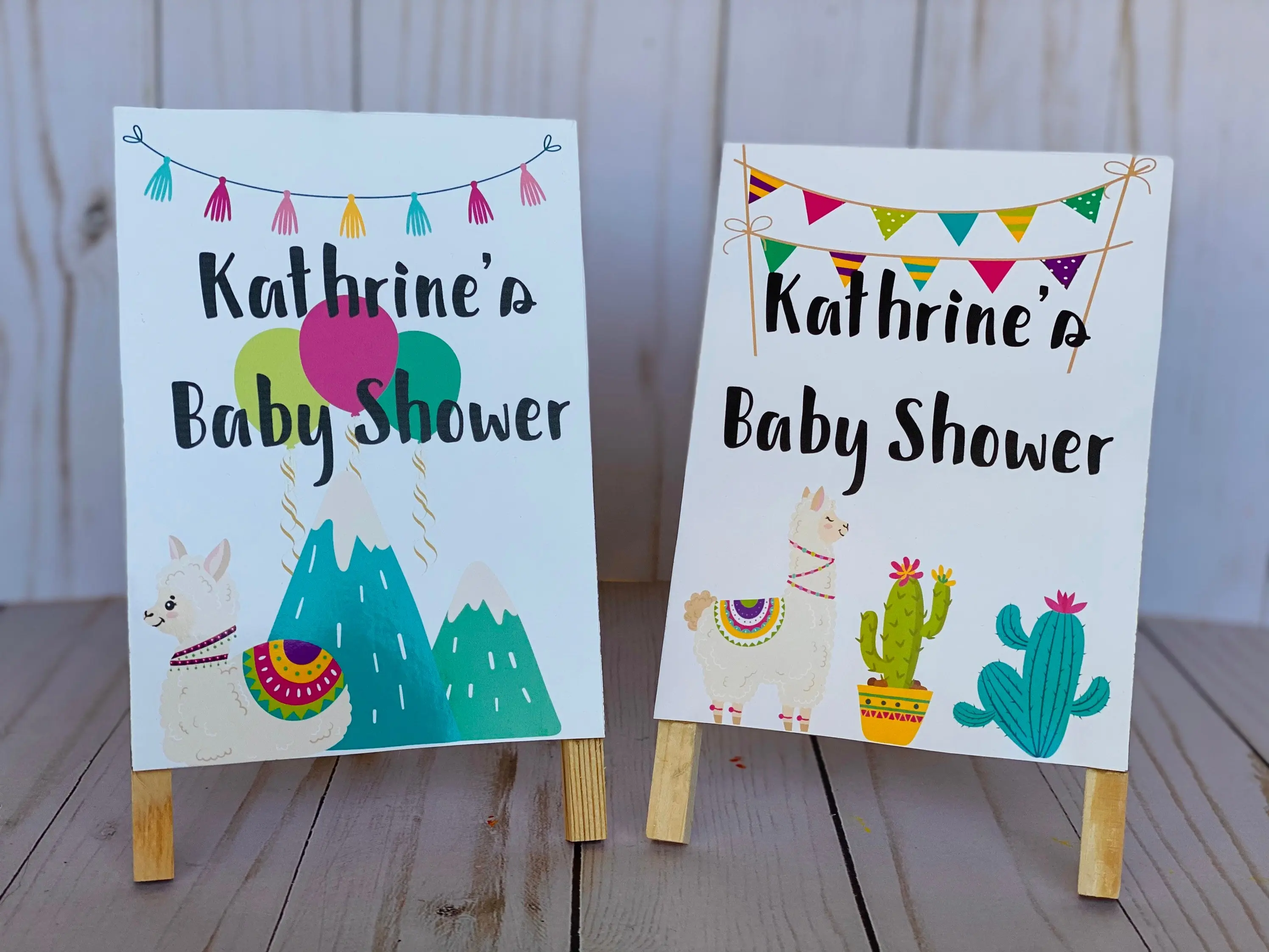 Set of 2 handmade Llama Mountains theme baby shower signs.