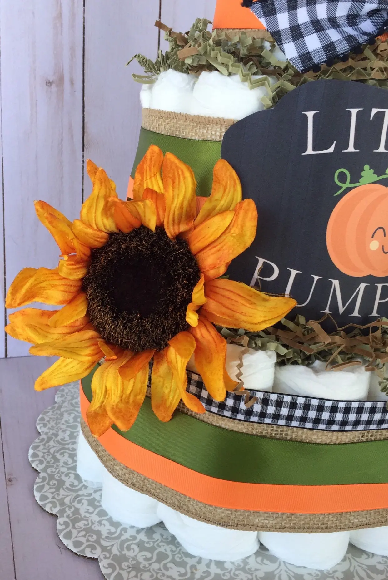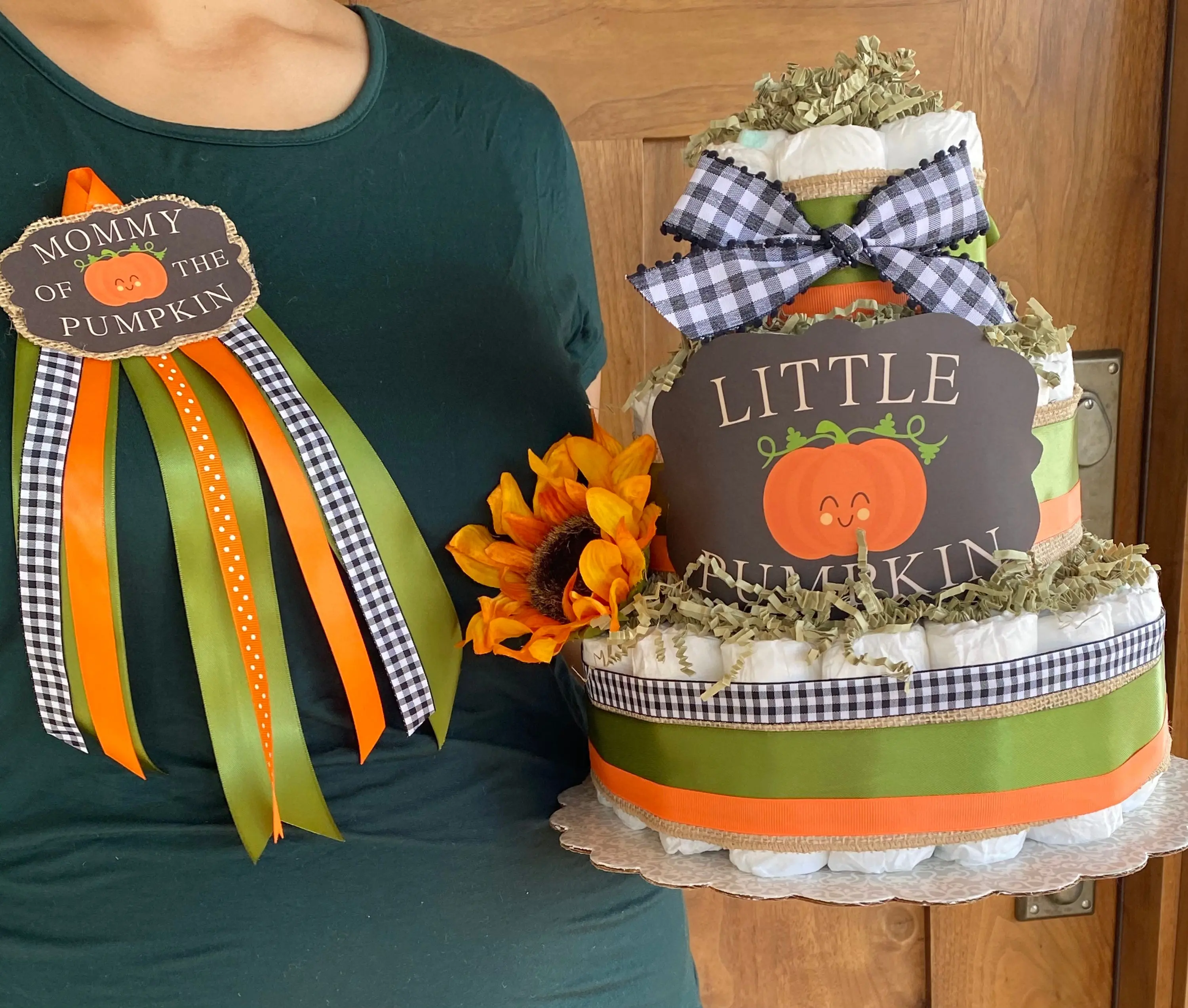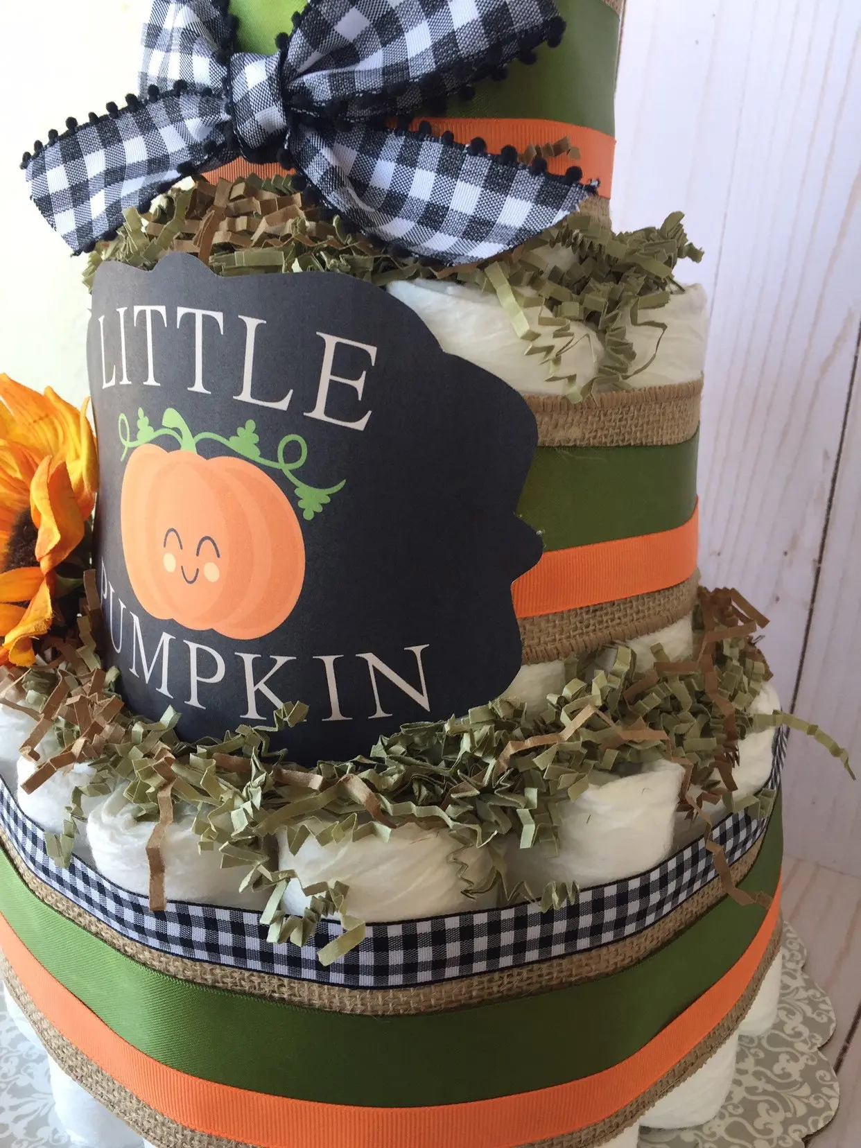 Fall in love with our Mommy’s Little Pumpkin Diaper Cake!