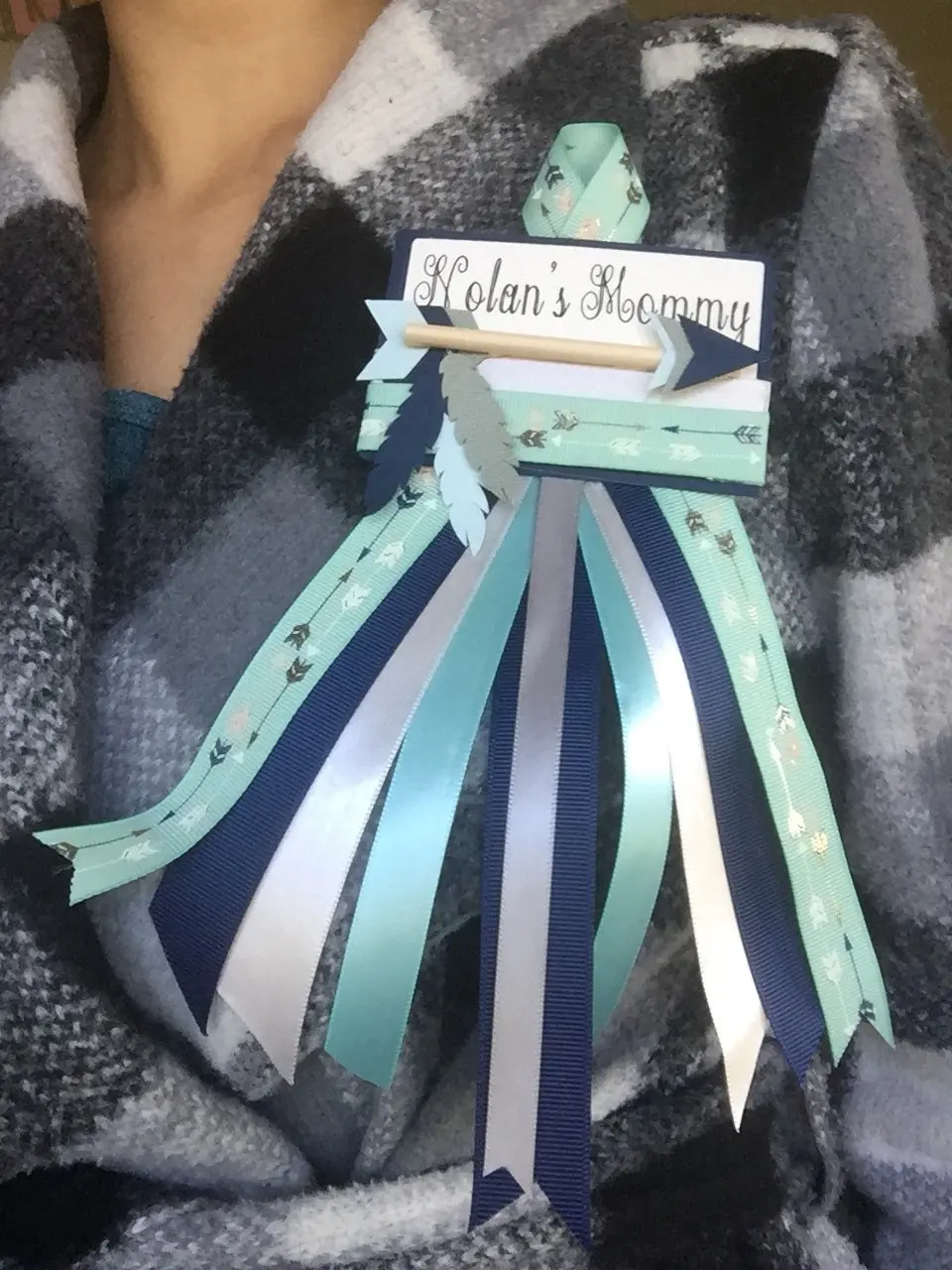 Our Tribal Mommy To Be Pin Can be customized to match your Baby Shower Theme! We can Also Customize the wording on your Corsage.