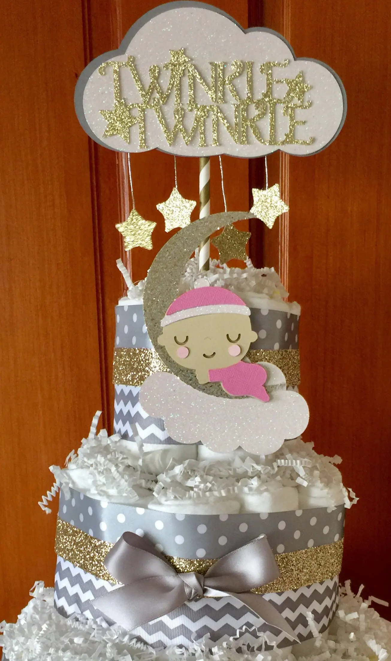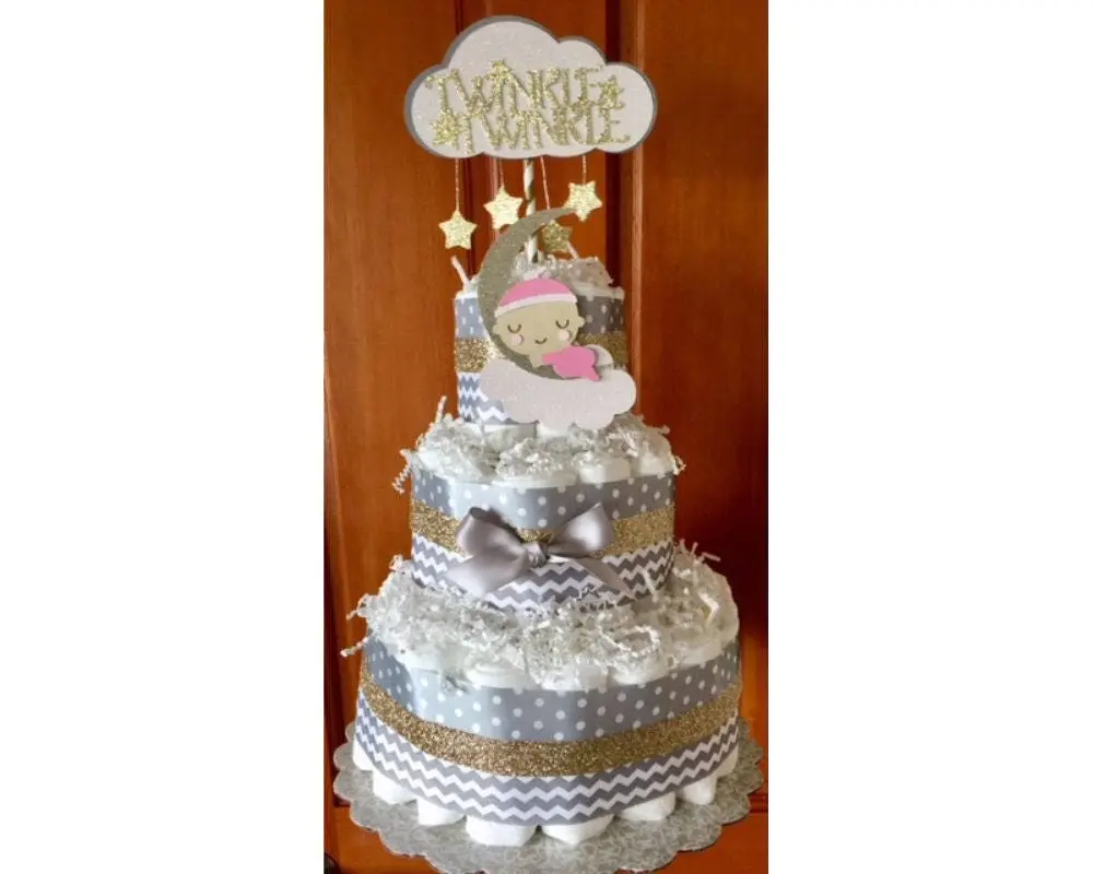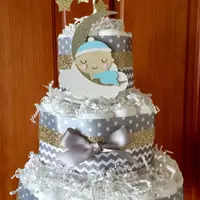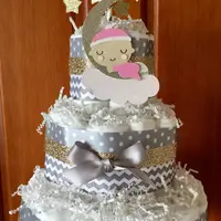 Our own unique design for your little one. Our Twinkle Twinkle Little Star Diaper Cake will make a beautiful centerpiece for your shower event!